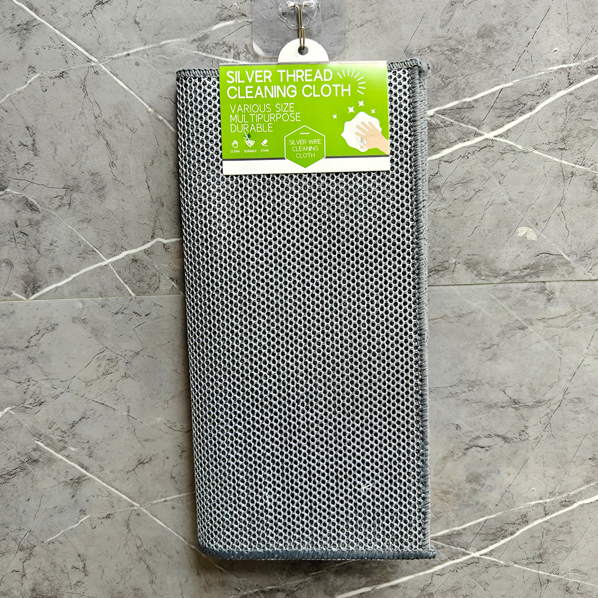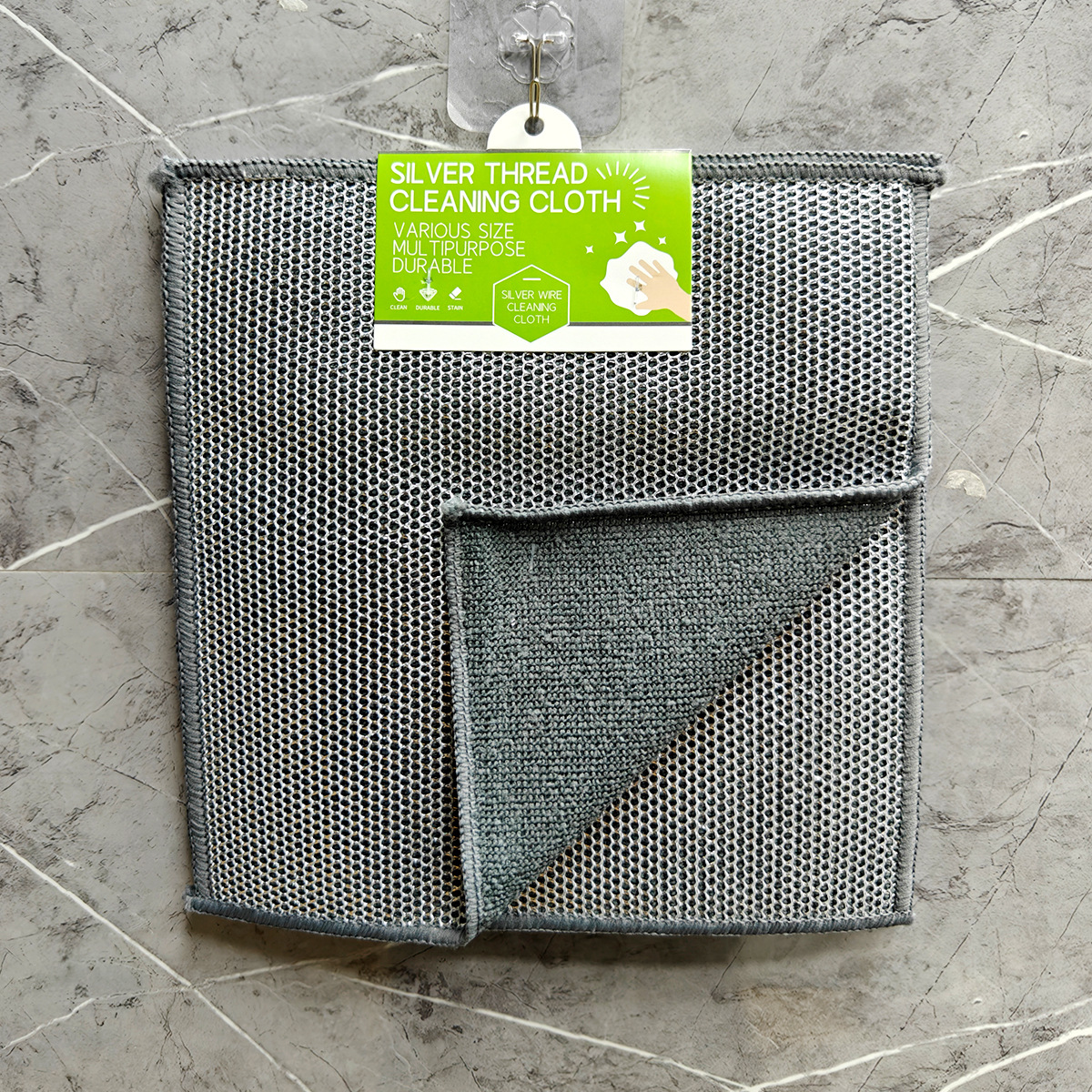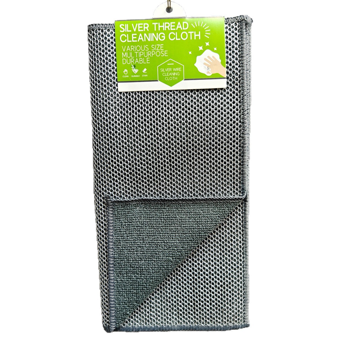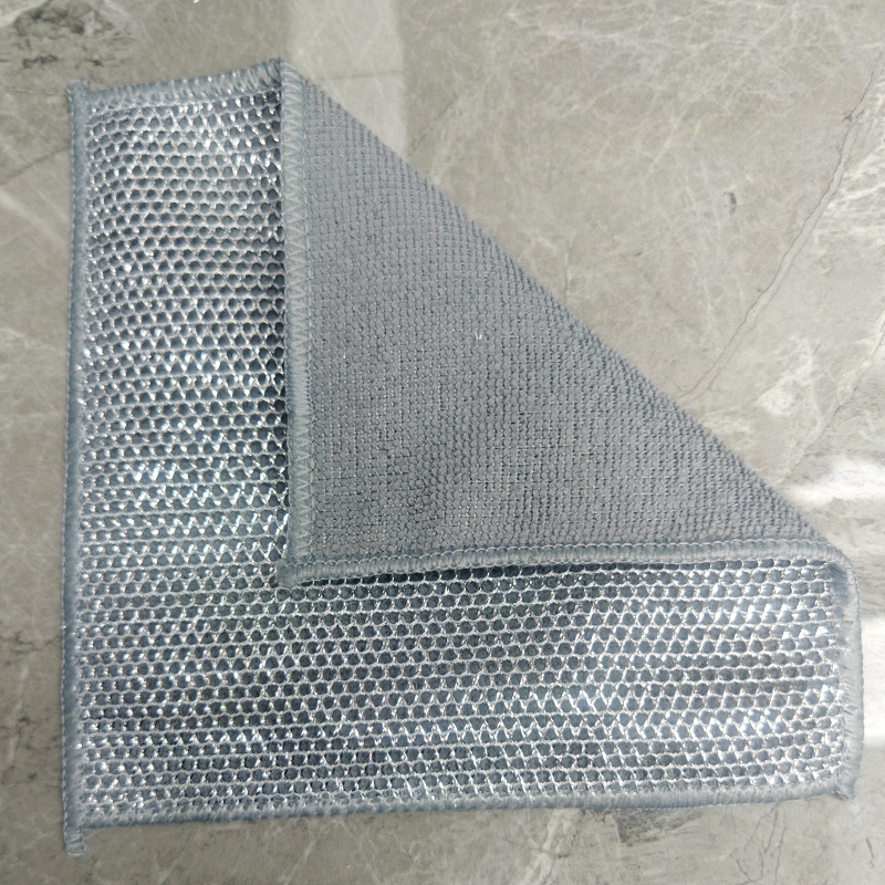双面毛巾布复合银丝超细纤维银丝抹布洗碗不沾油英文外贸钉卡定卡