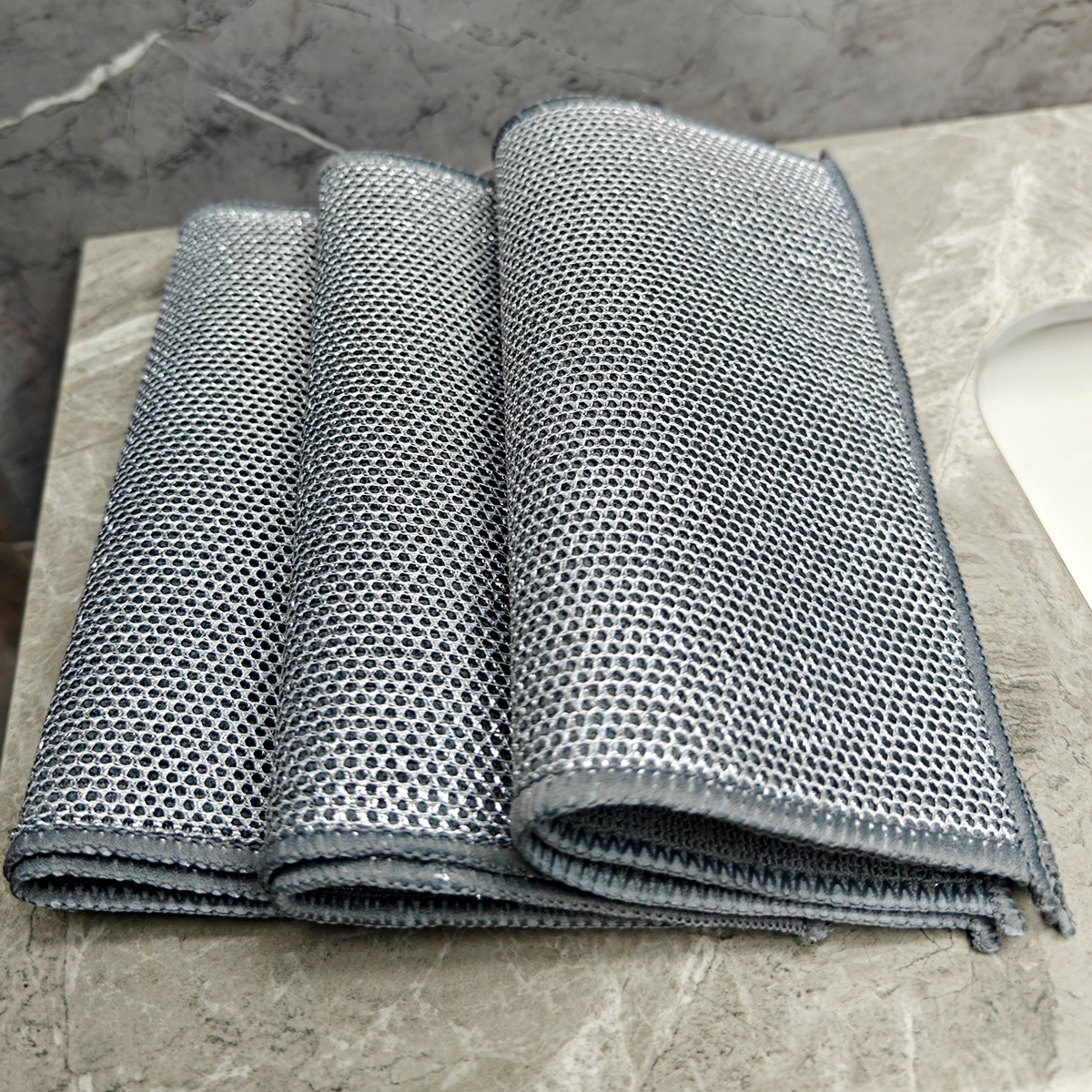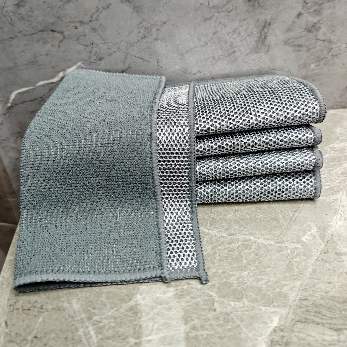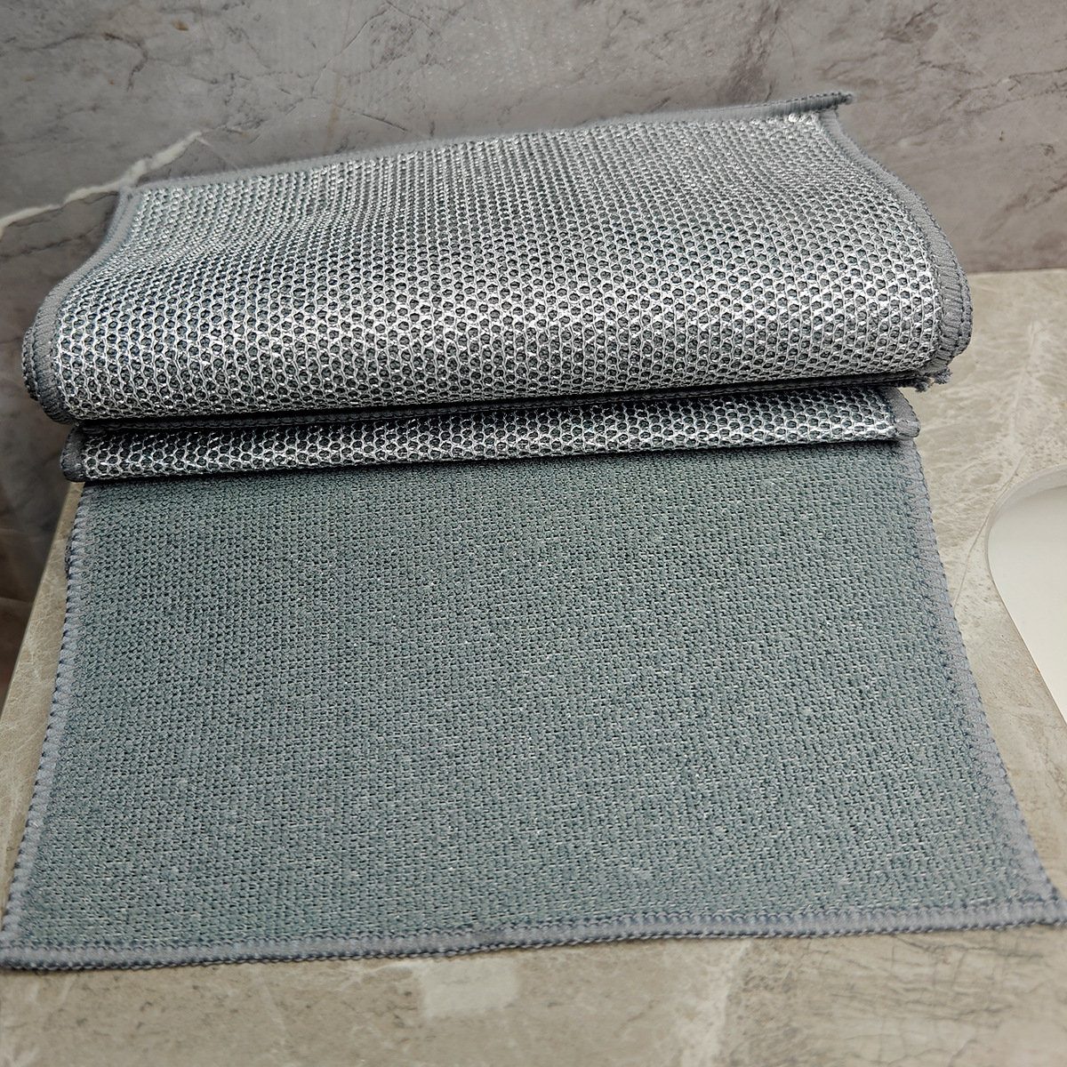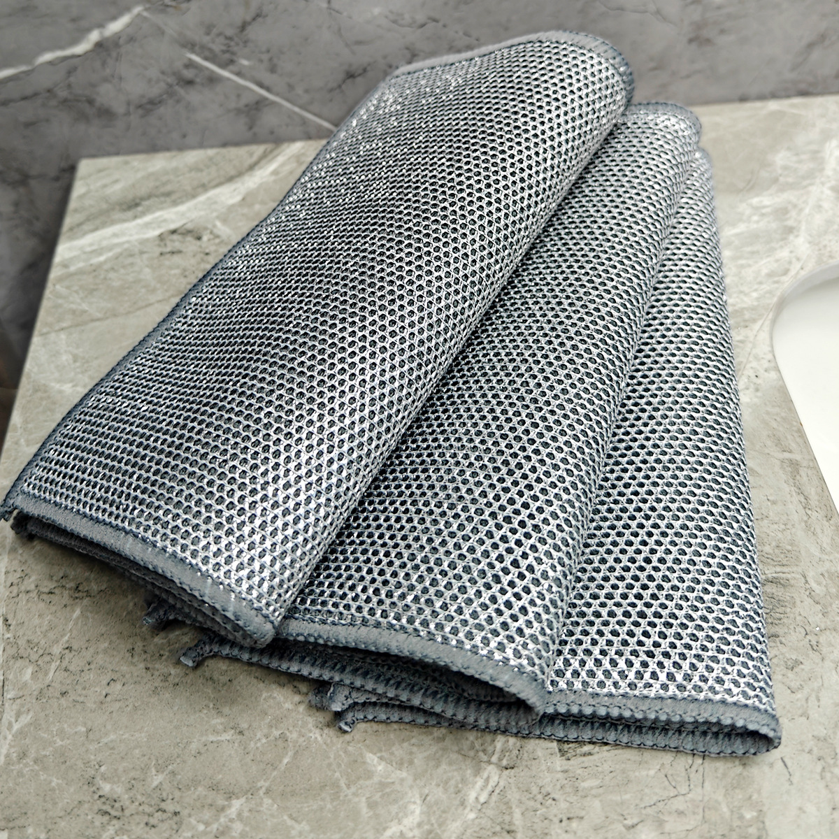 双面毛巾布复合银丝超细纤维银丝抹布洗碗不沾油英文外贸钉卡定卡