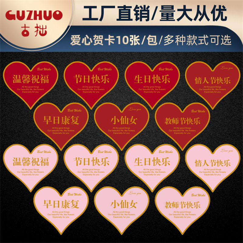心形烫金贺卡生日表白浪漫情话留言卡鲜花花束礼盒装饰爱心小卡片