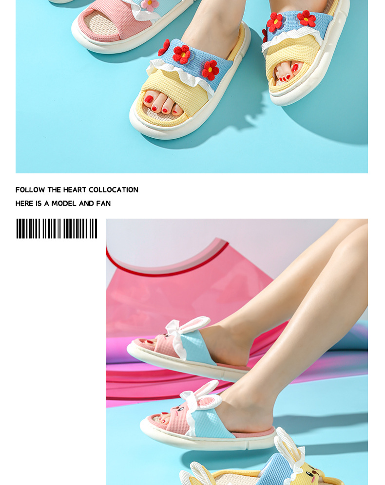 亚麻拖鞋女四季拖透气厚底在逃公主外穿居家静音防滑可爱卡通拖鞋