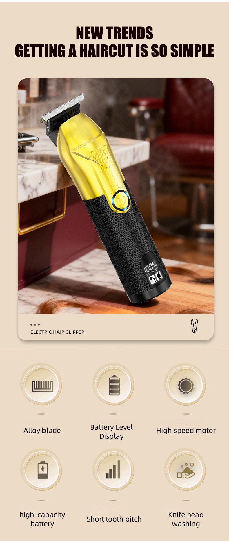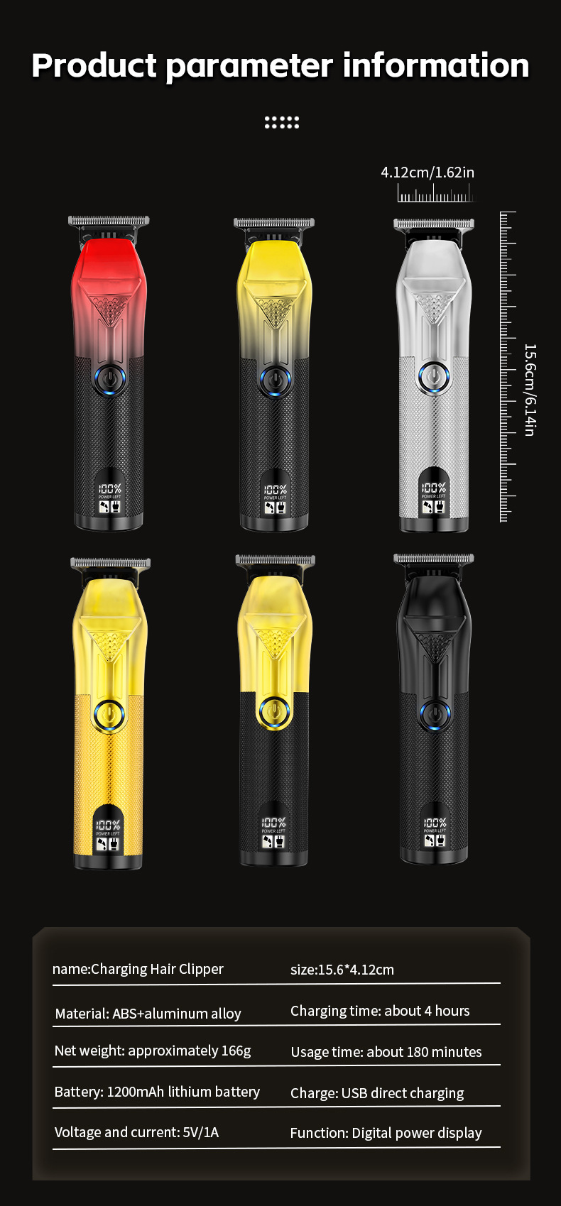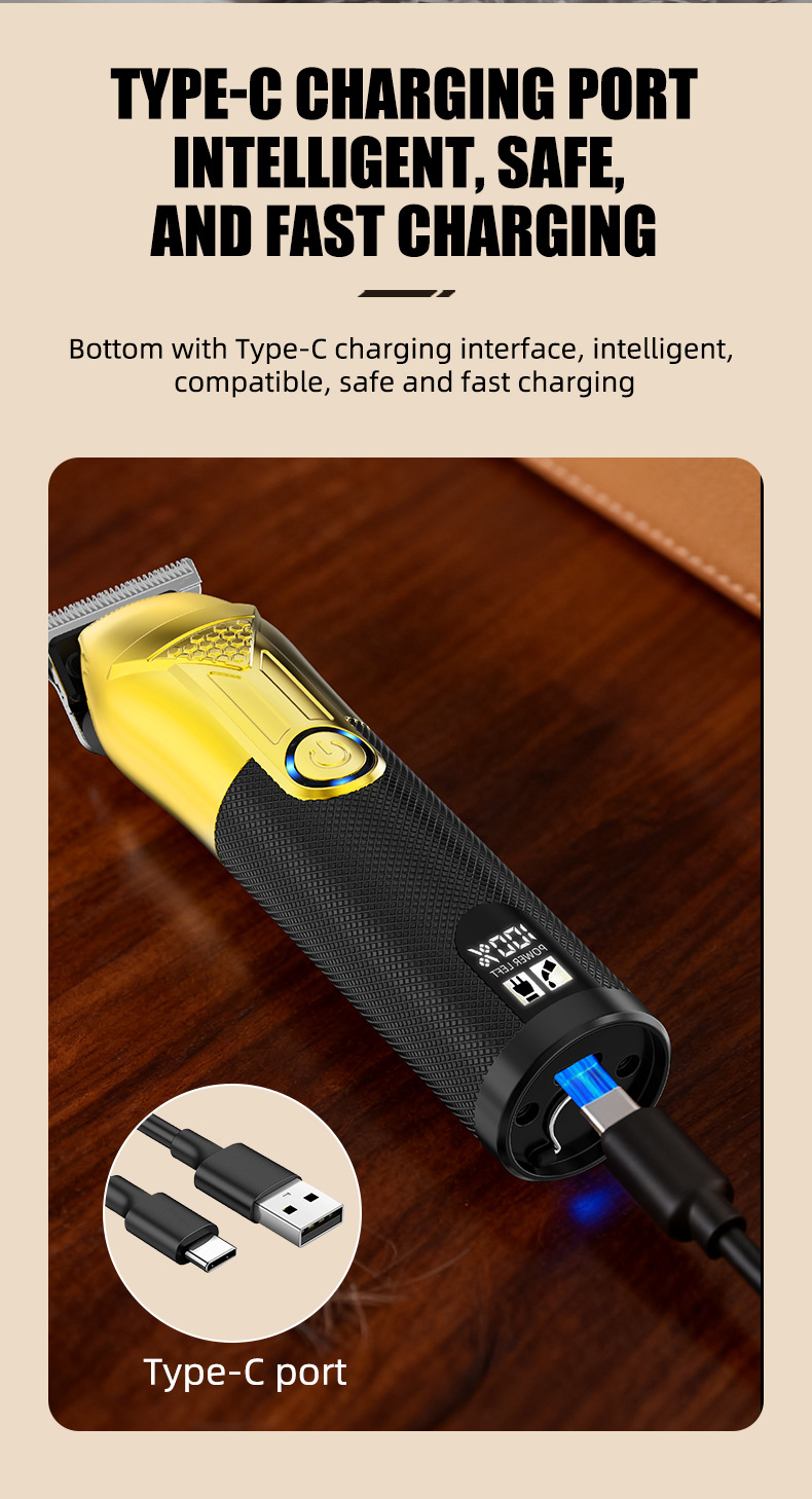 跨境电推剪金属机电推子身磨砂防滑USB快充油头雕刻推剪理发器