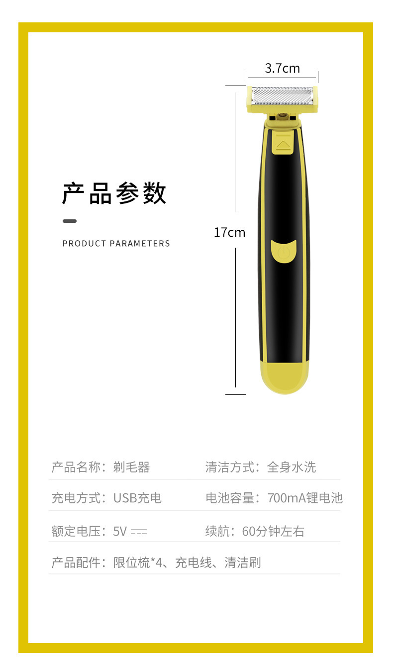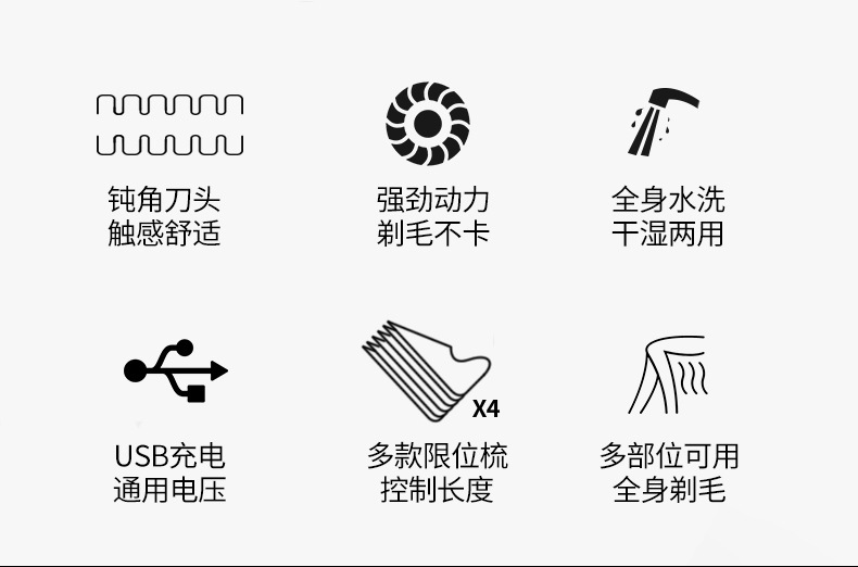 亚马逊新款男士剃毛器USB充电全身水洗剃须刀腿毛脸部电动刮毛器
