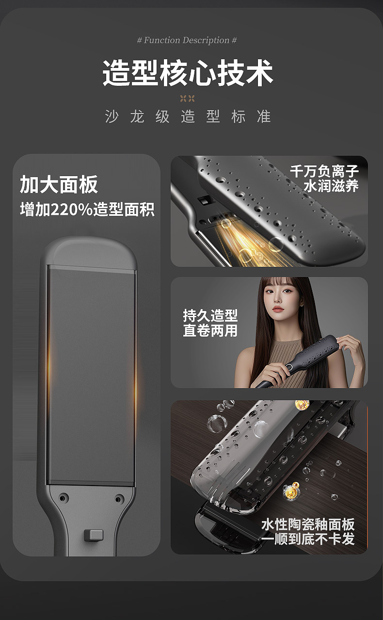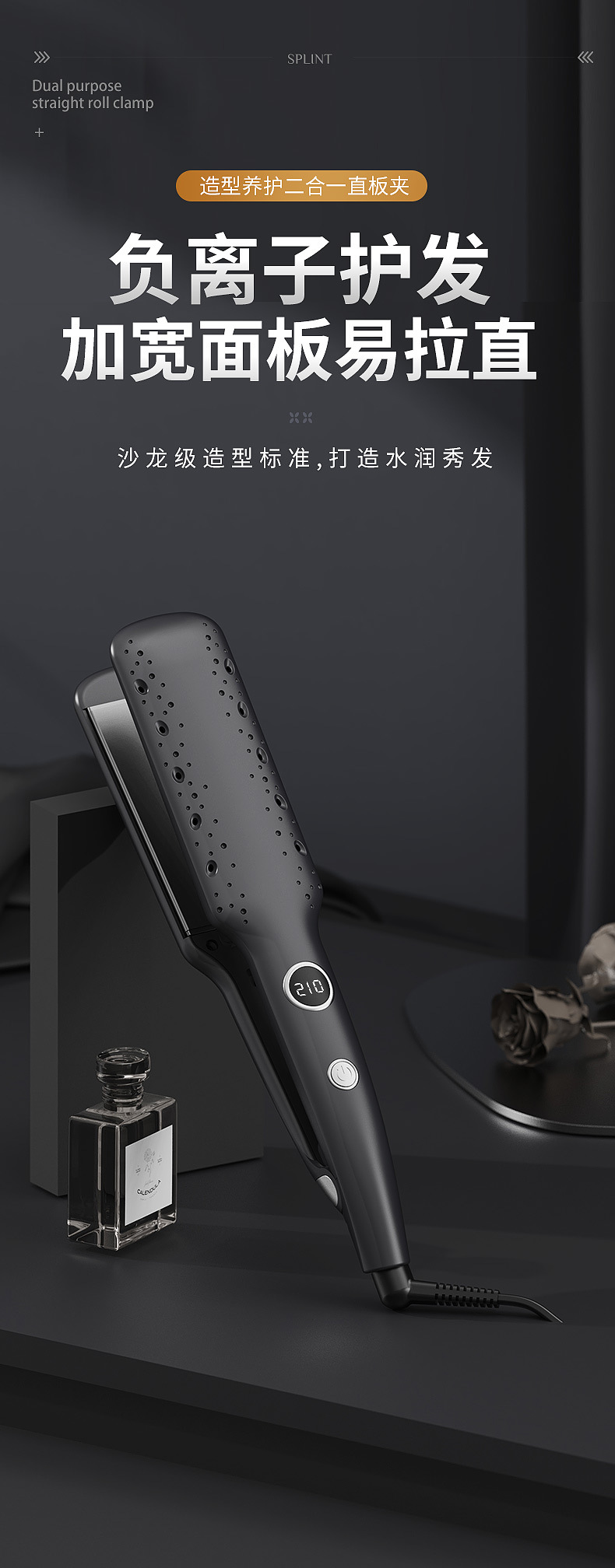 跨境负离子电夹板陶瓷釉护发卷直干湿两用防烫直发器卷发棒电夹板