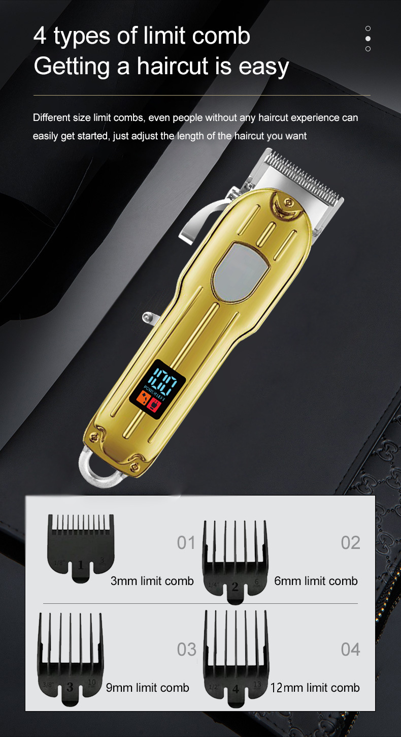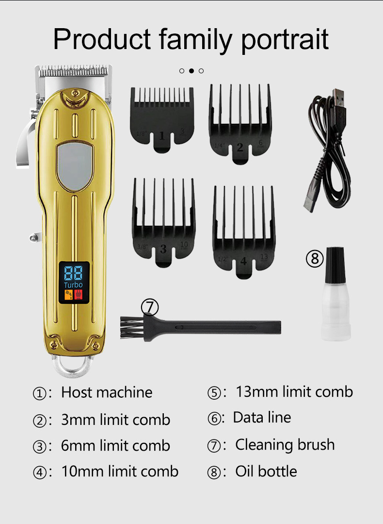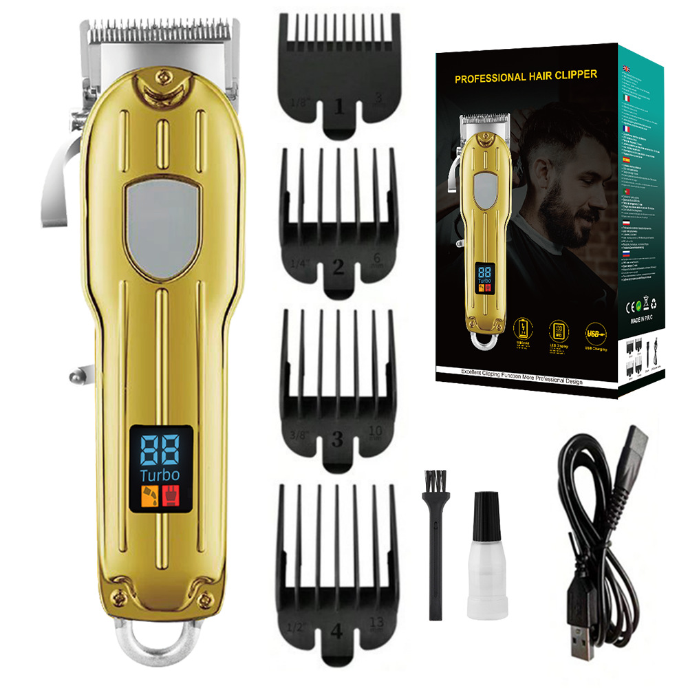 跨境金属理发器电推剪充电式电推子油头电动专业剪数显发廊理发推