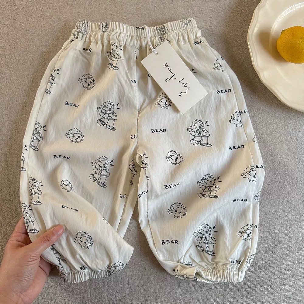 2025夏季儿童防蚊裤新款男女童日系潮牌卡通小熊长裤宝宝束脚裤潮