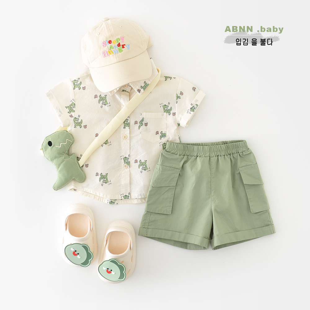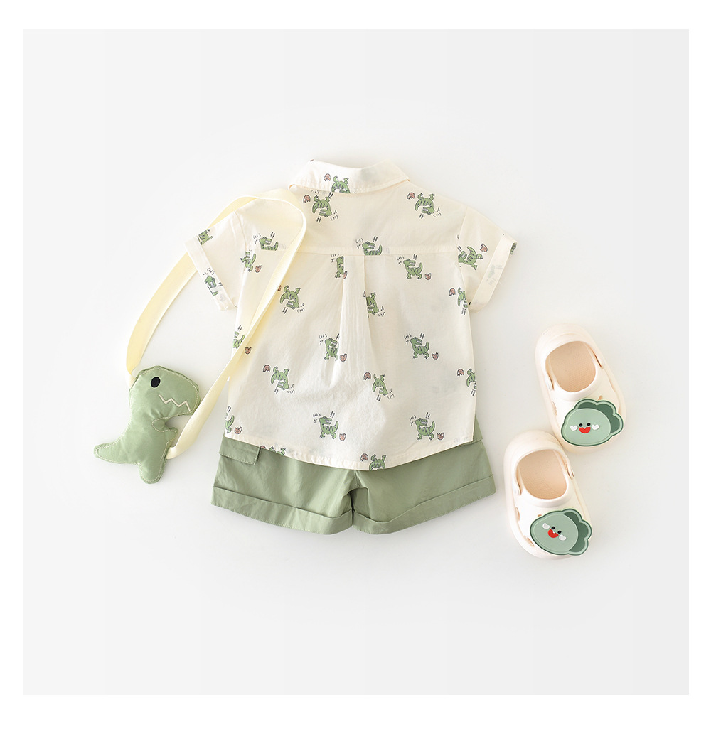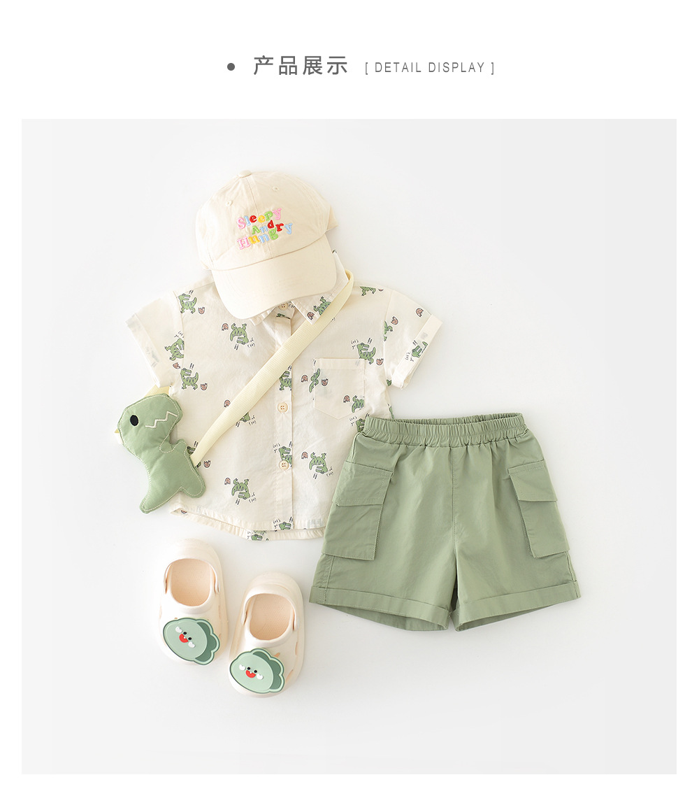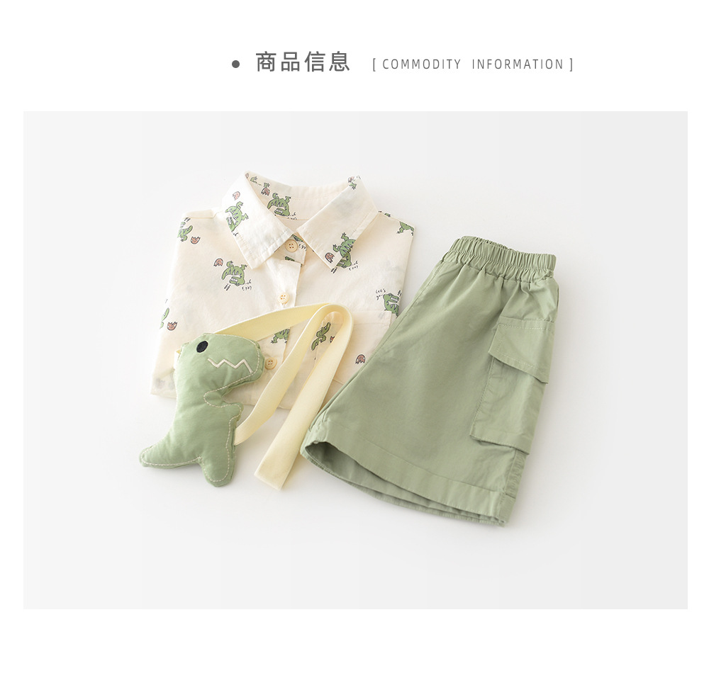 26夏款男童卡通短袖两件套 婴幼童满印小恐龙套装送背带公仔52099