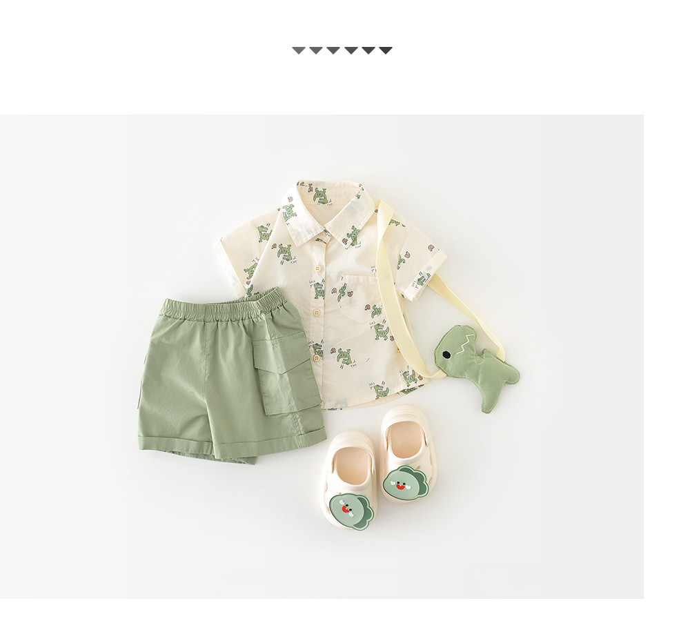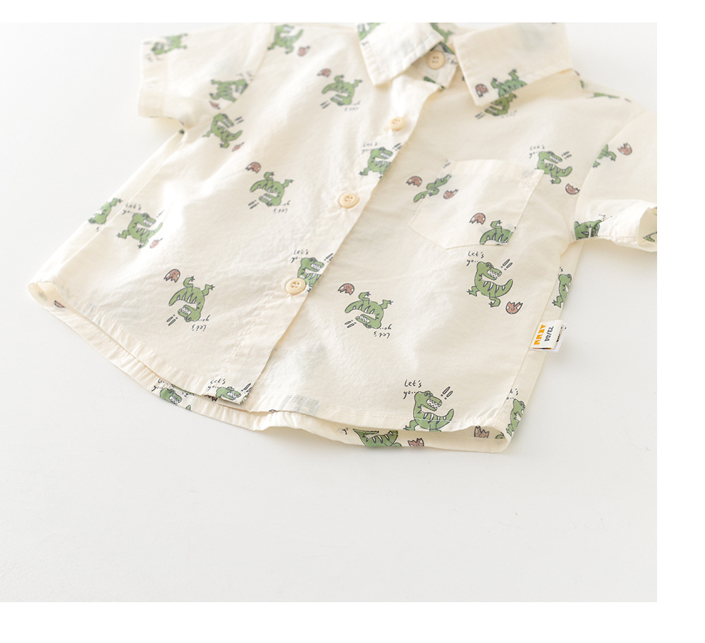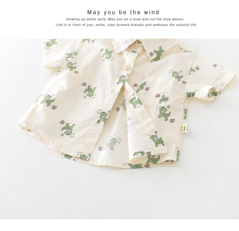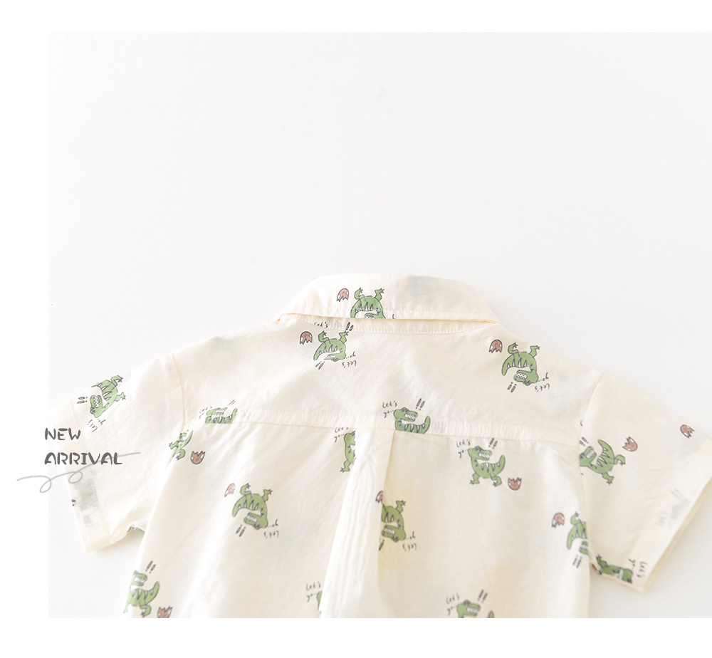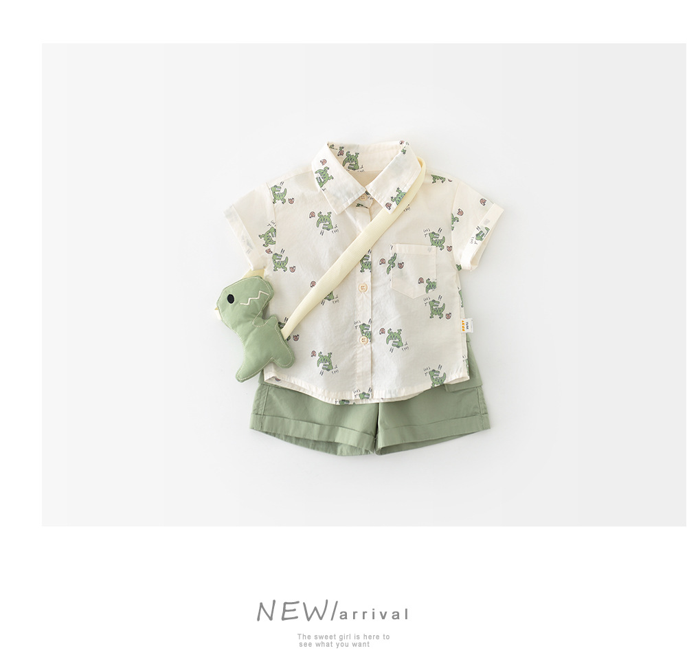 26夏款男童卡通短袖两件套 婴幼童满印小恐龙套装送背带公仔52099