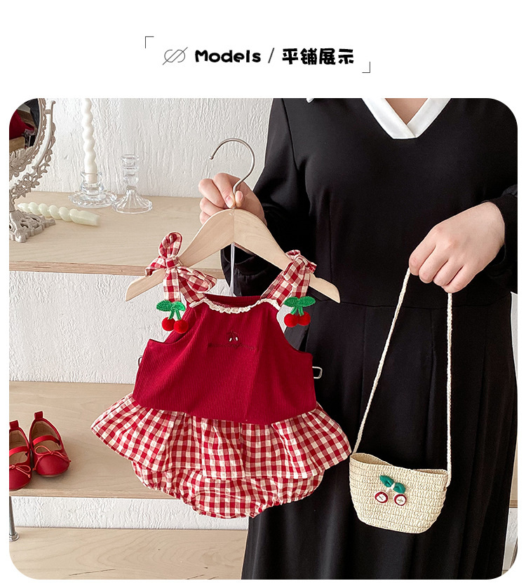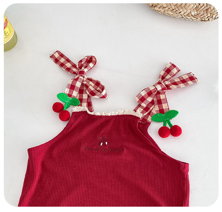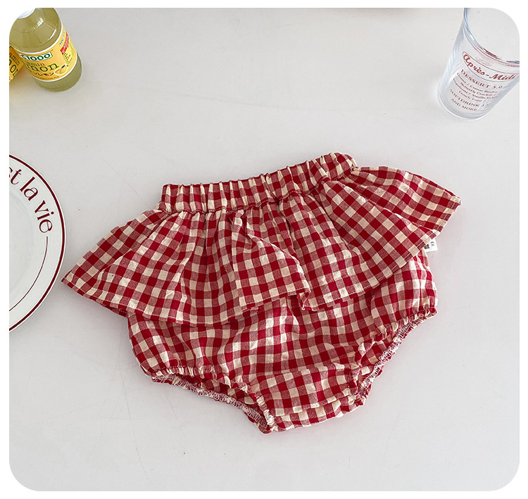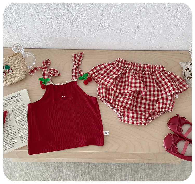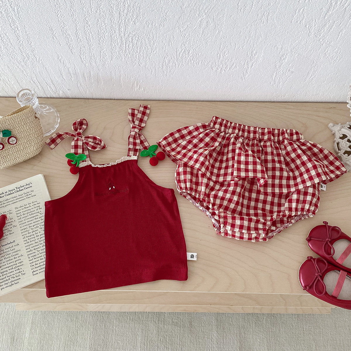 婴儿衣服夏装女宝宝套装超萌夏季吊带上衣格子包屁短裤三件套薄款