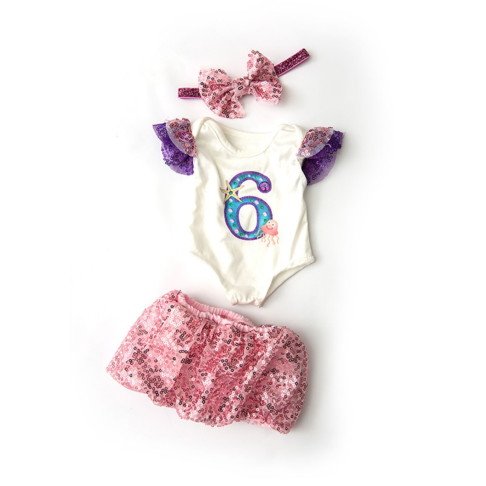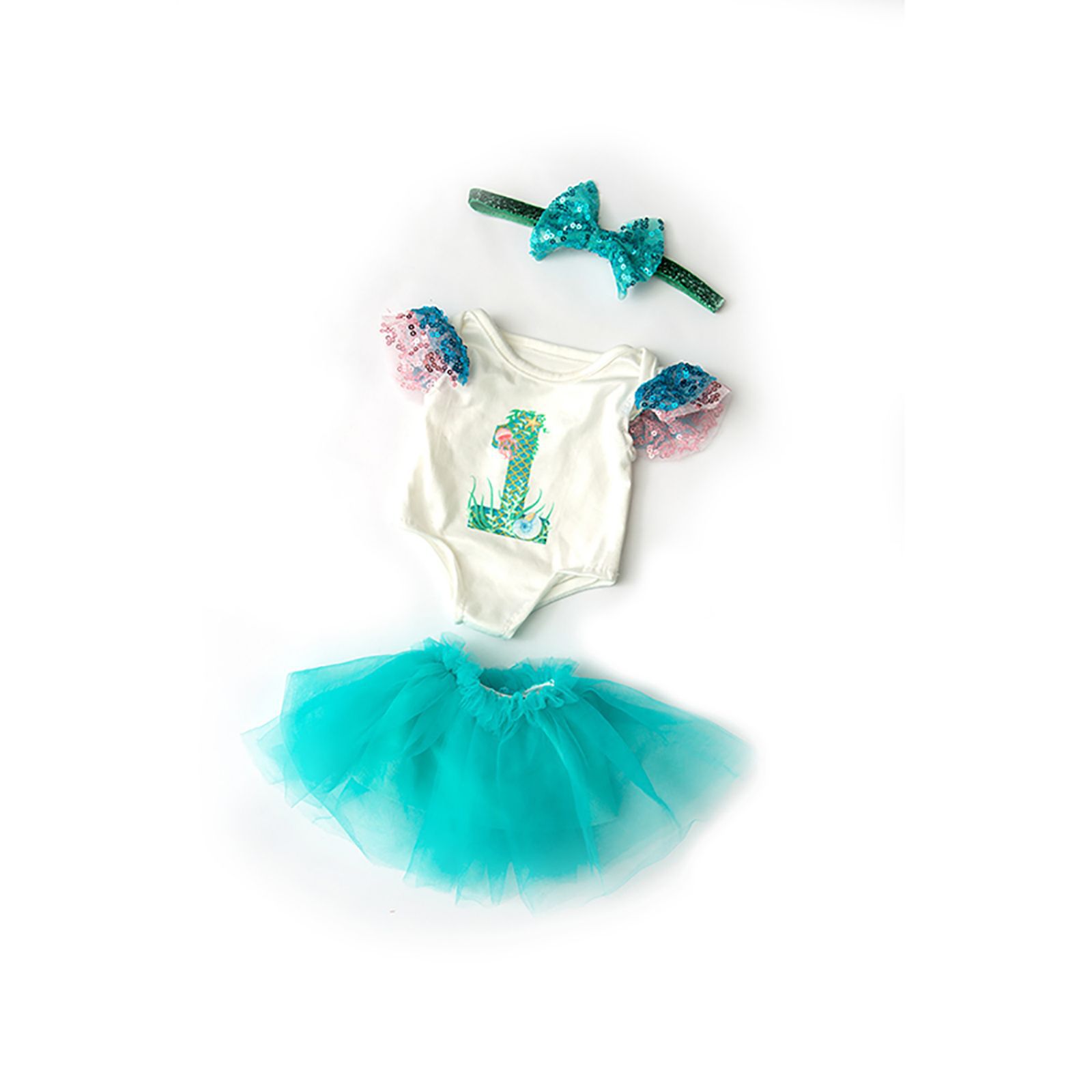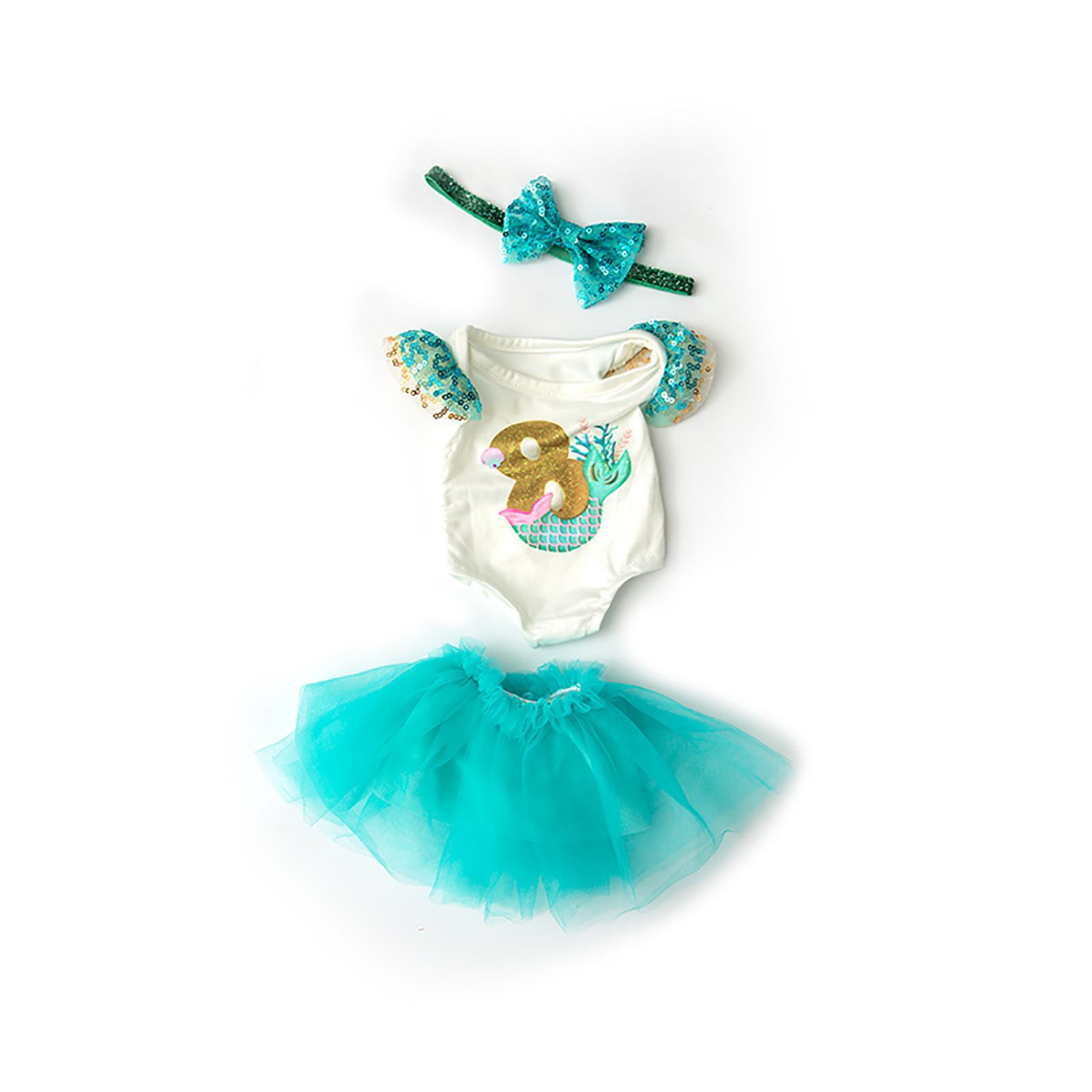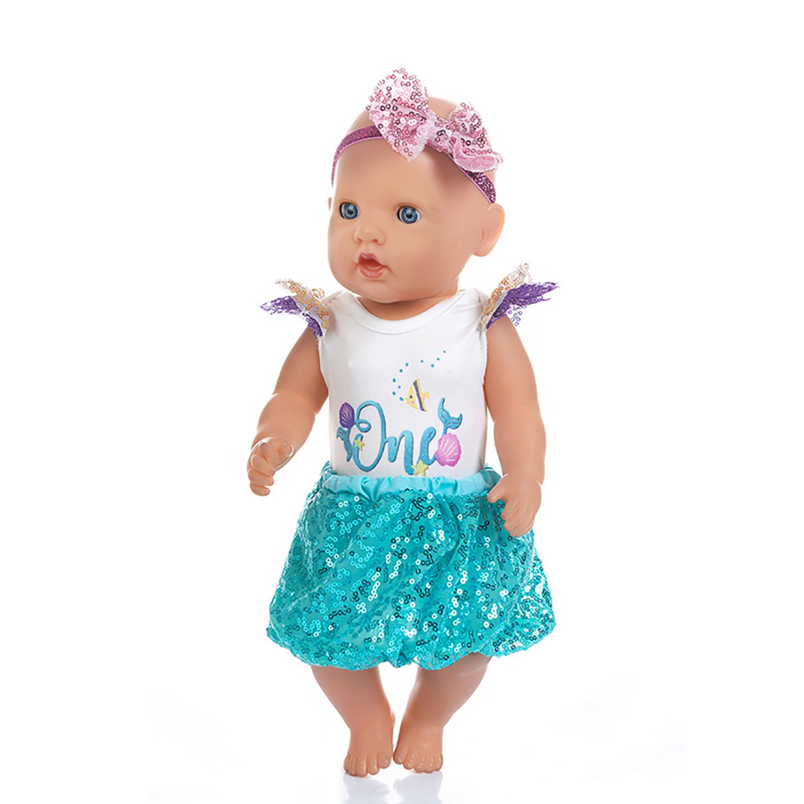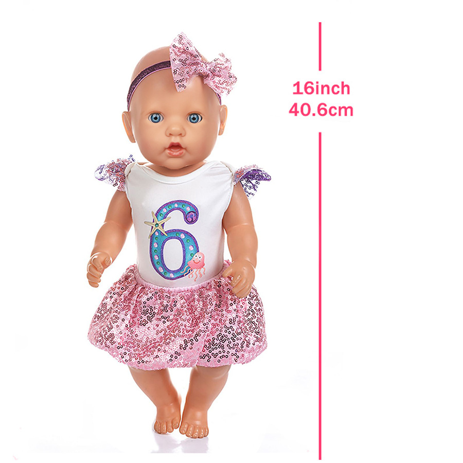 跨境43CM夏芙娃娃女童公主风印花连衣裙复活节短袖裙娃衣三件套装