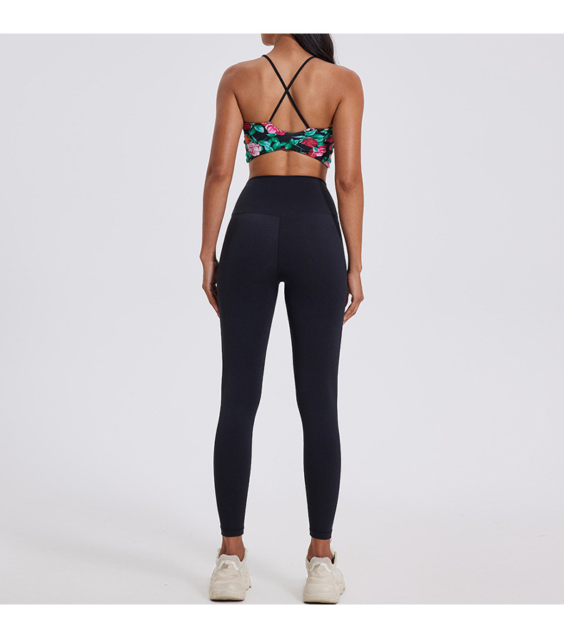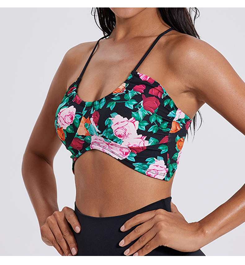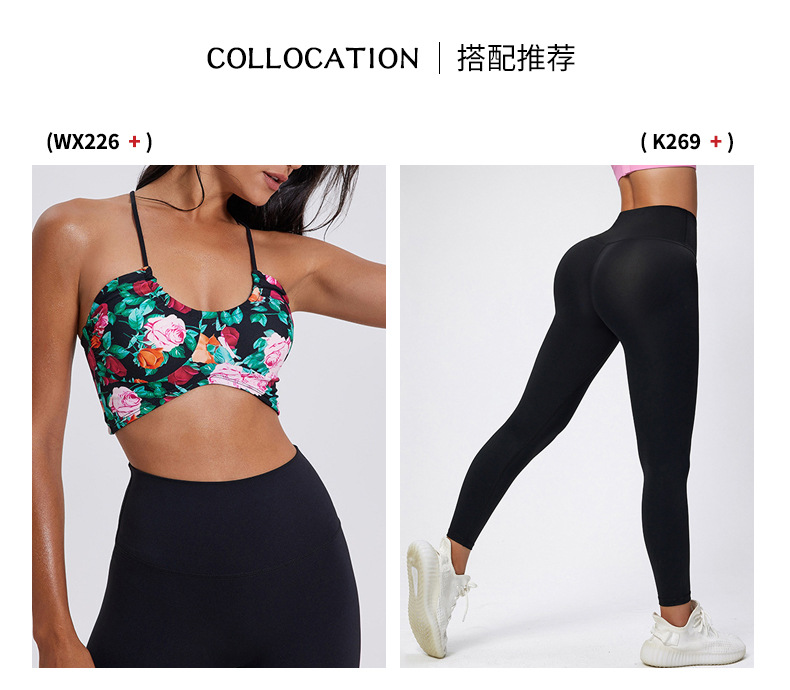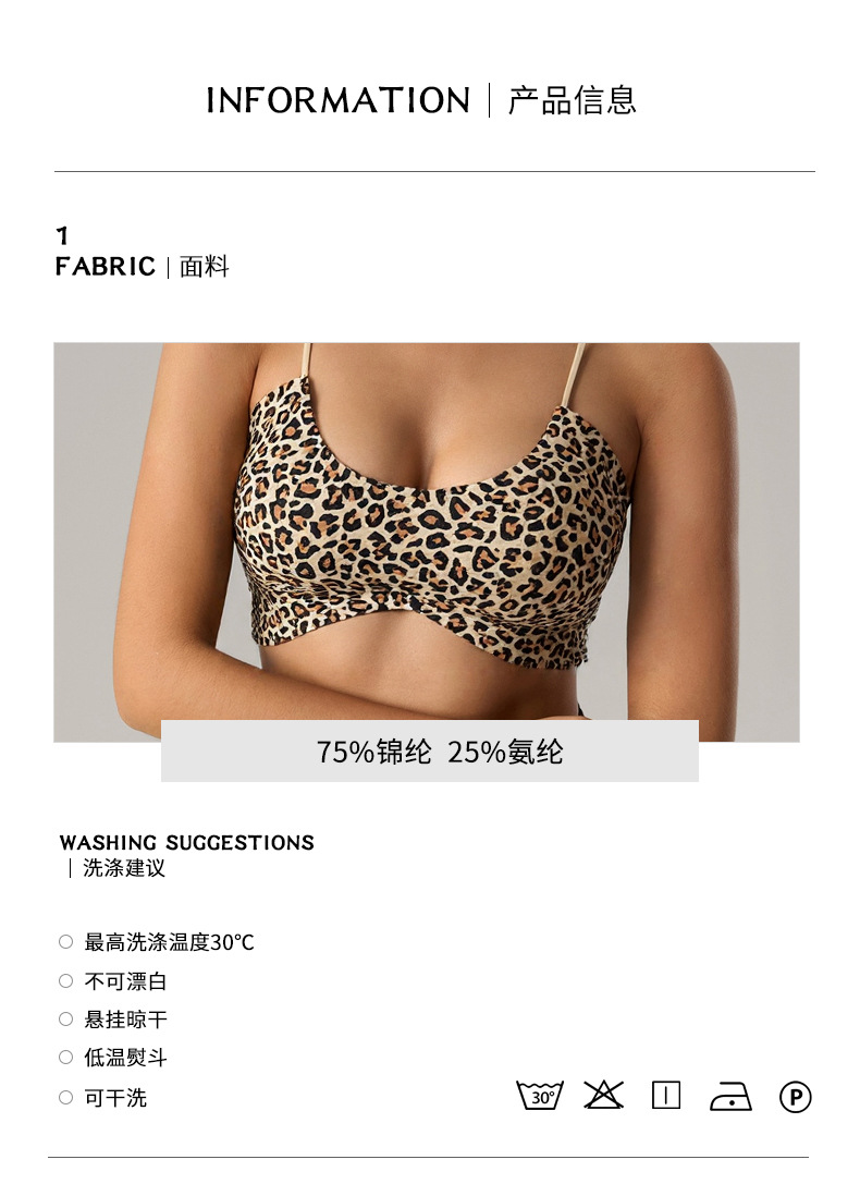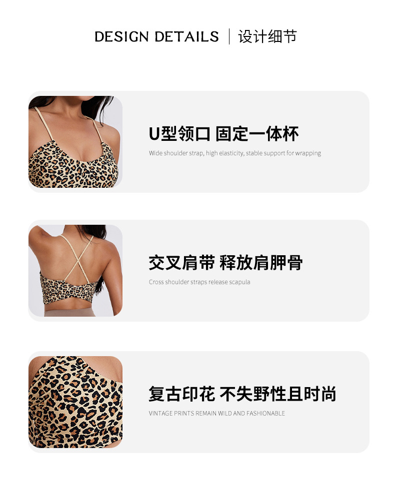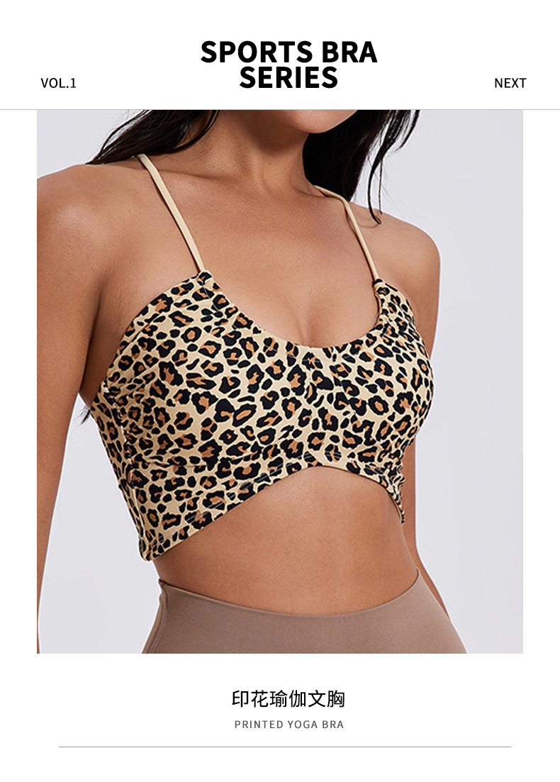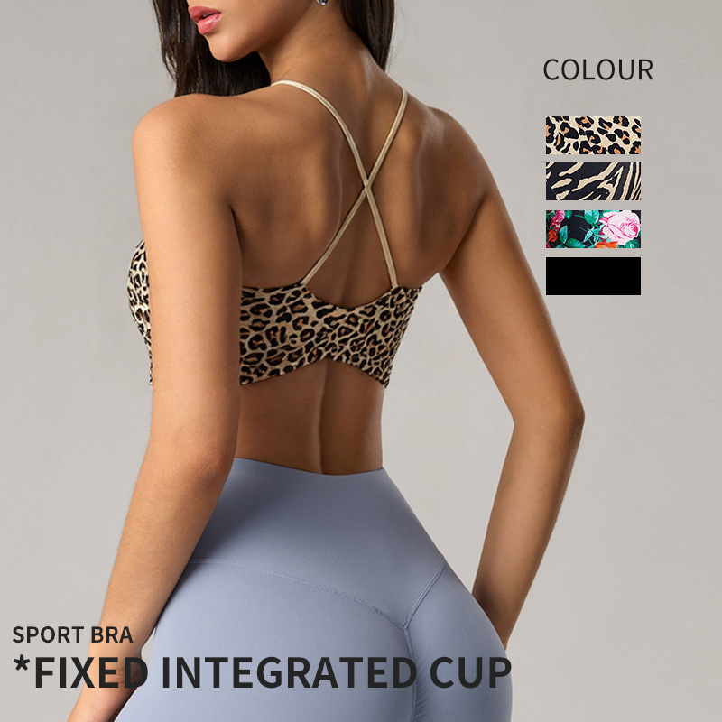 固定式胸垫豹纹U领运动内衣女细肩带瑜伽健身聚拢美背显瘦文瘦