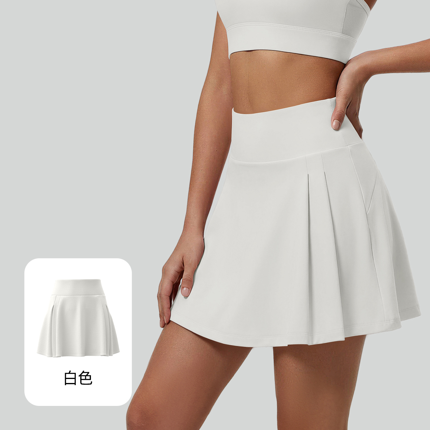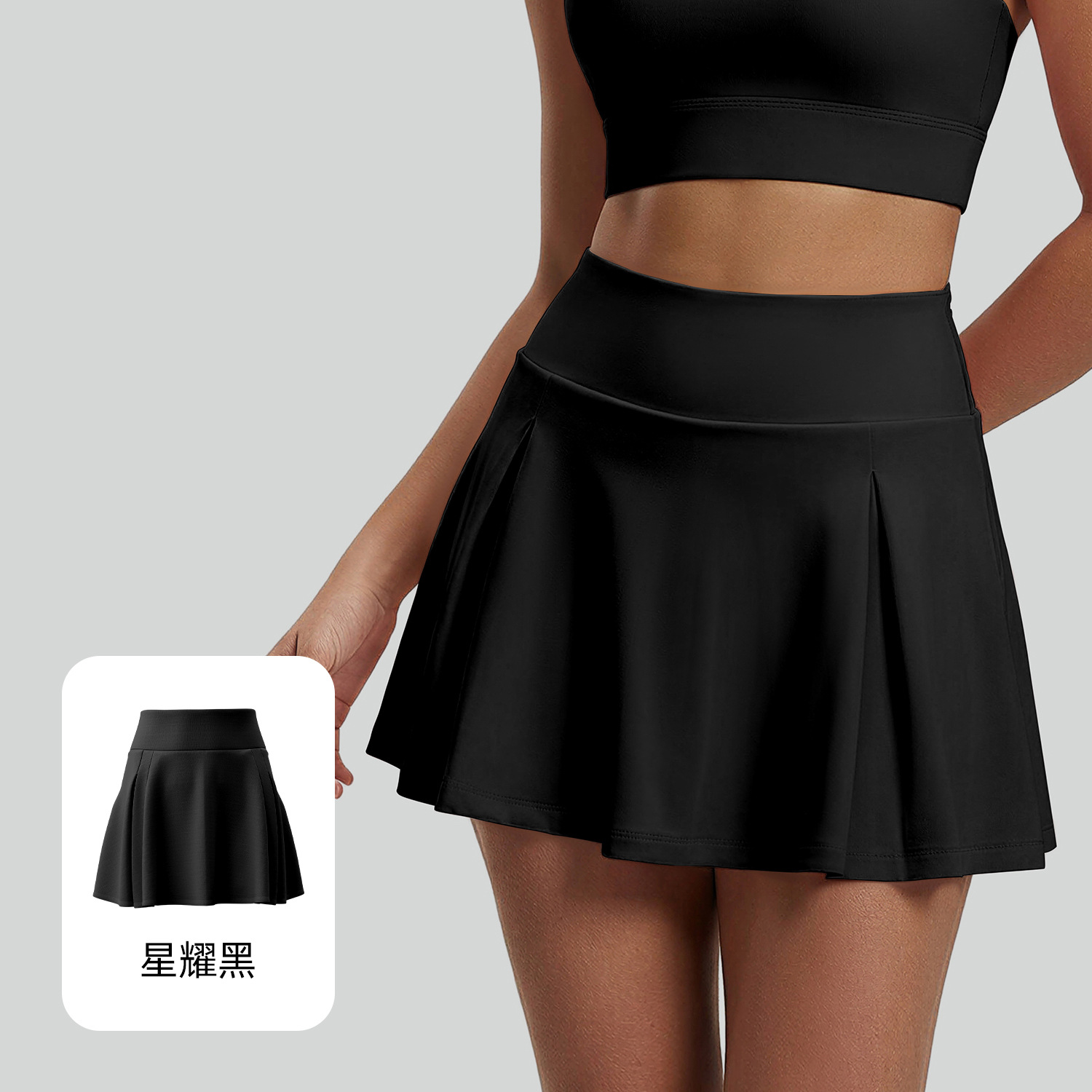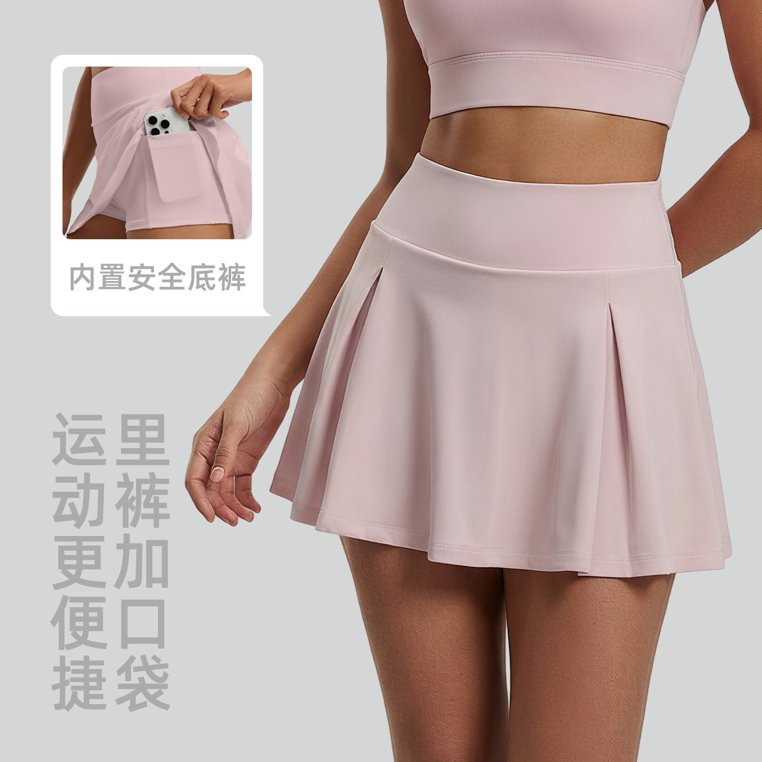 聚衣堂26新款百褶裙带口袋防走光半身裙跑步网球运动短裙女