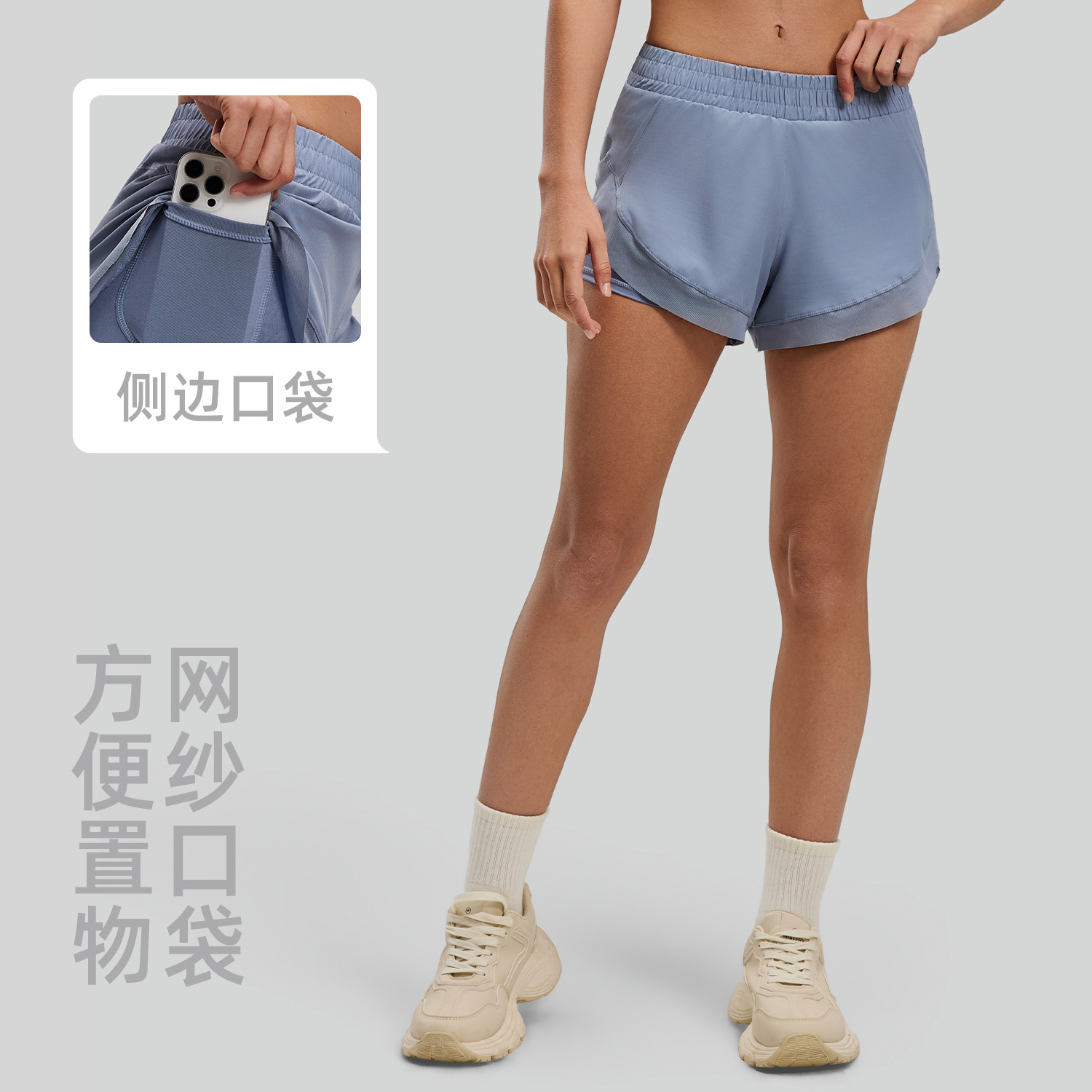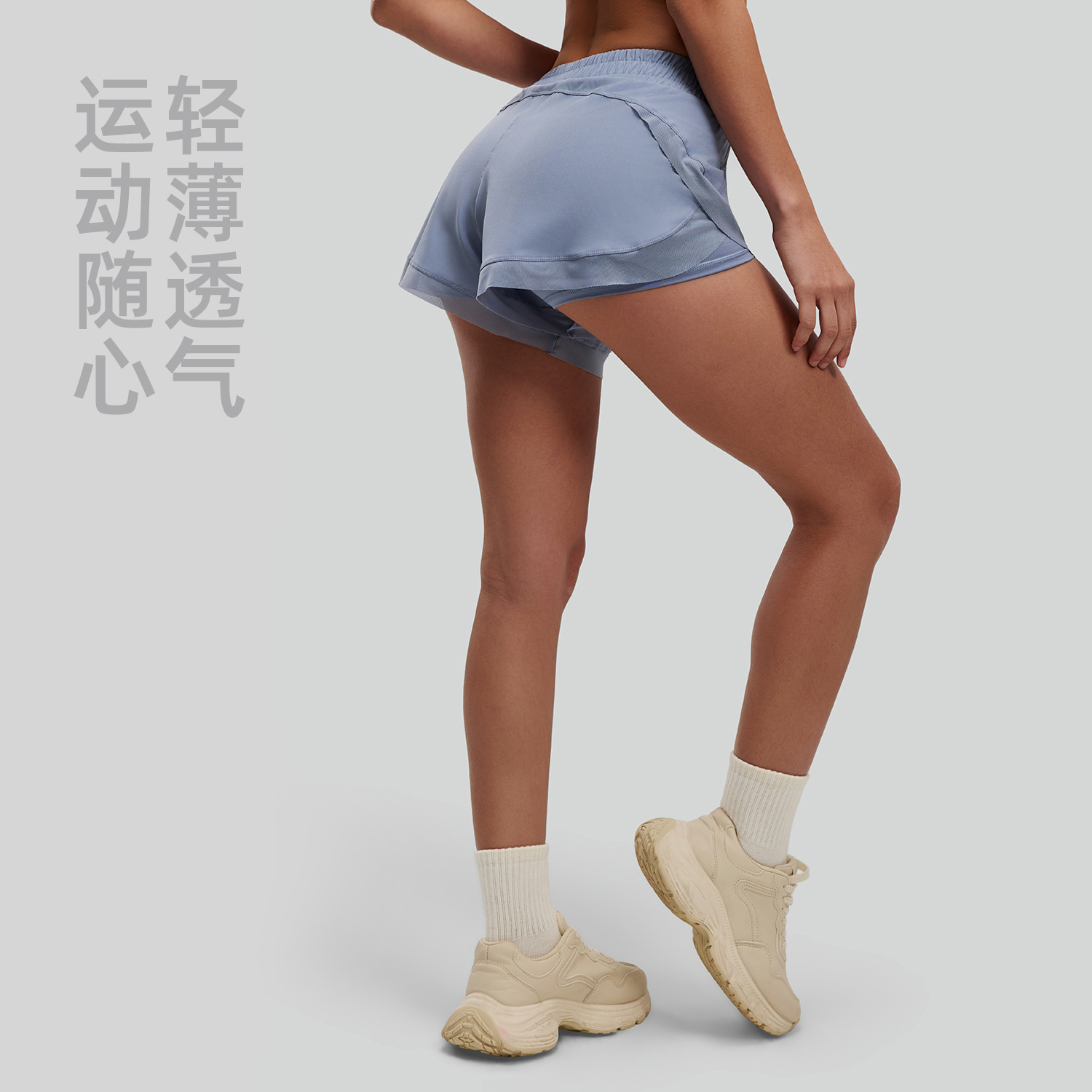 聚衣堂网纱短裤蜜桃运动健身短裤无痕裸感口袋瑜伽短裤女