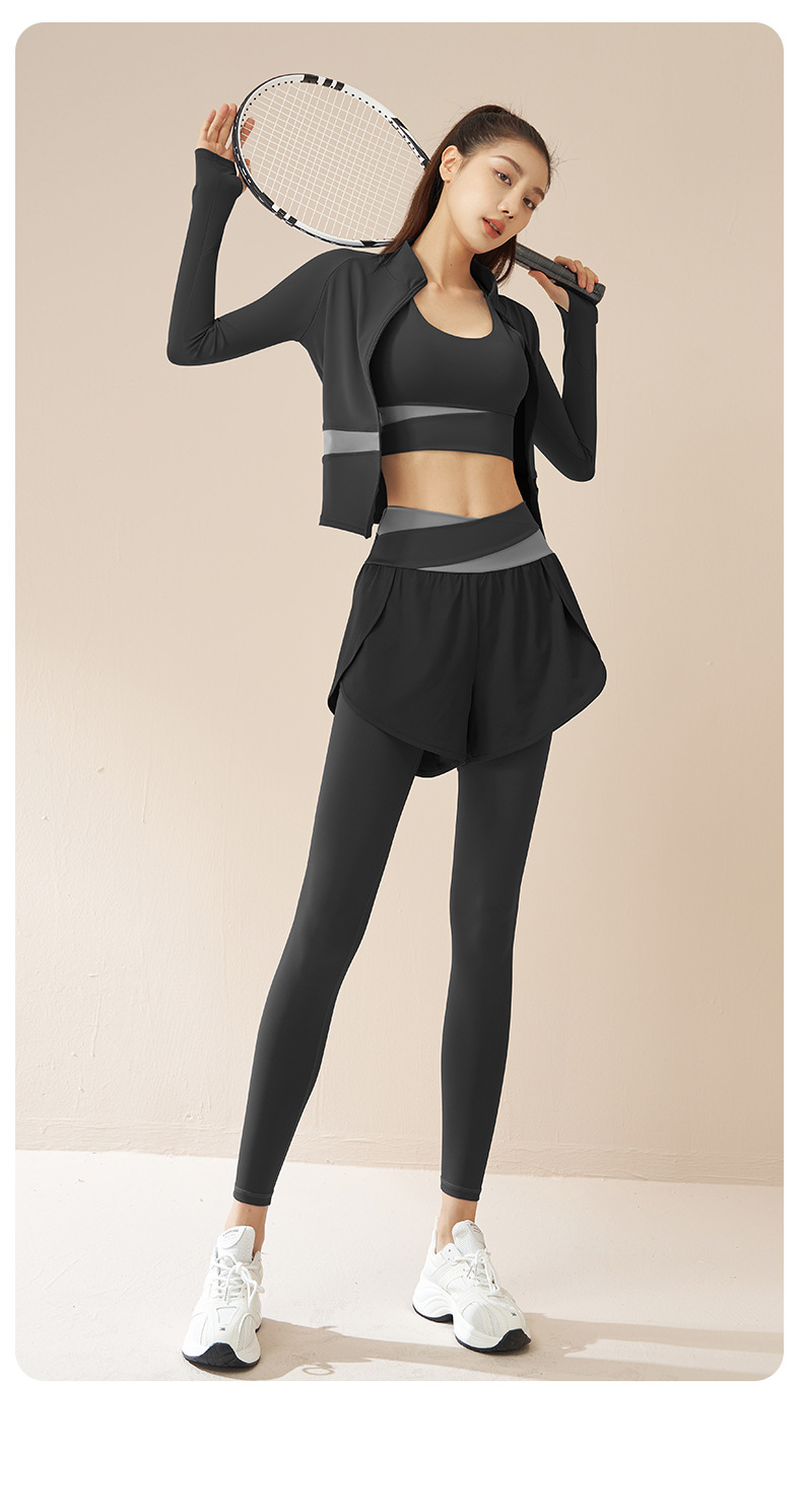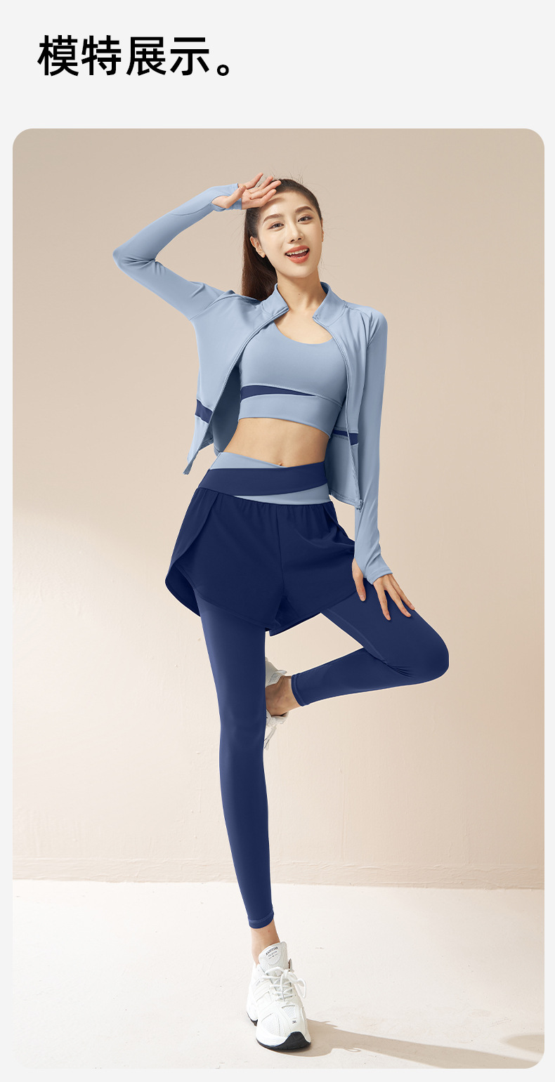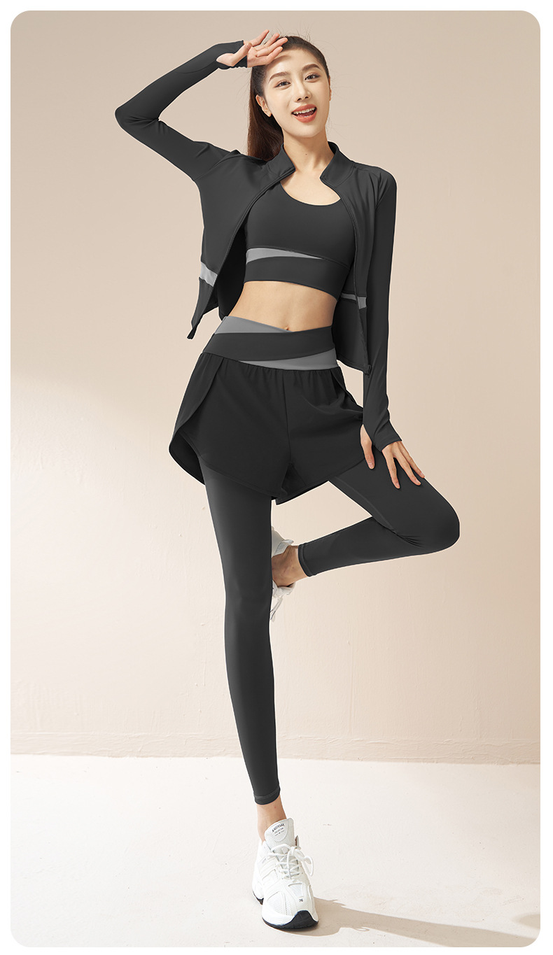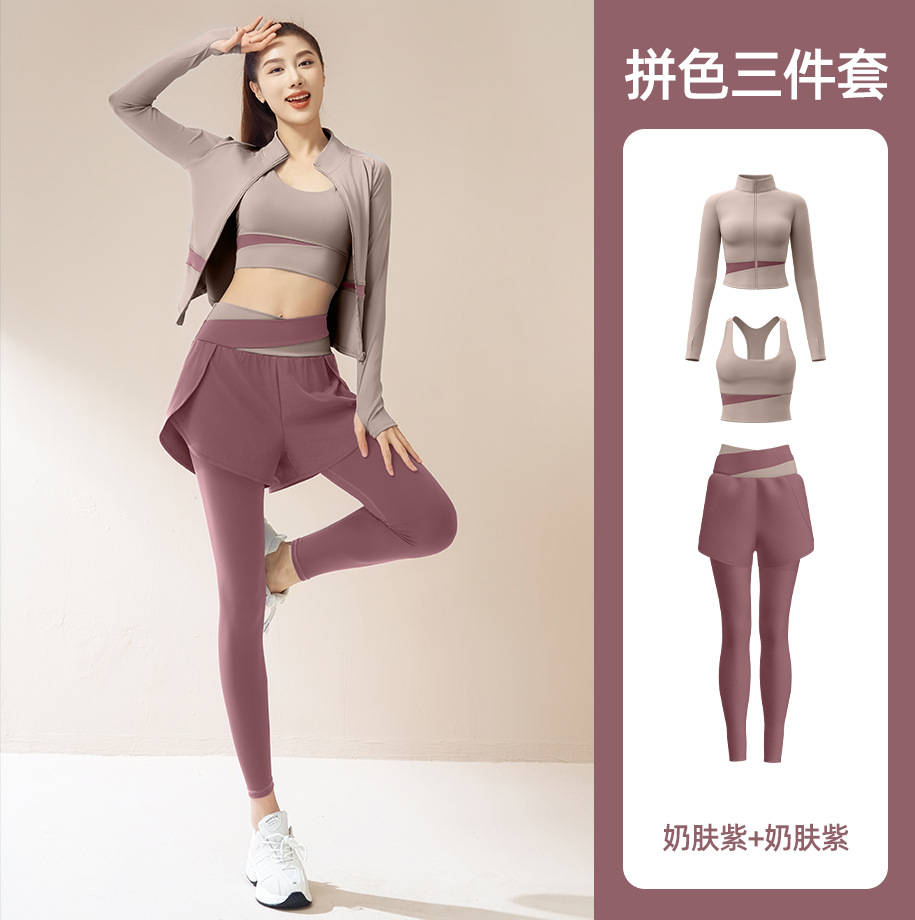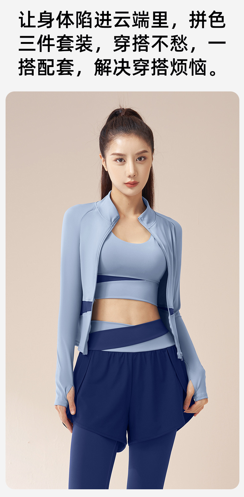 聚衣堂拼色瑜伽三件套网红跑步运动服透气修身瑜伽服套装女