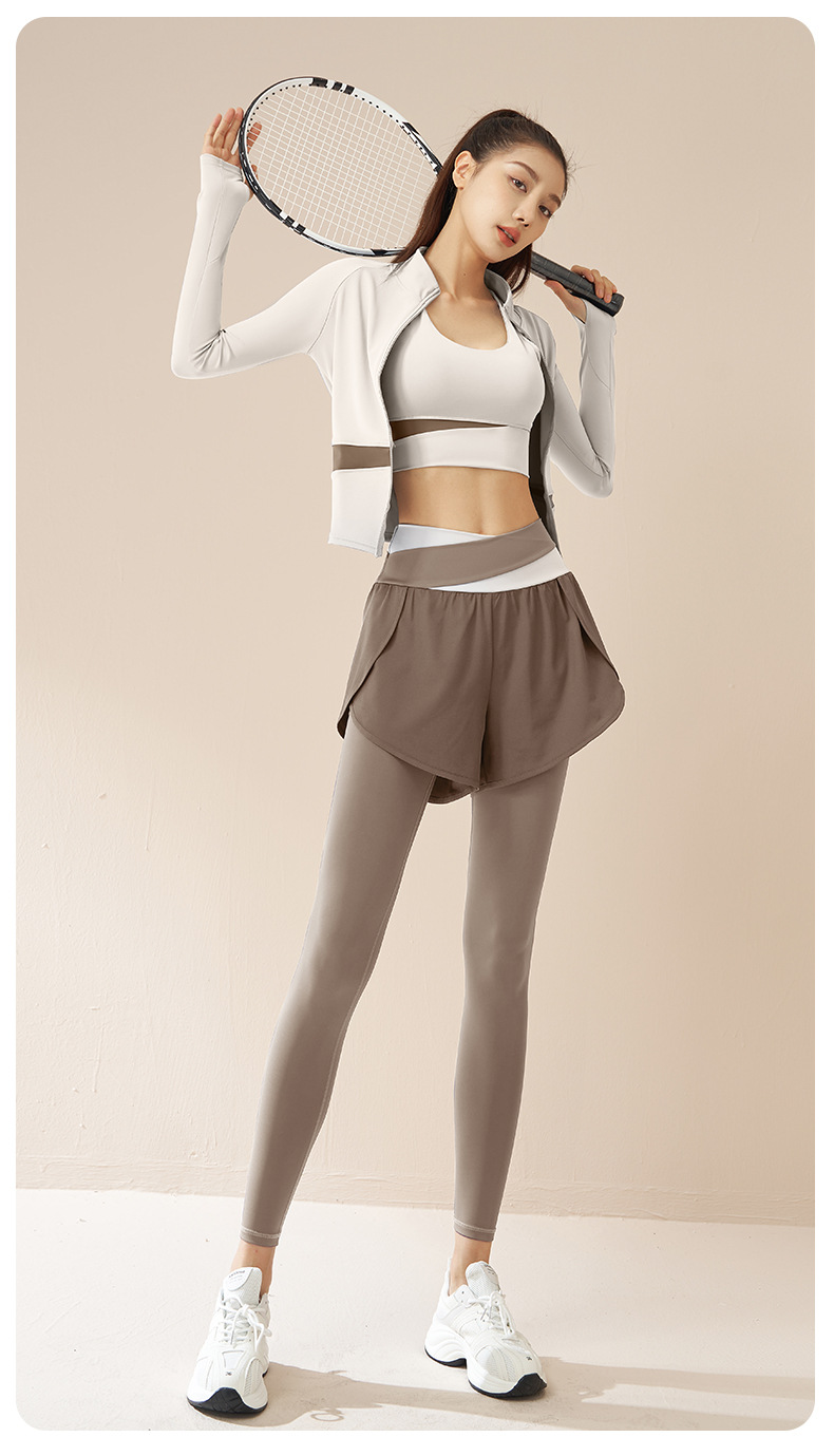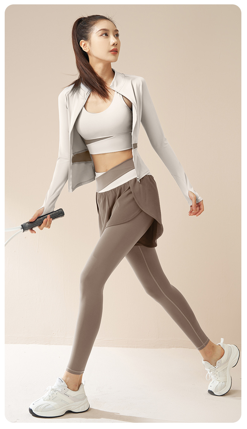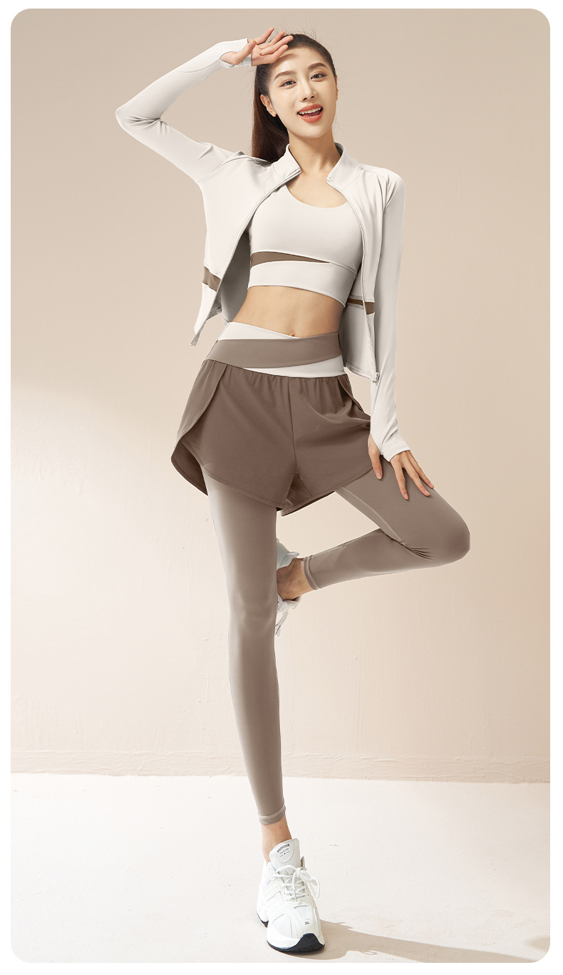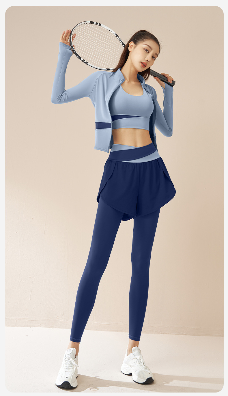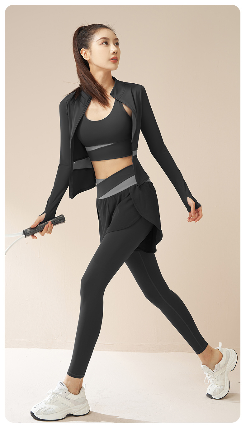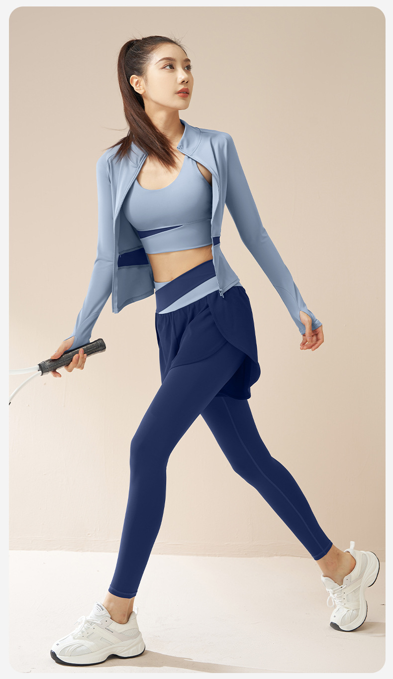 聚衣堂拼色瑜伽三件套网红跑步运动服透气修身瑜伽服套装女