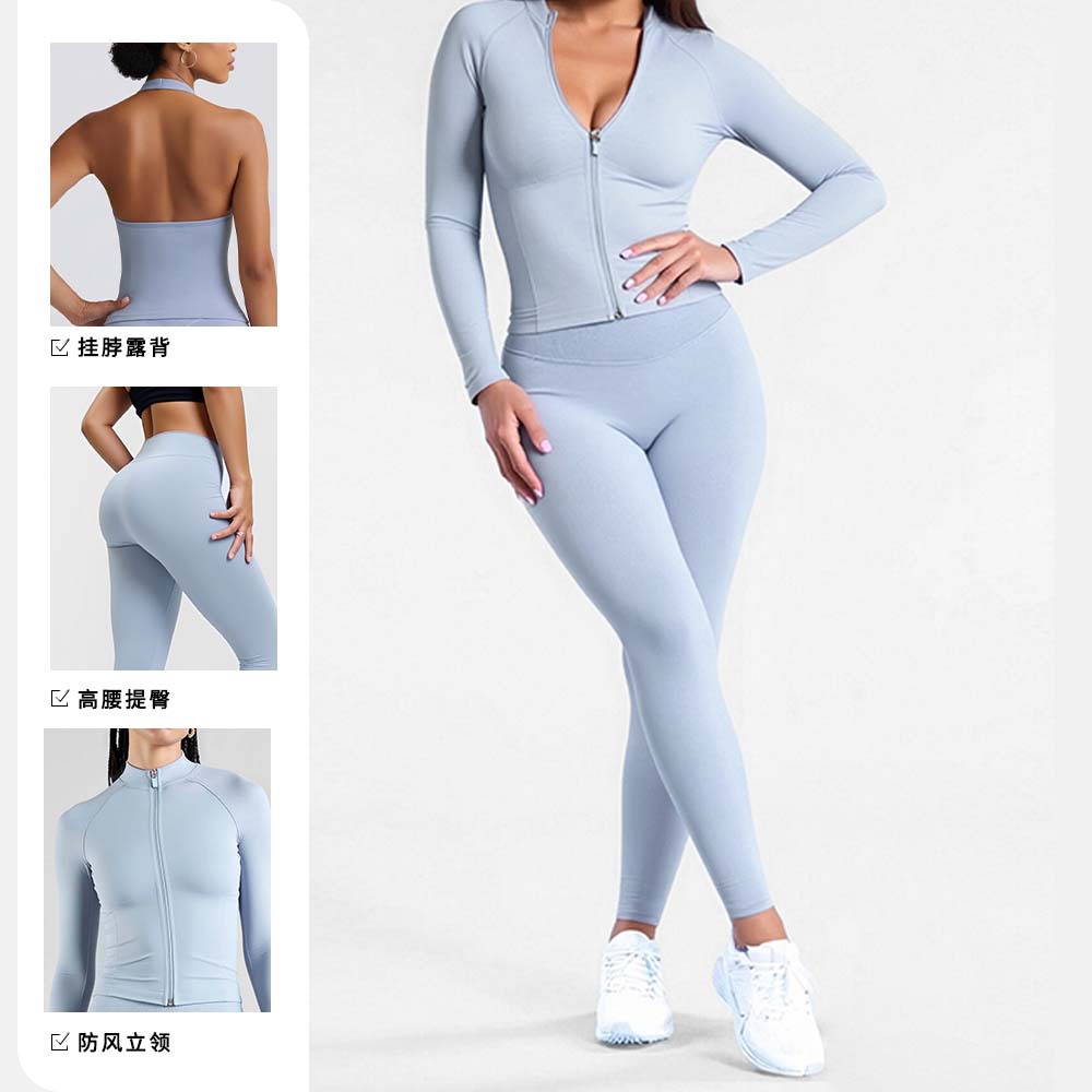 豪骞无缝紧身速干瑜伽运动套装女户外休闲运动普拉提绝美训练服
