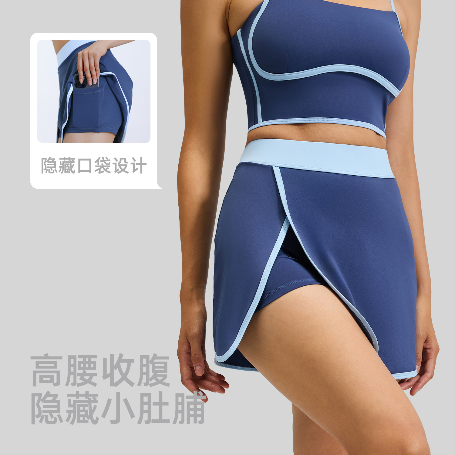 聚衣堂线形瑜伽短裙假两件防走光内置口袋健身运动裙