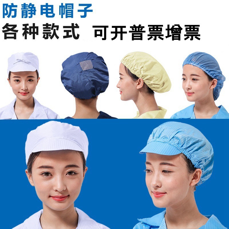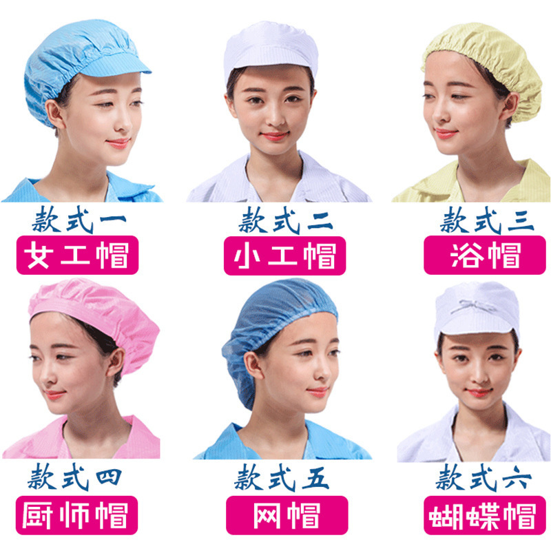 防静电帽子小工帽鸭舌帽蝴蝶帽浴帽网帽食品厂车间卫生防尘无尘帽