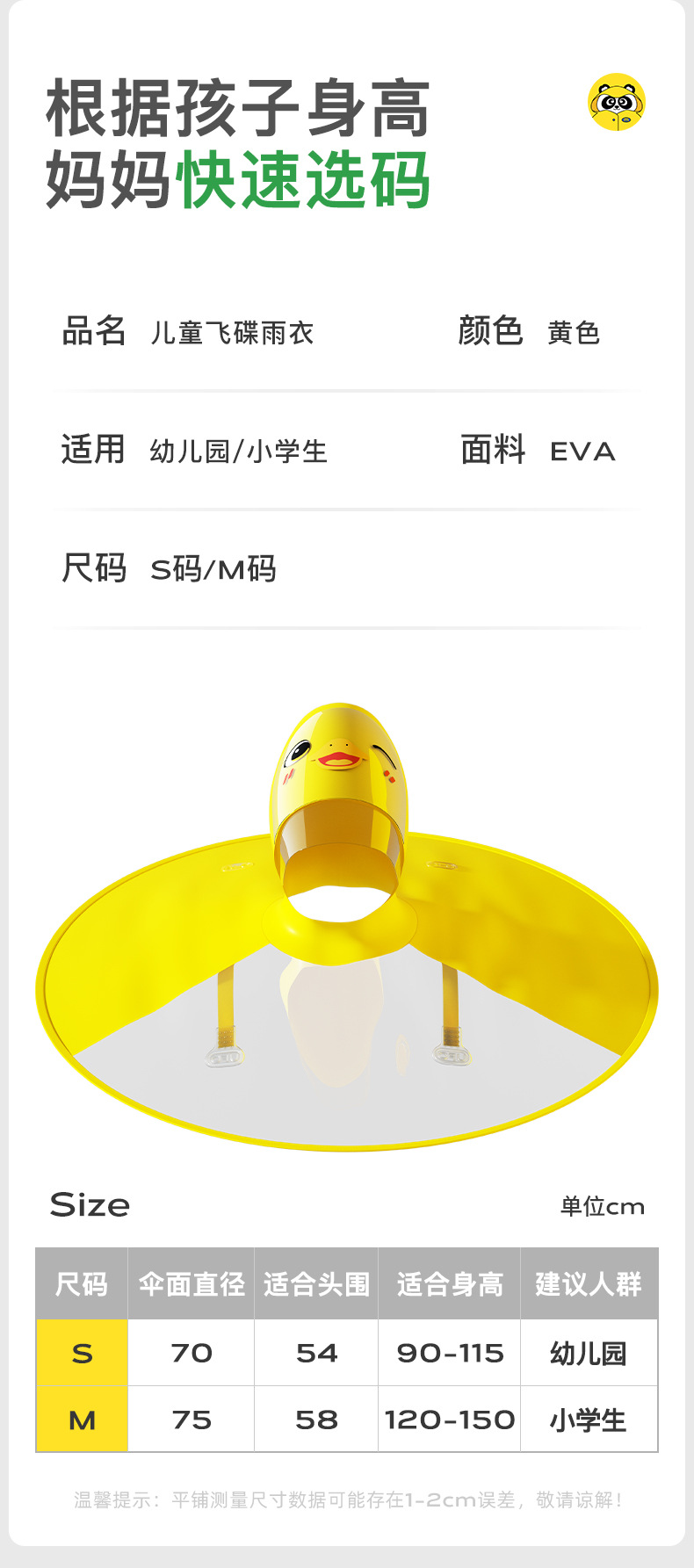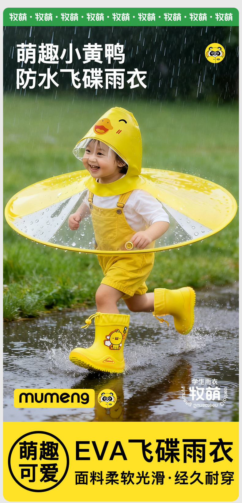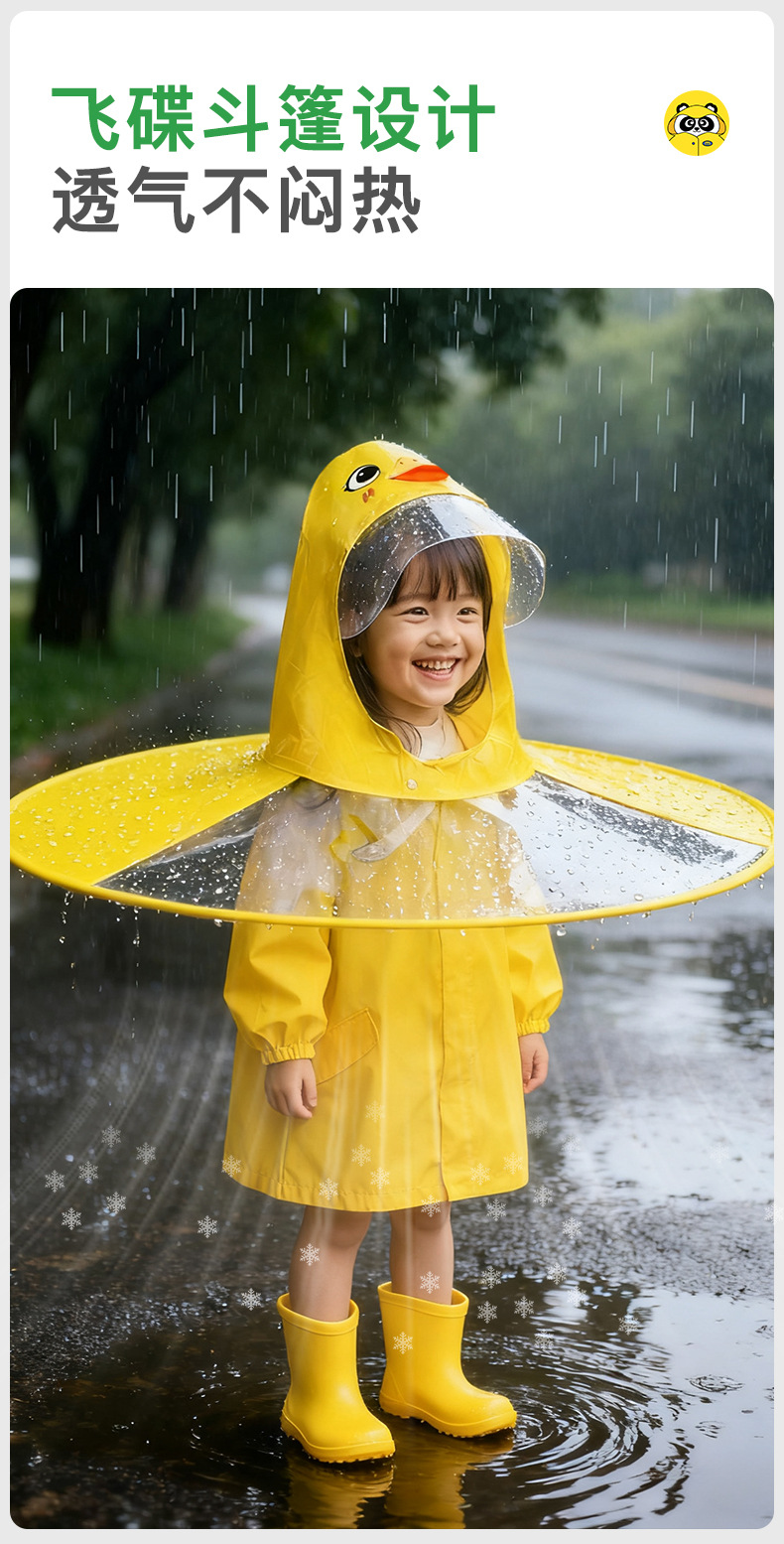 牧萌网红小黄鸭飞碟雨衣小童宝宝可爱ins风幼儿园儿童防水EVA雨披