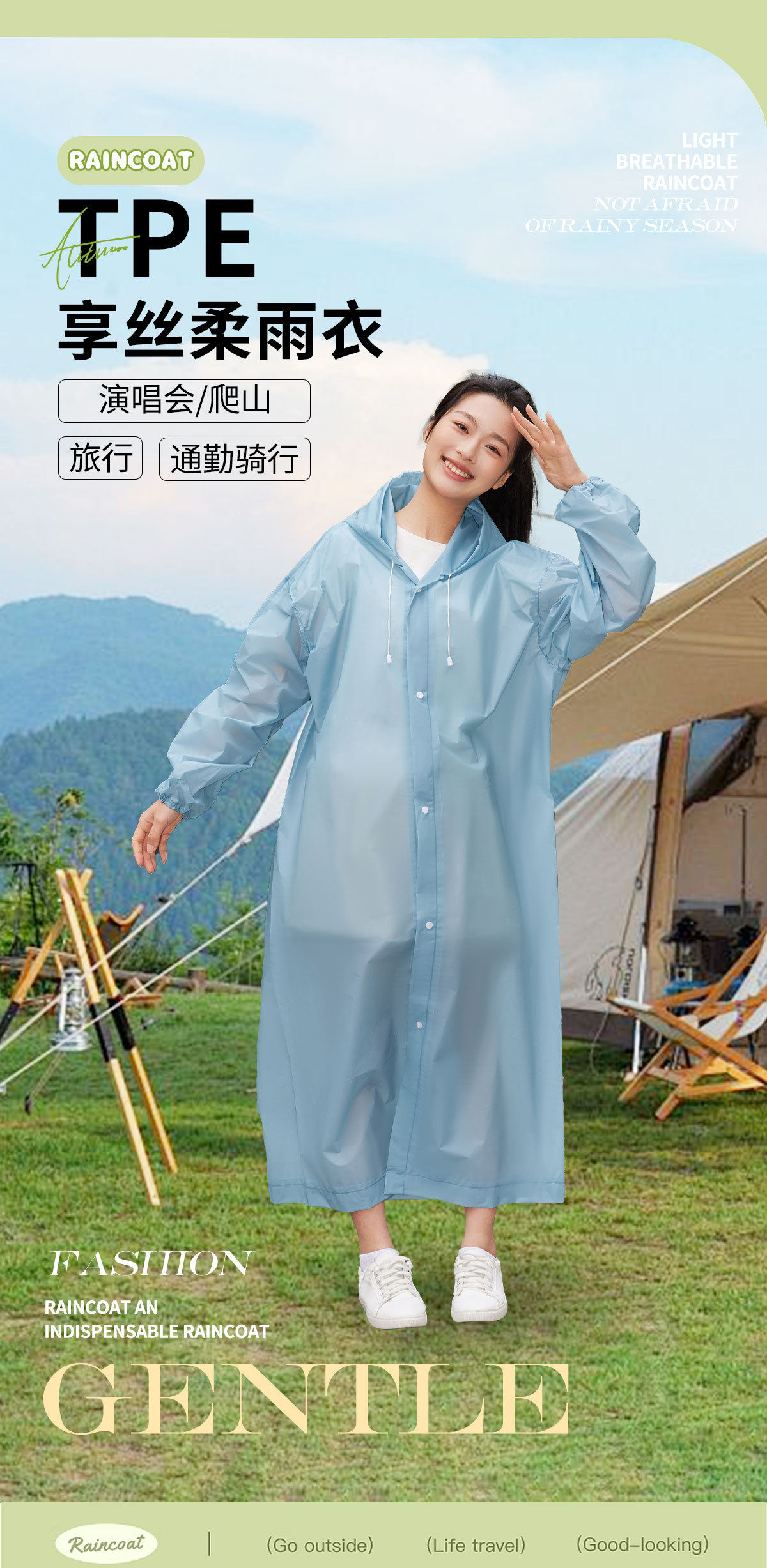 TPE非一次性连体雨衣全身防暴雨徒步雨披加厚加长景区雨衣批发