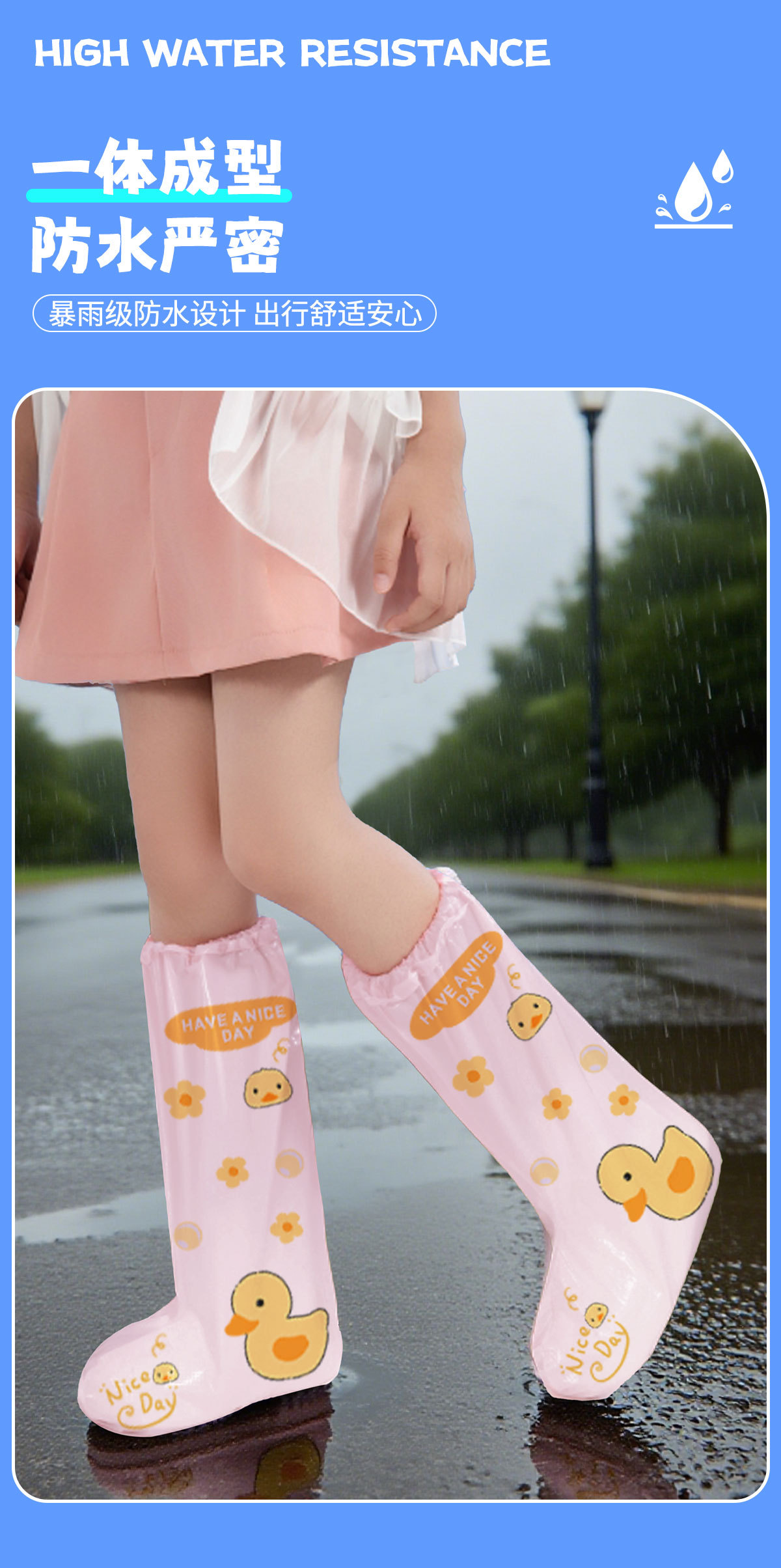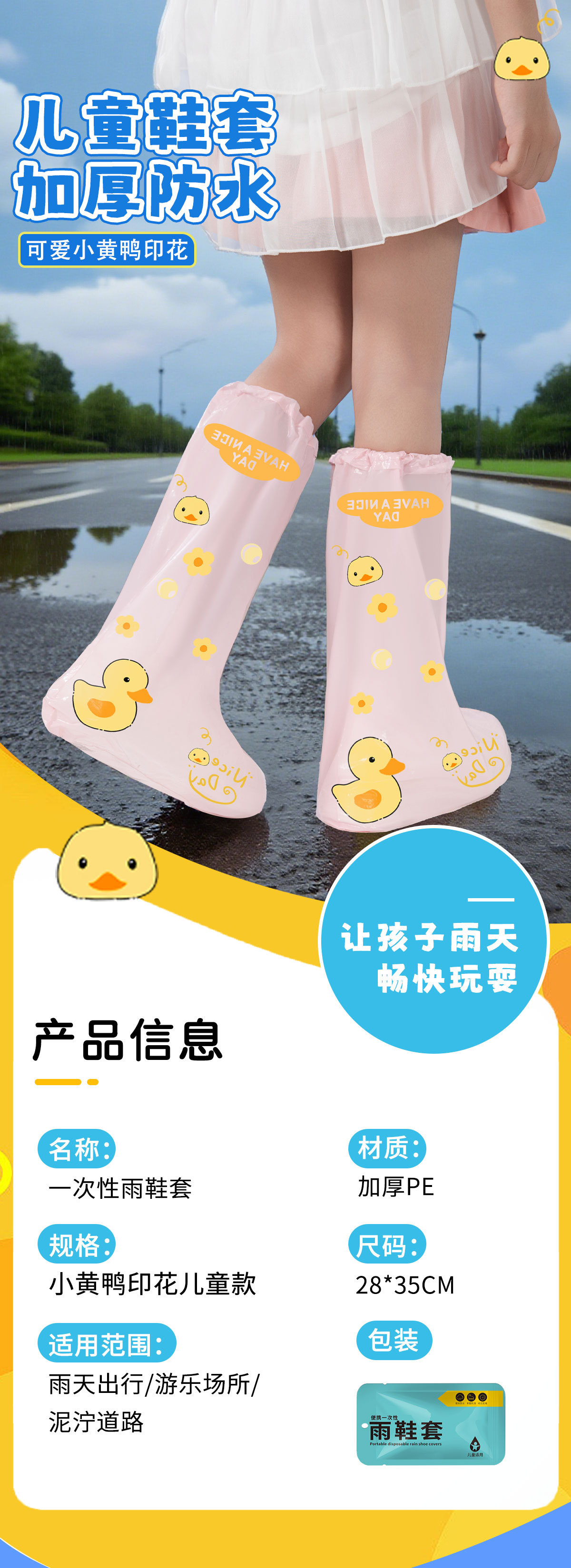 新款儿童卡通印花雨鞋套高筒防水一次性塑料脚套独立包装防雨鞋套
