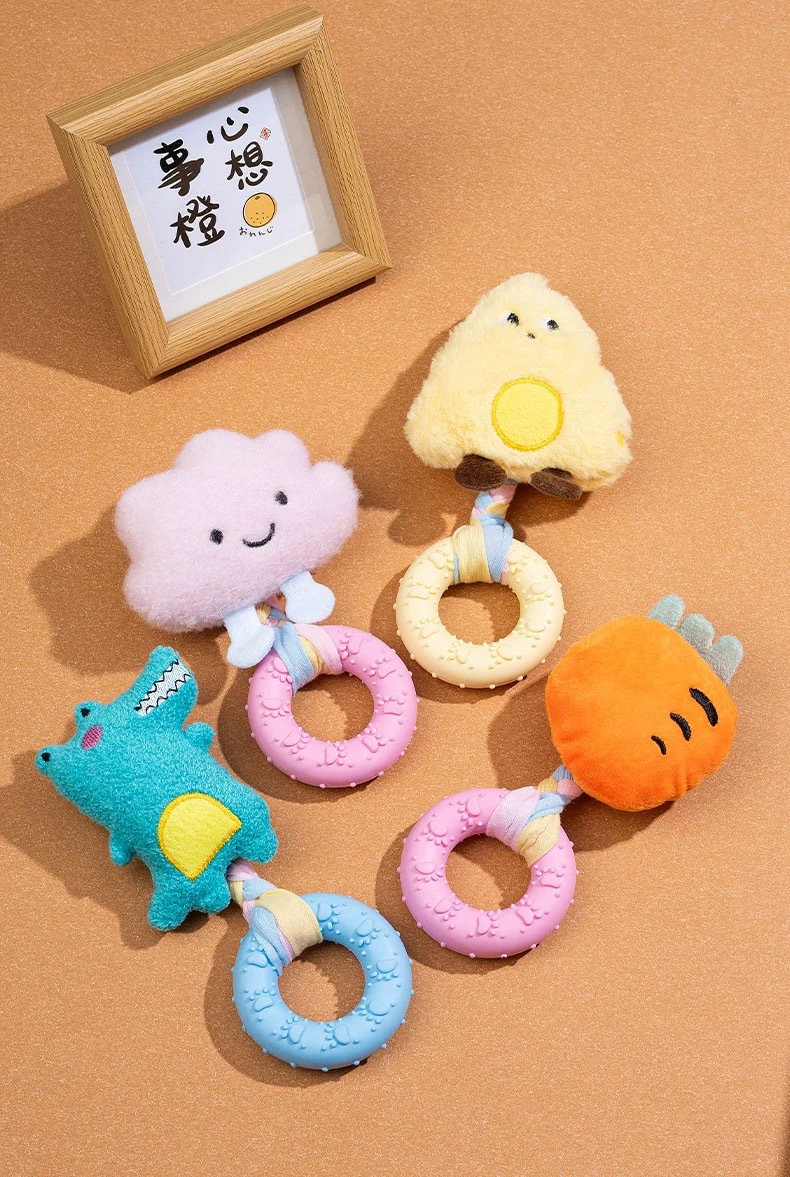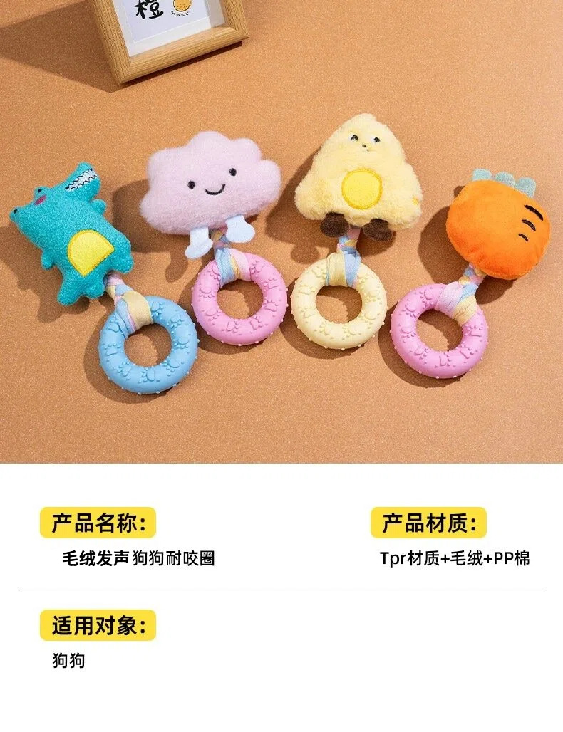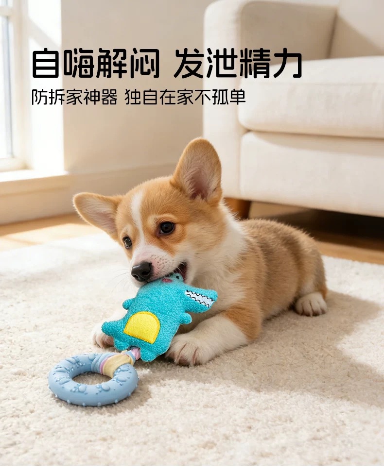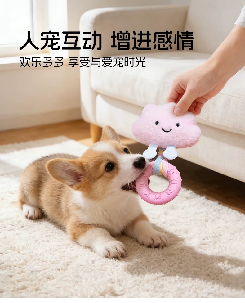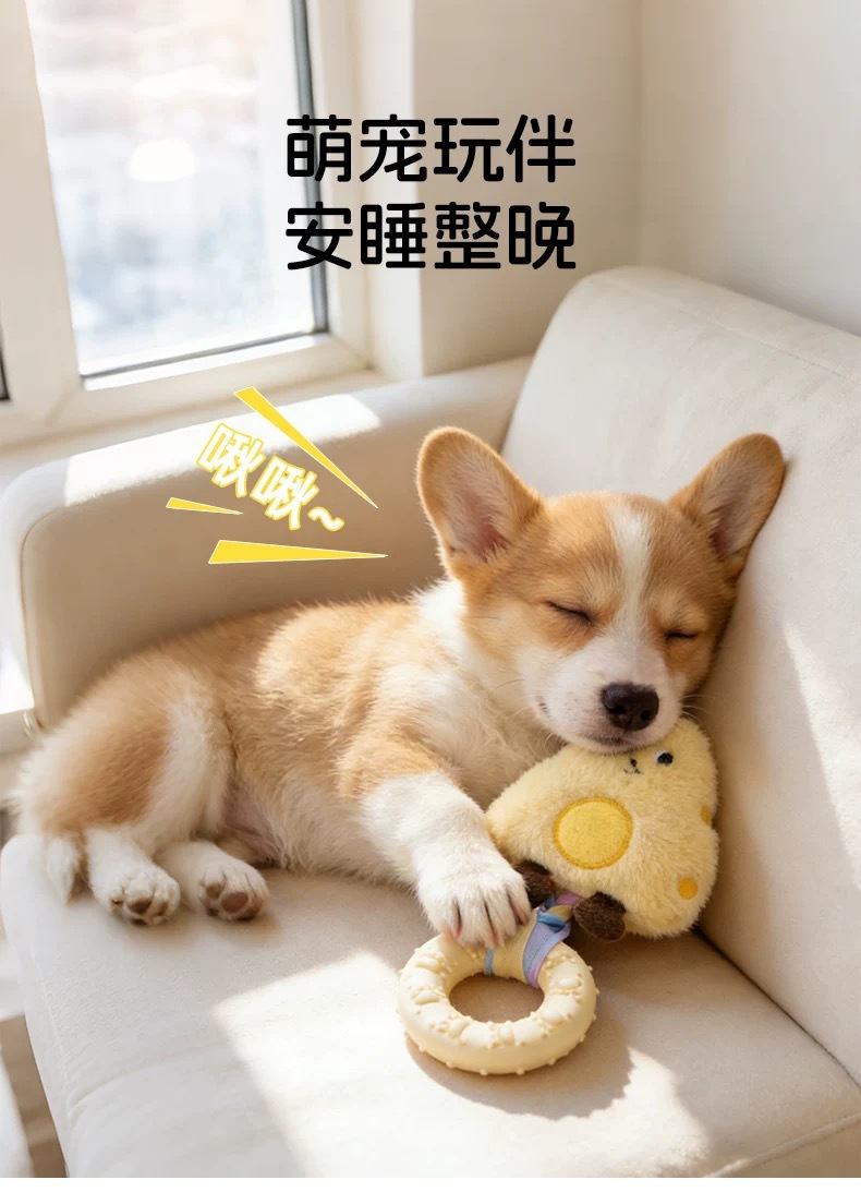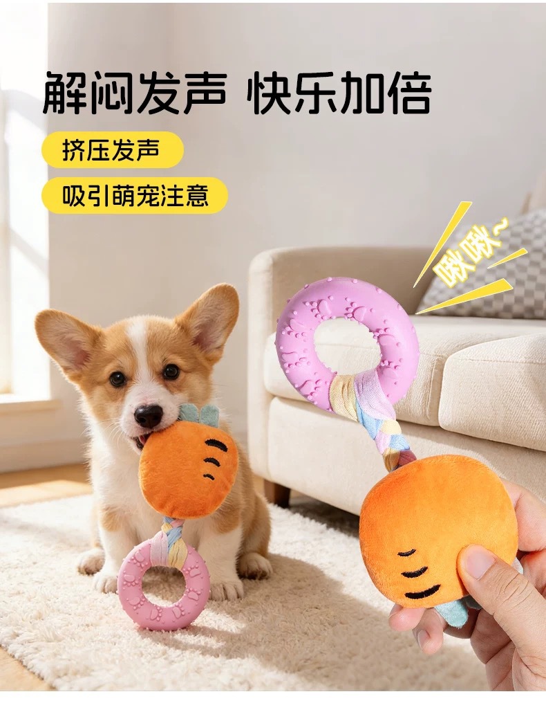 新款小狗狗玩具发声玩偶 布条TPR咬胶甜甜圈柯基比熊自嗨解闷玩具