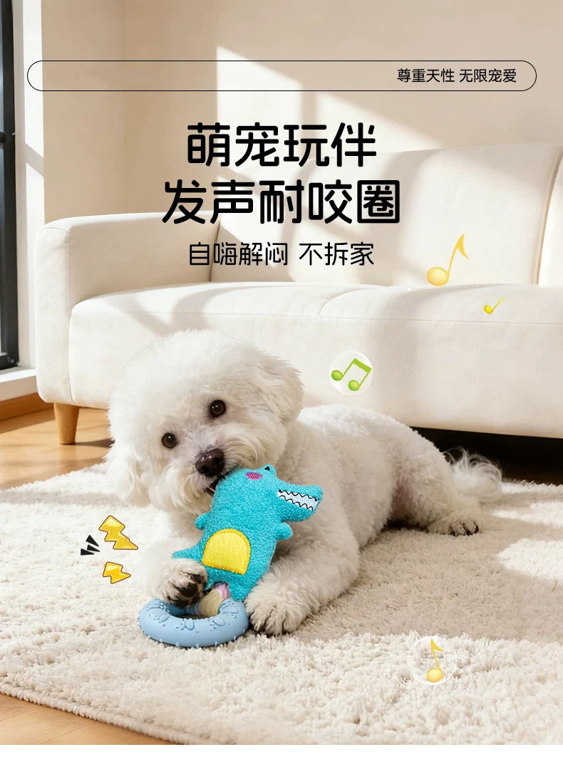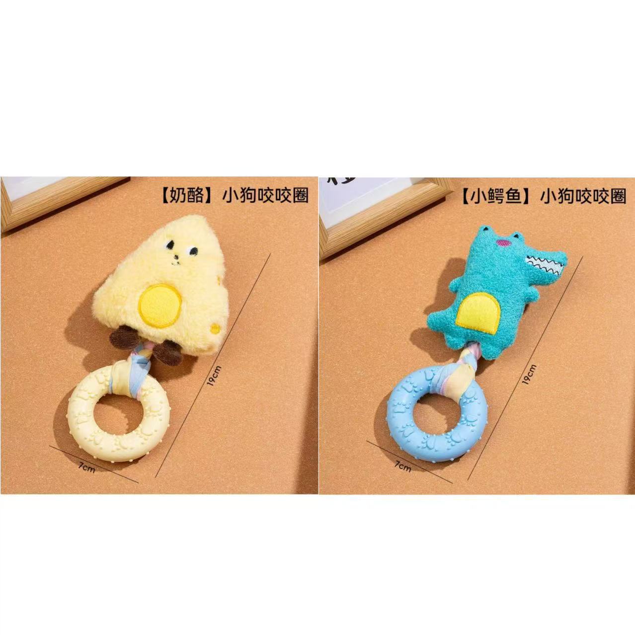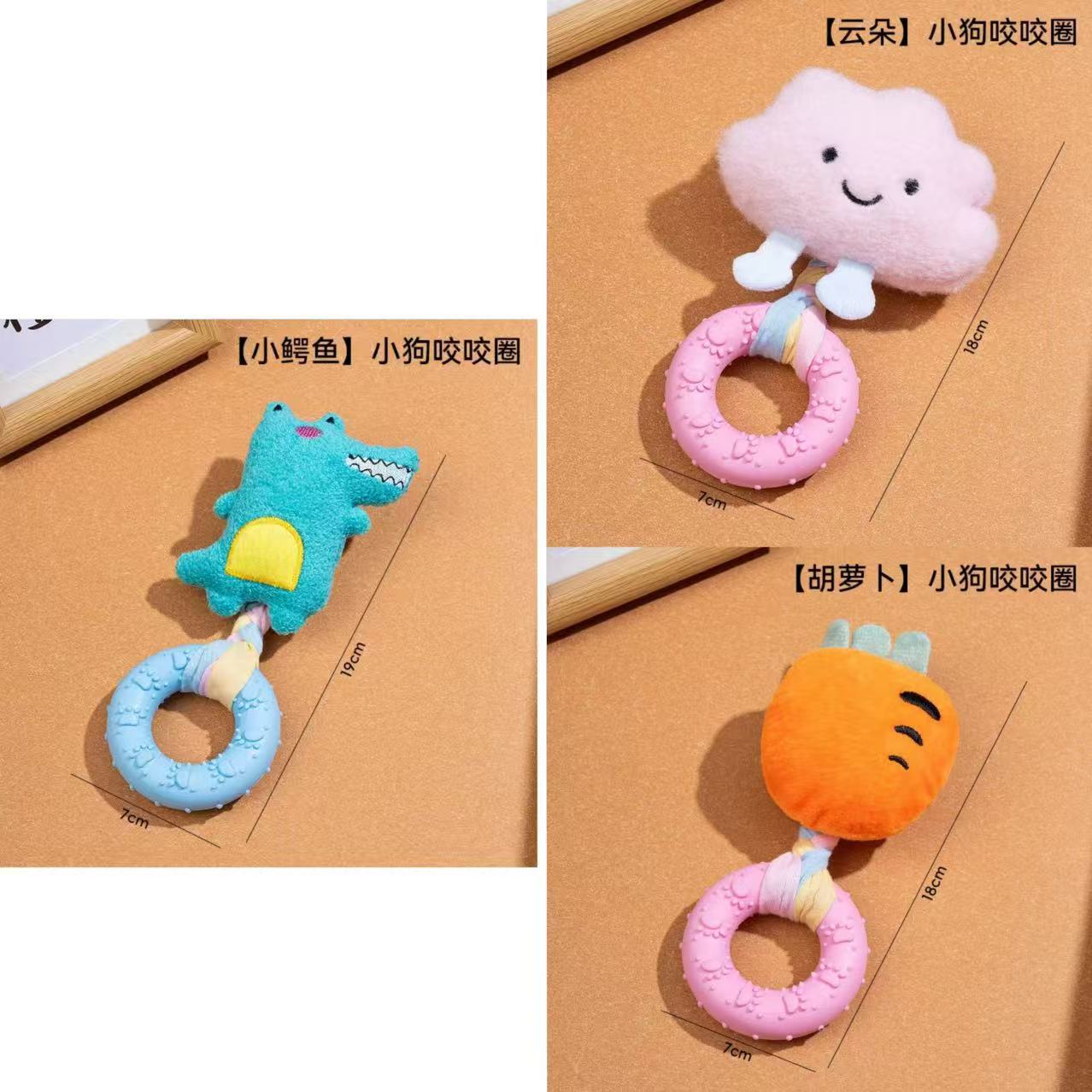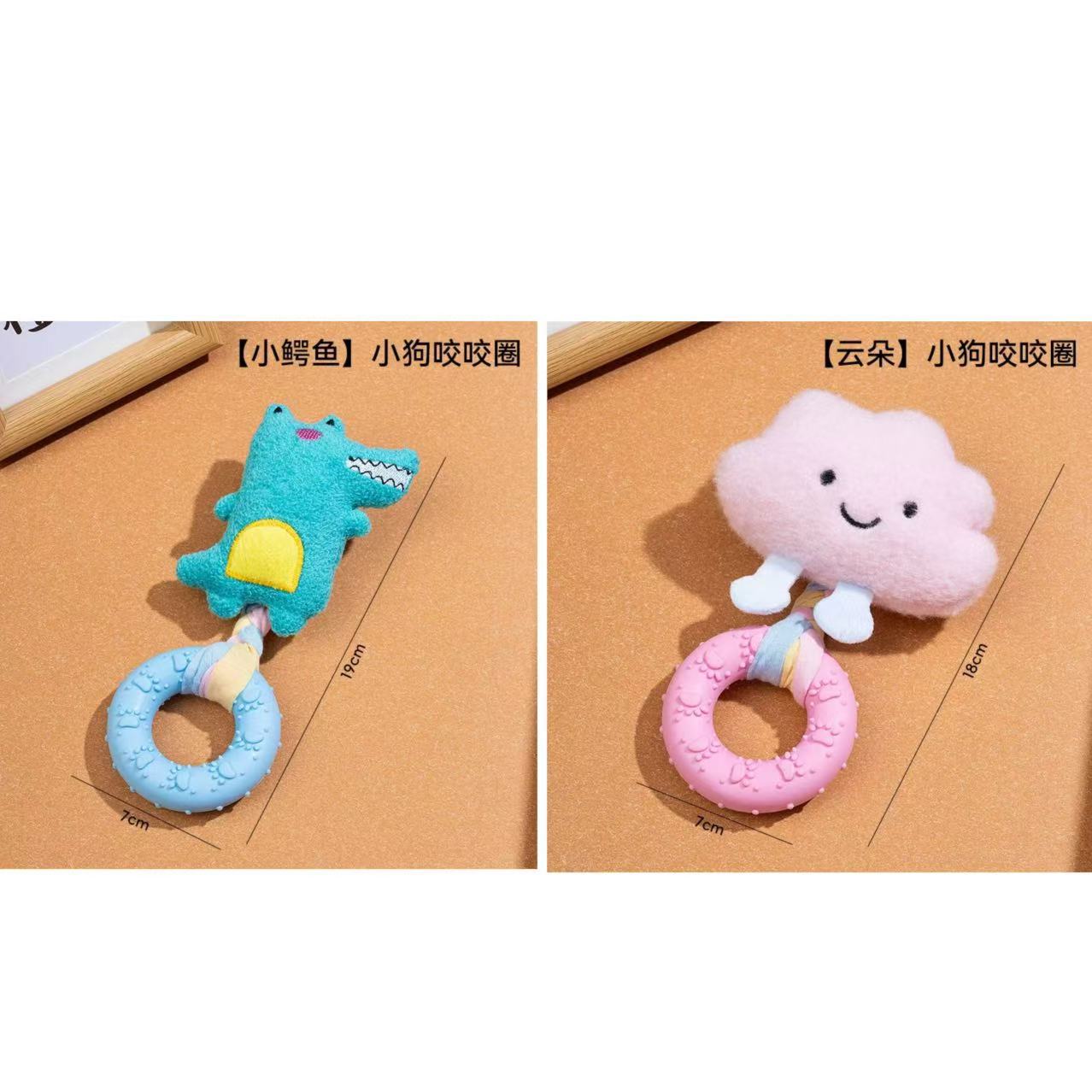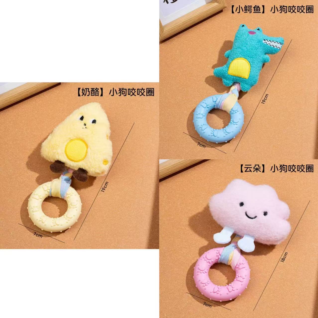 新款小狗狗玩具发声玩偶 布条TPR咬胶甜甜圈柯基比熊自嗨解闷玩具