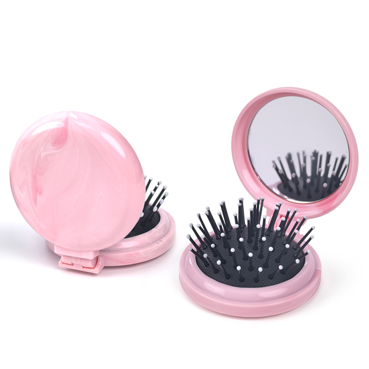 便携圆形带镜子口袋梳美发折叠镜梳塑料气垫按摩梳子翻盖式折叠梳