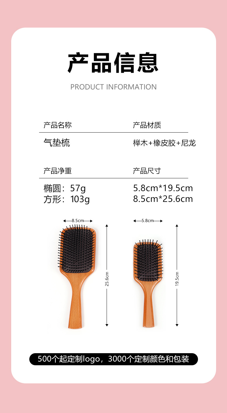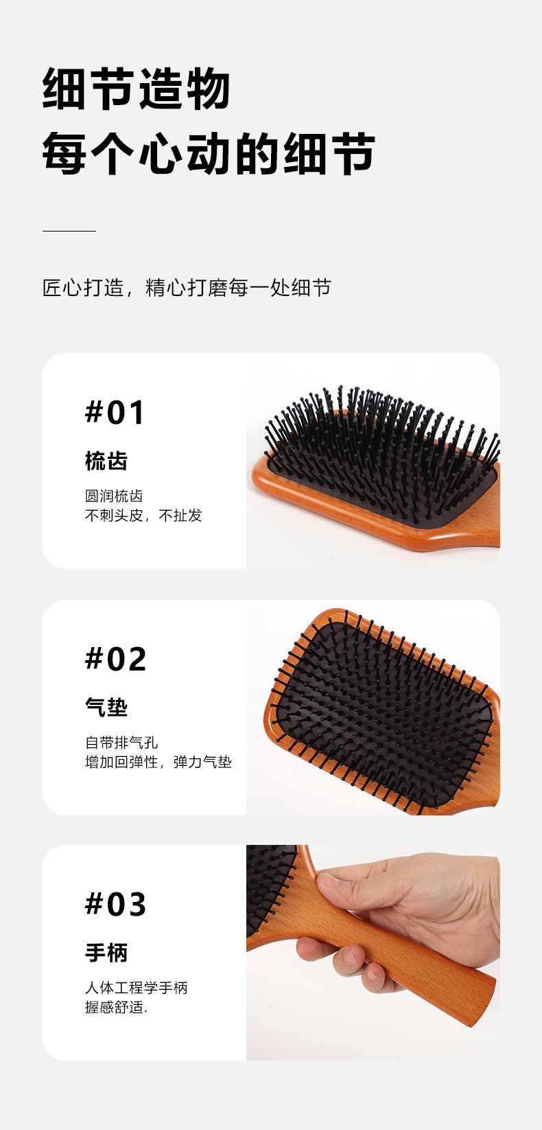 艾凡达同款气囊梳榉木头皮按摩气垫梳蓬松高颅顶造型梳木质美发梳
