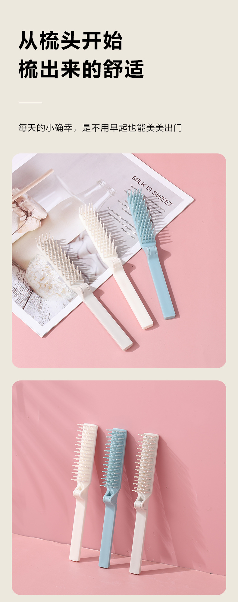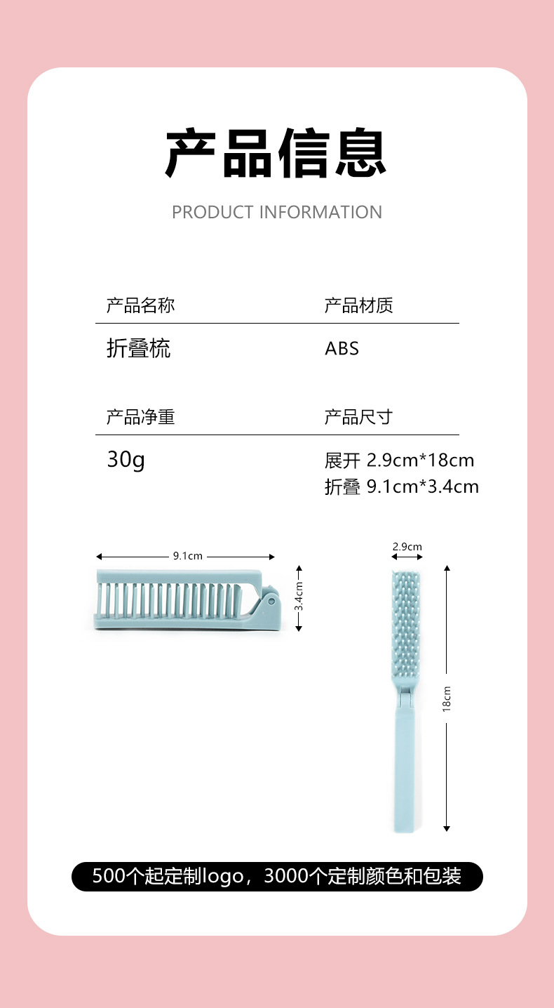 智雅欧尼同款便携式折叠梳女士编发密齿刘海随身迷你旅行折叠梳子