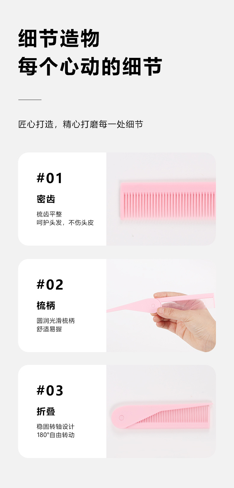 折叠梳蓬松刘海梳定型便携随身梳子多功能疏密齿旅游包包梳油头梳