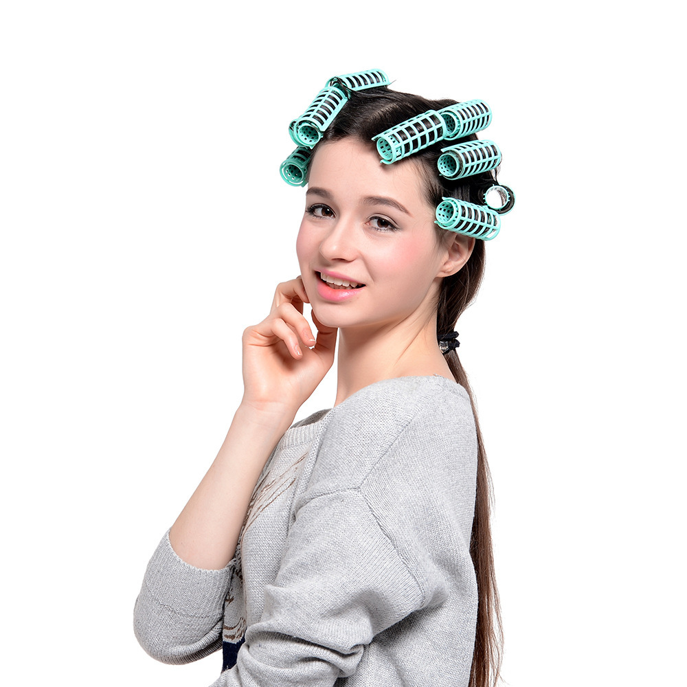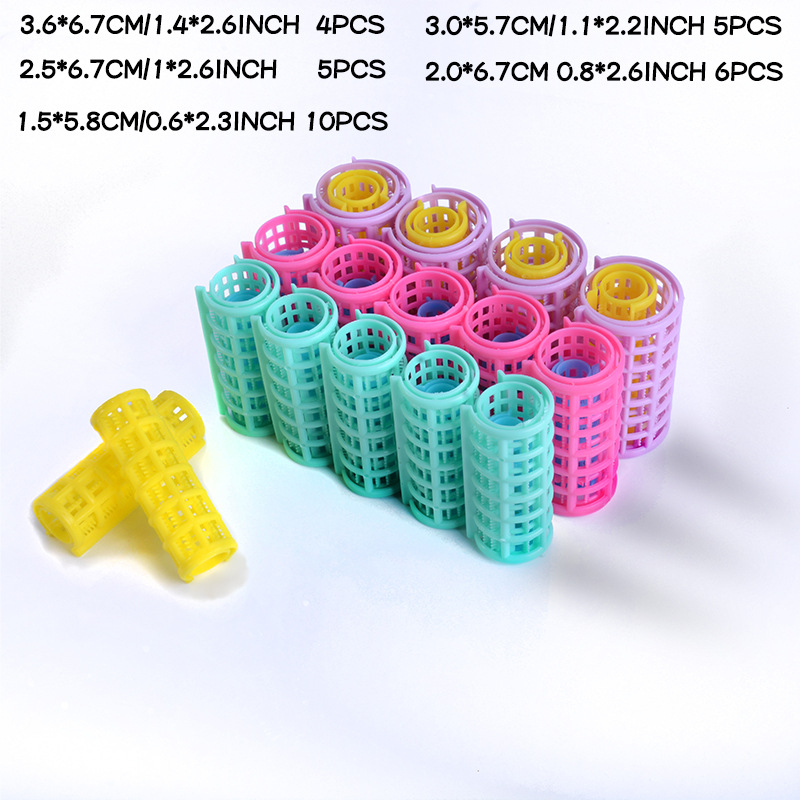 跨境热销带齿双层卷发筒套装 子母扣刘海蓬松定型塑料卷发器