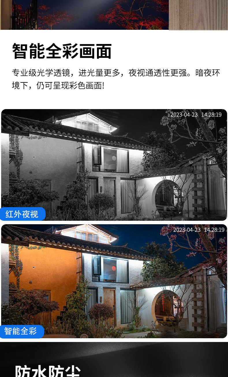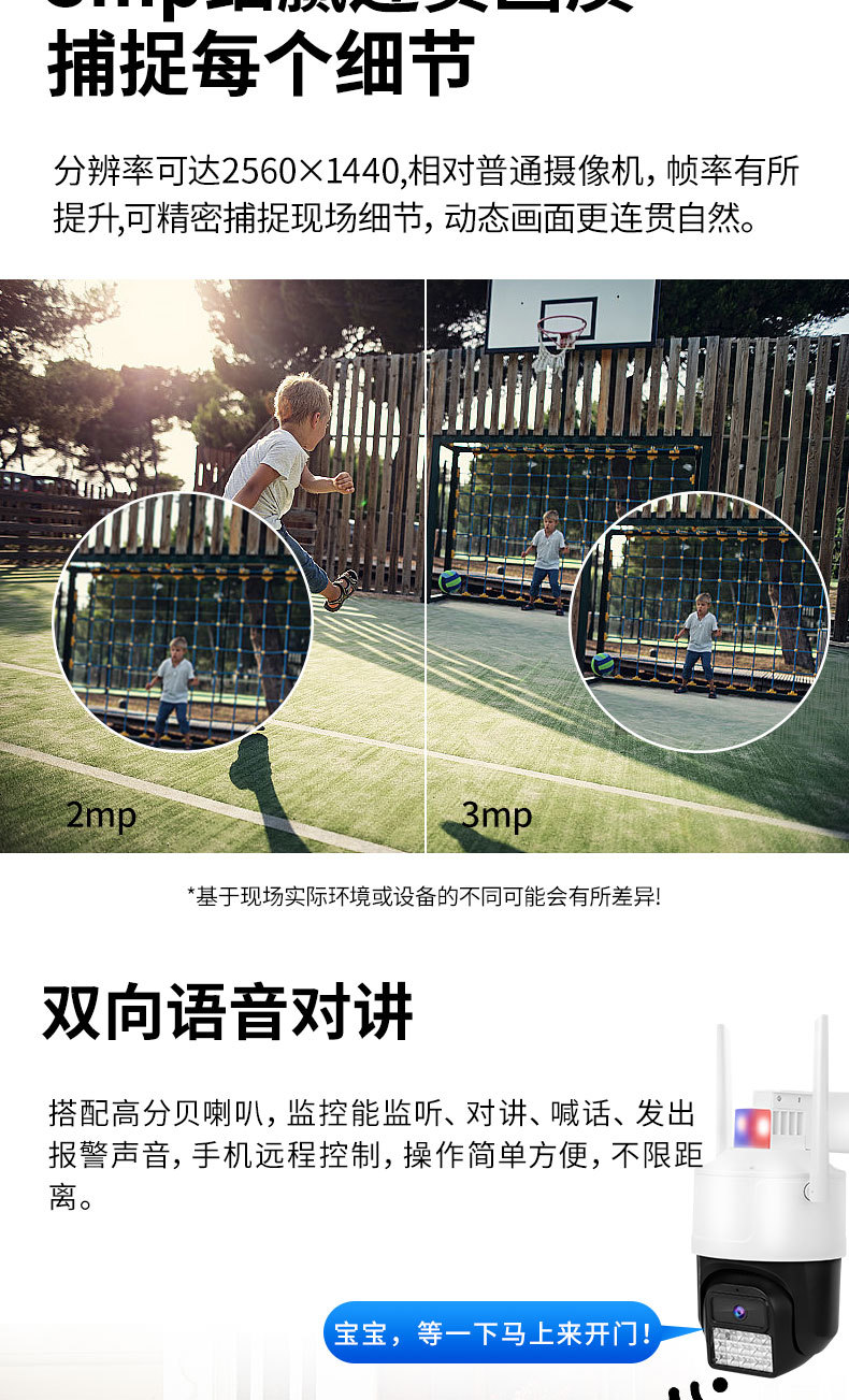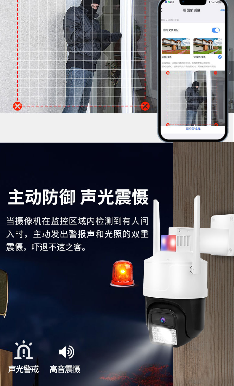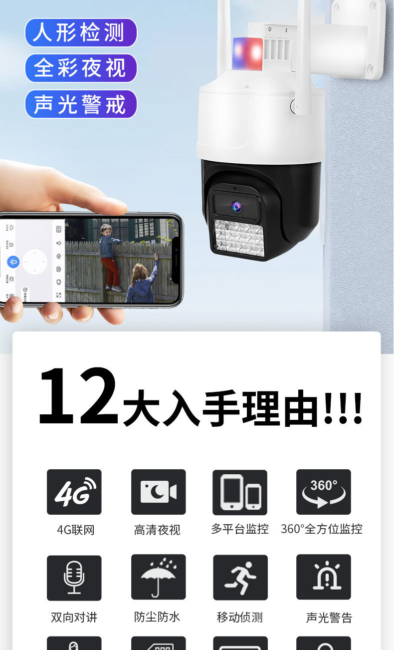 无线wifi家用室外双摄像头监控器360度全景无死角监控高清夜视4g