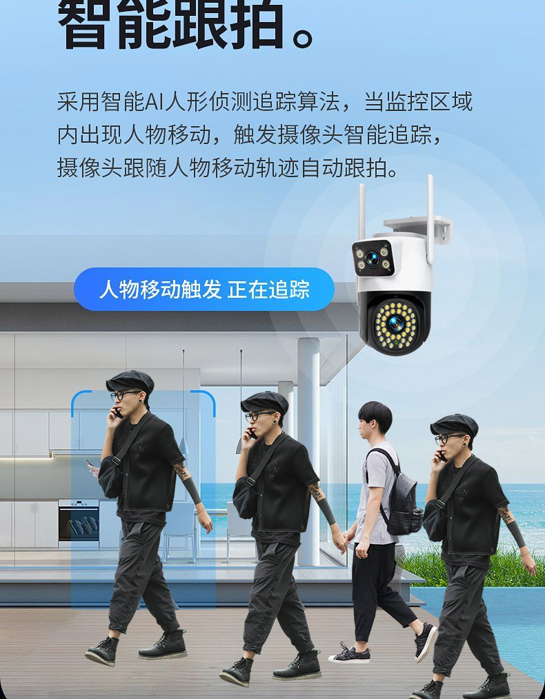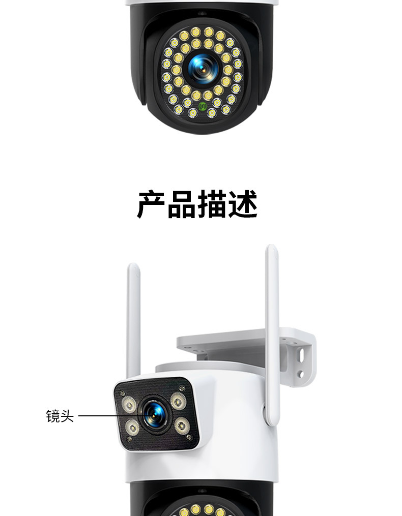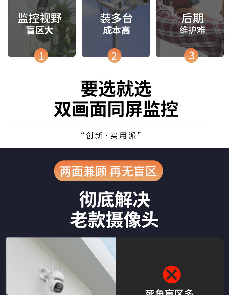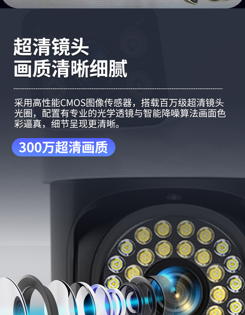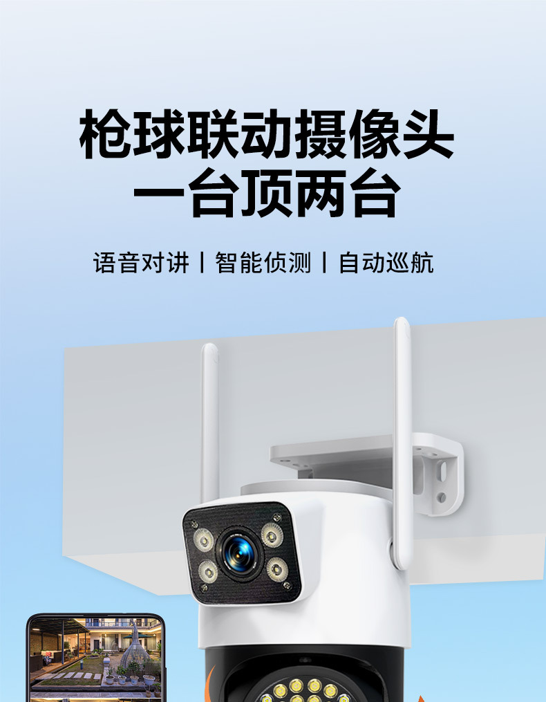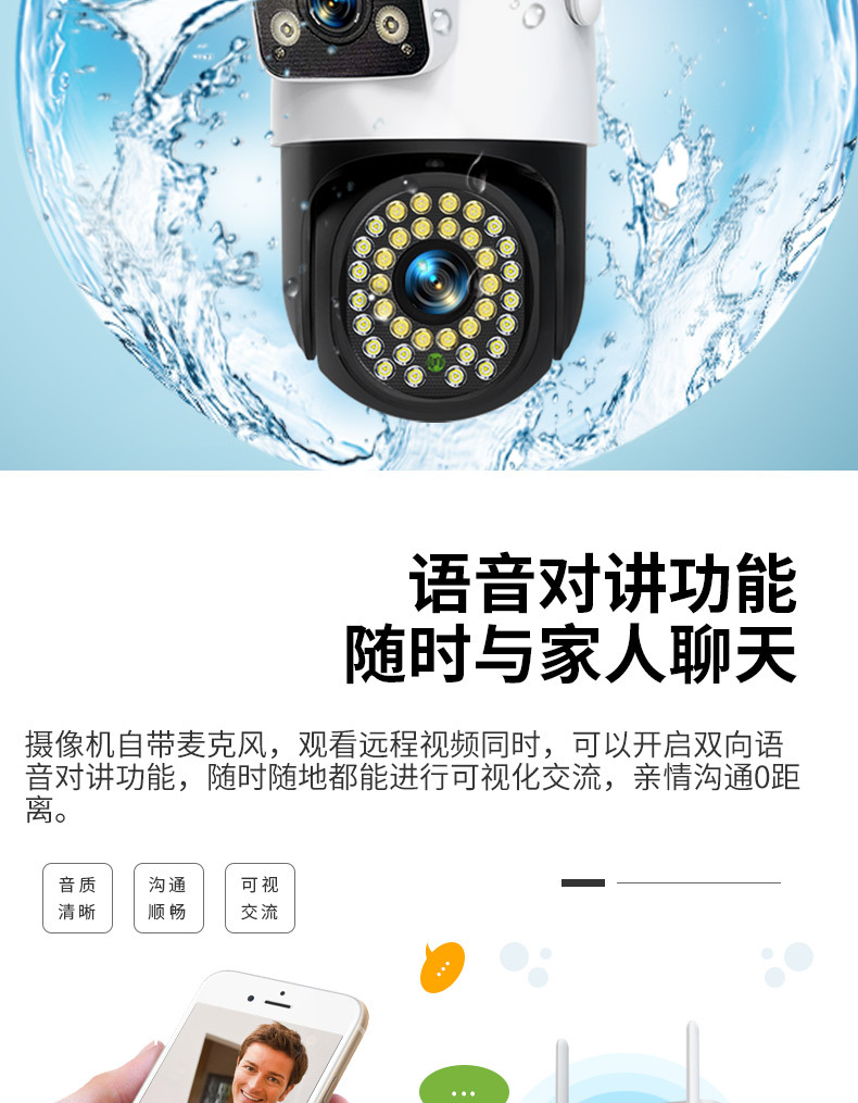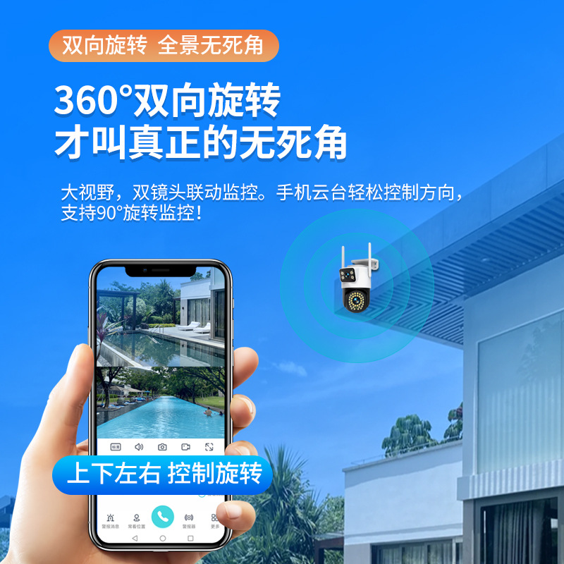 双目摄像头夜视监控器wifi远程全景防水智能监控监控摄像头高清