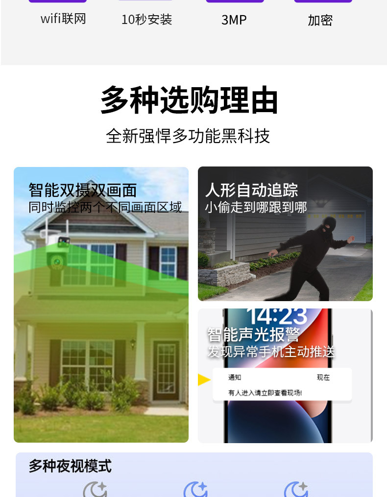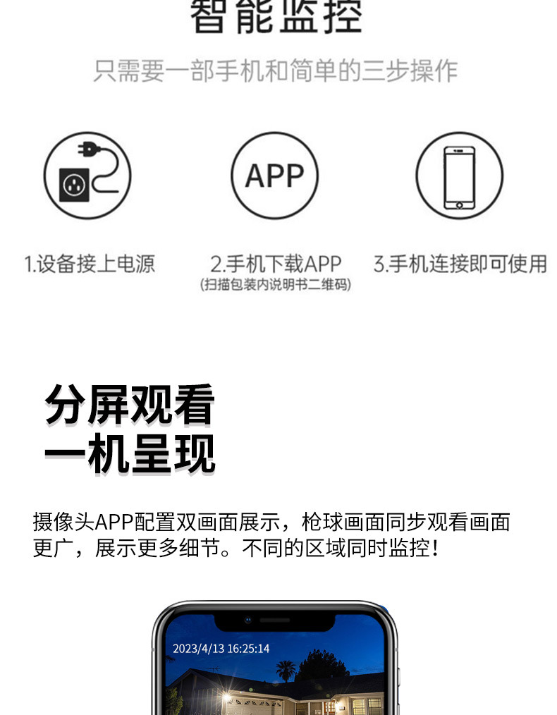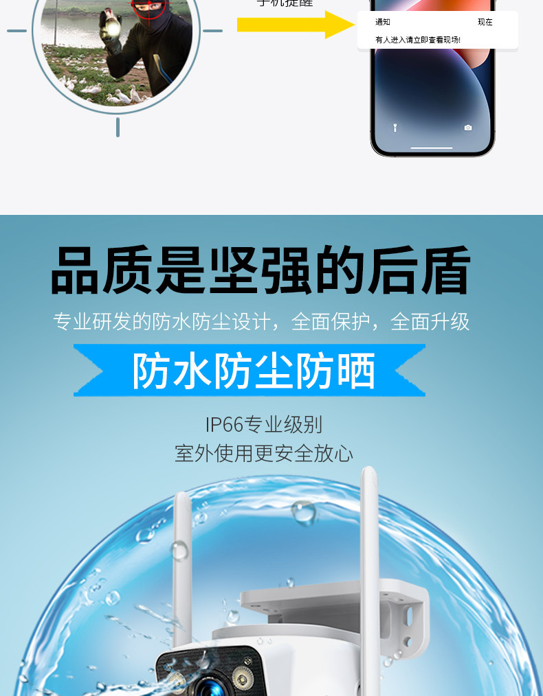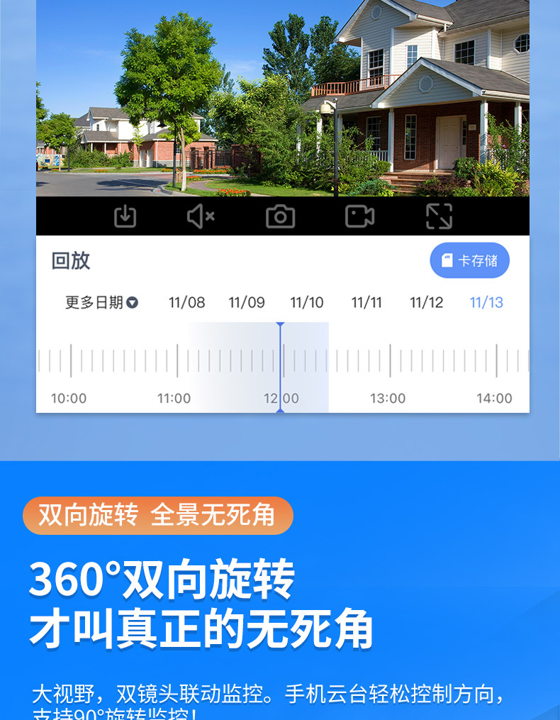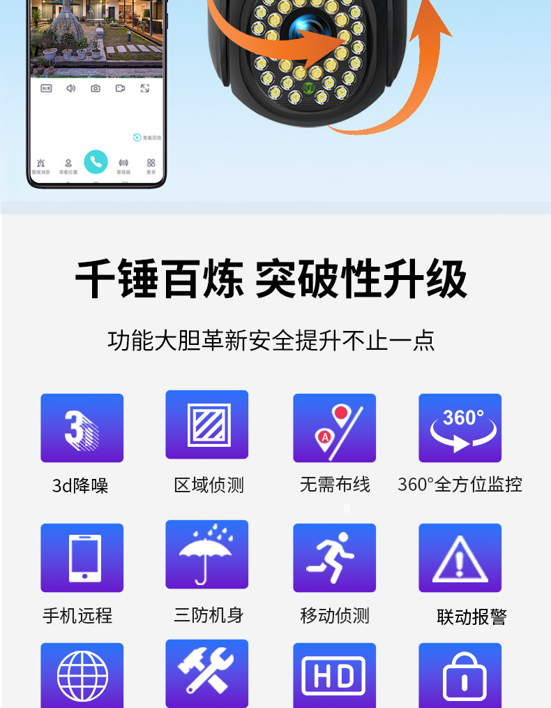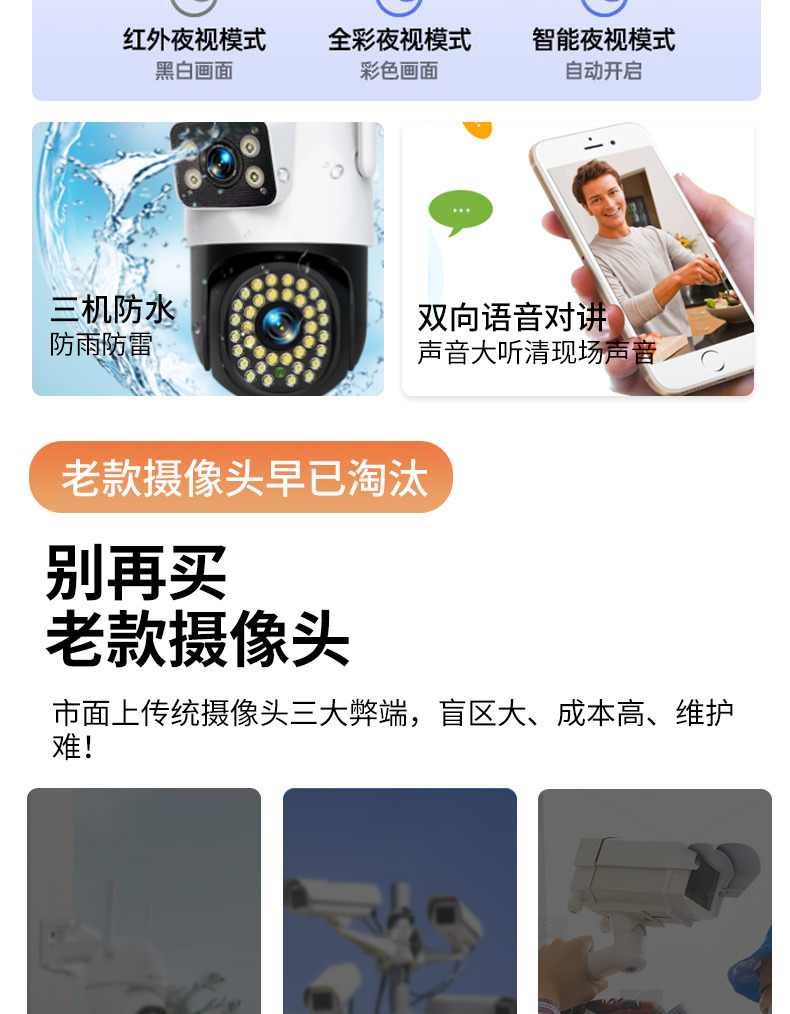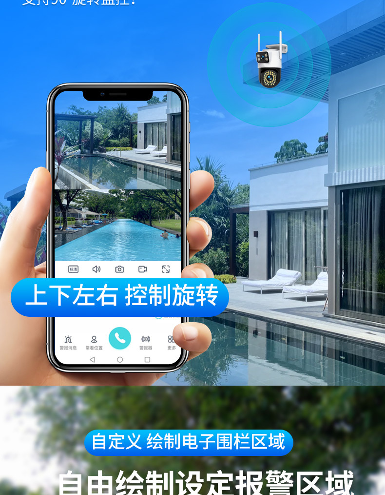 双目摄像头夜视监控器wifi远程全景防水智能监控监控摄像头高清