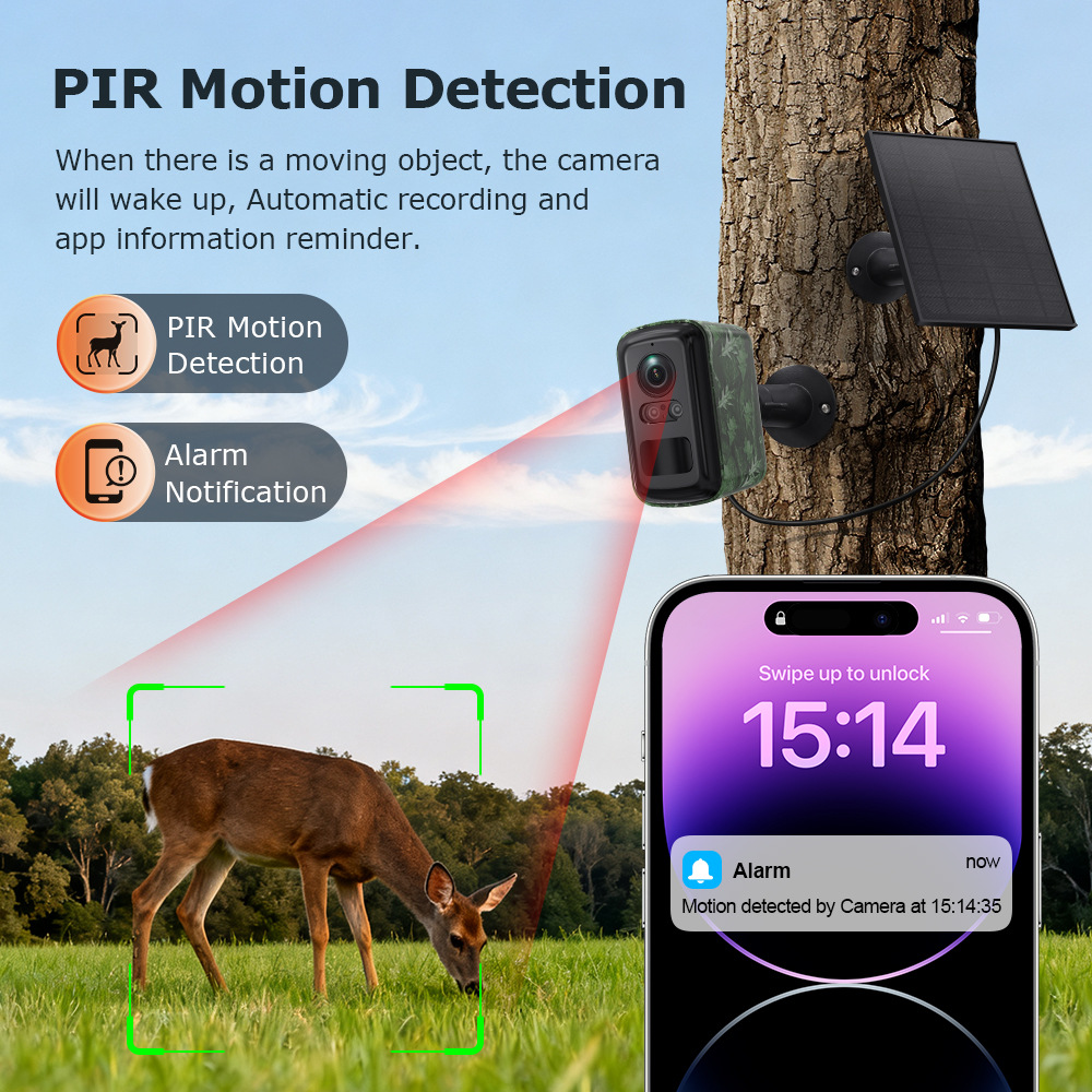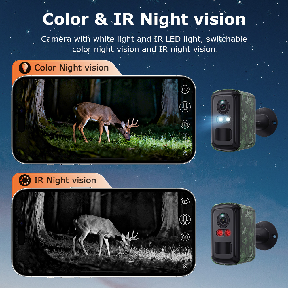 新品迷彩低功耗电池摄像机全彩夜视室内室外监控高清wifi摄像头