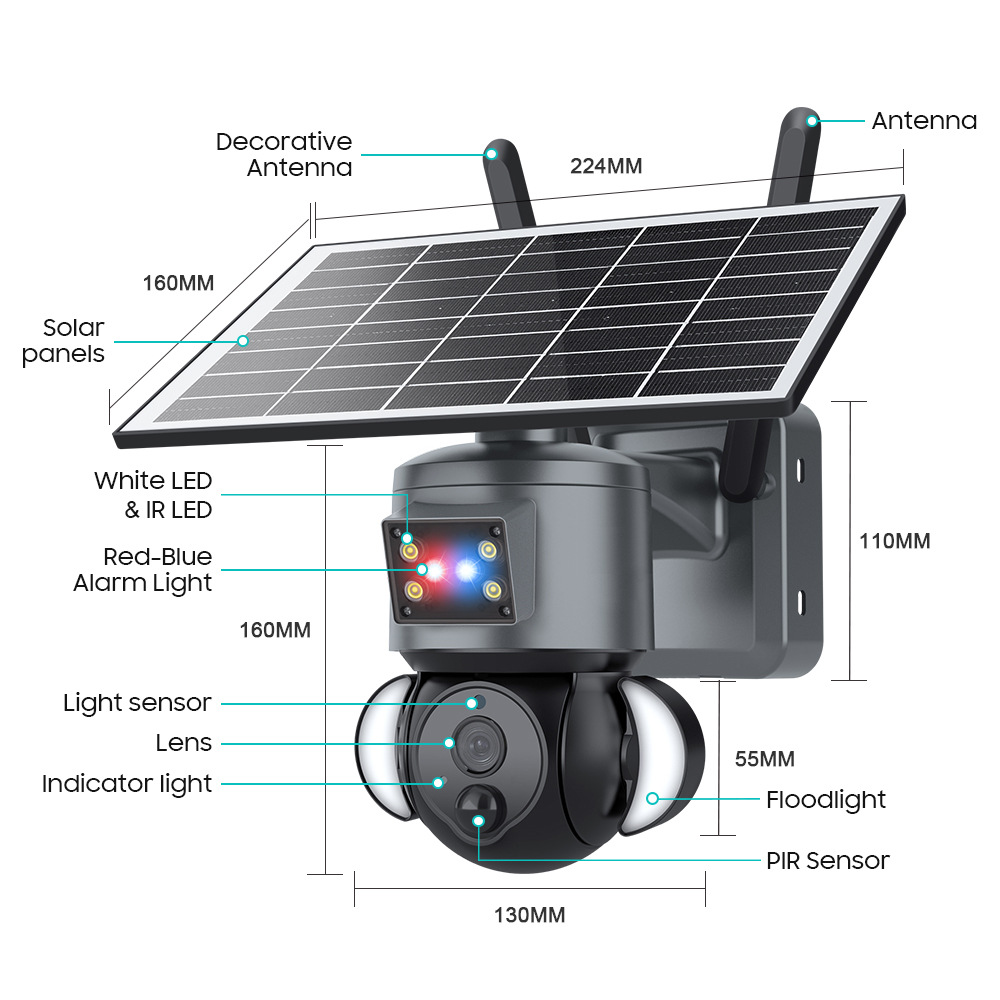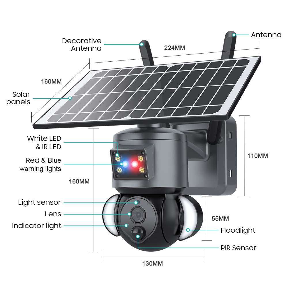 跨境专供跨境枪球太阳能摄像头 2K 300万高清夜视红外监控摄像头