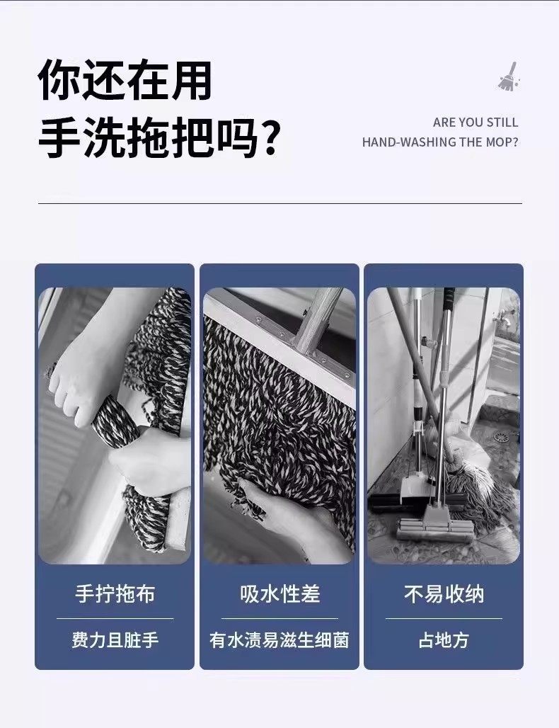 家用自拧水拖把 旋转拖把一拖净 免手洗干湿两用懒人吸水墩布