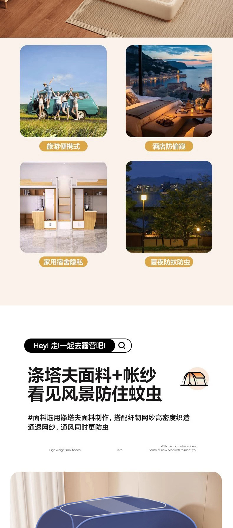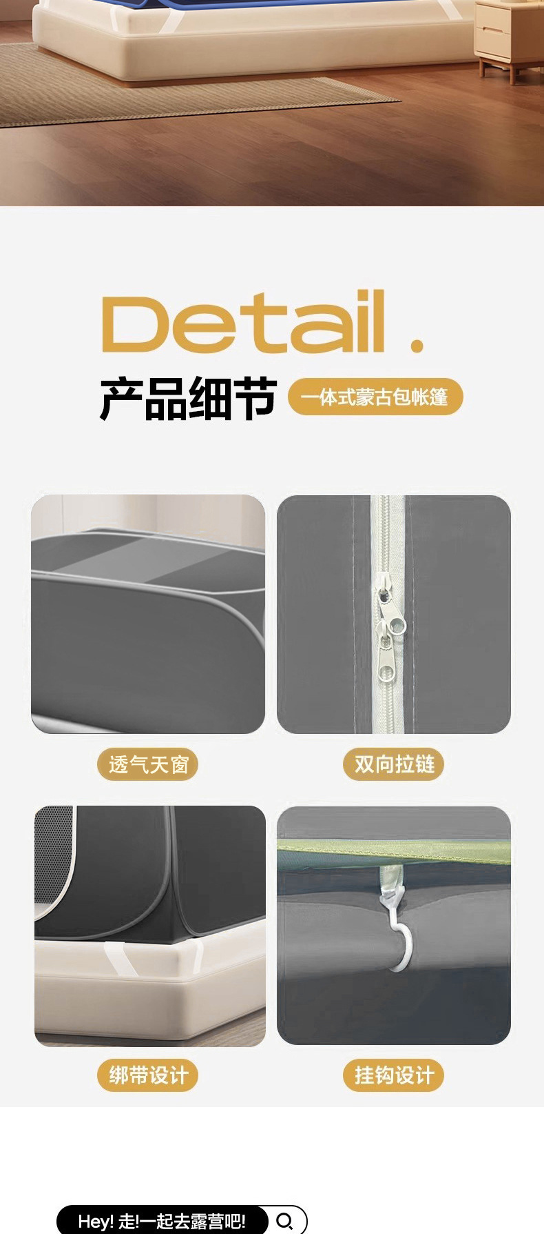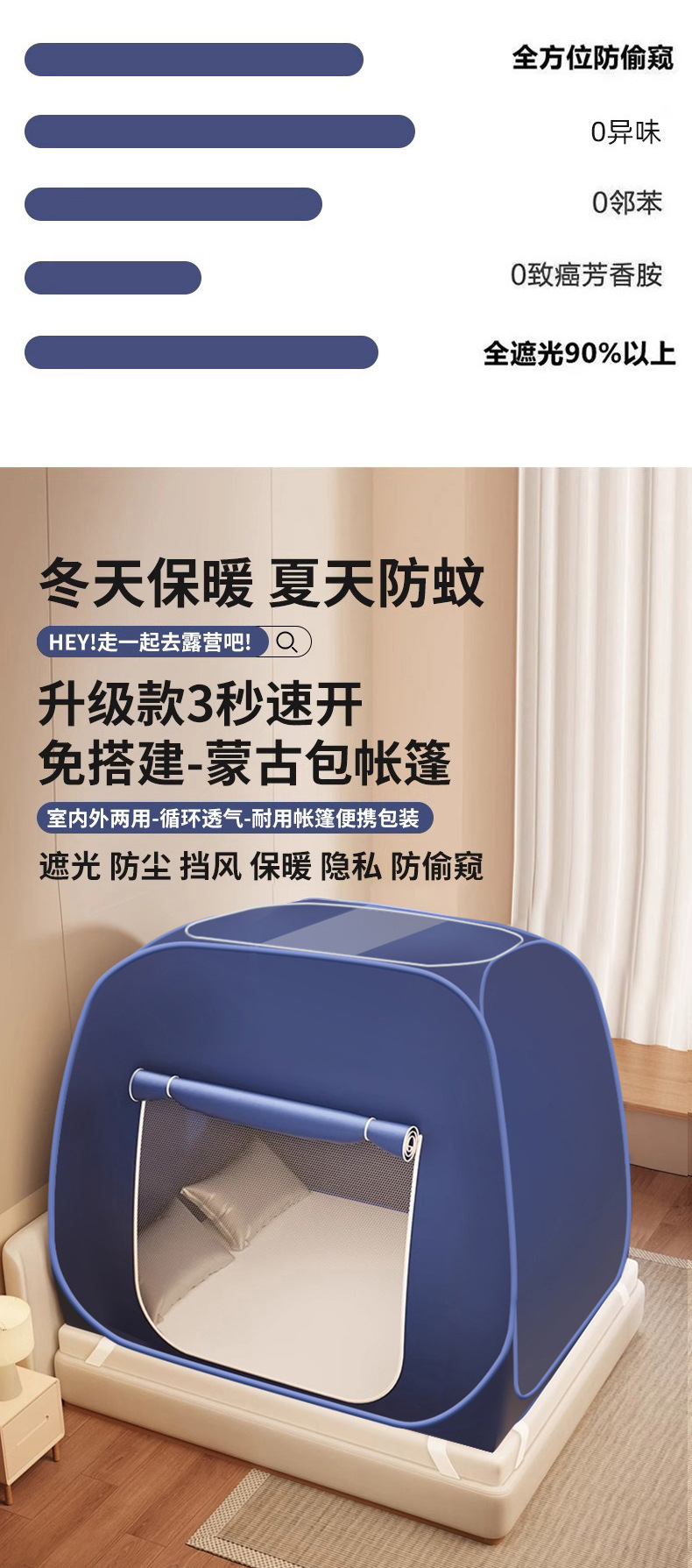 哇噢定 制便携酒店防窥帐防寒室内保暖遮光帐篷 免安装蒙古包蚊帐