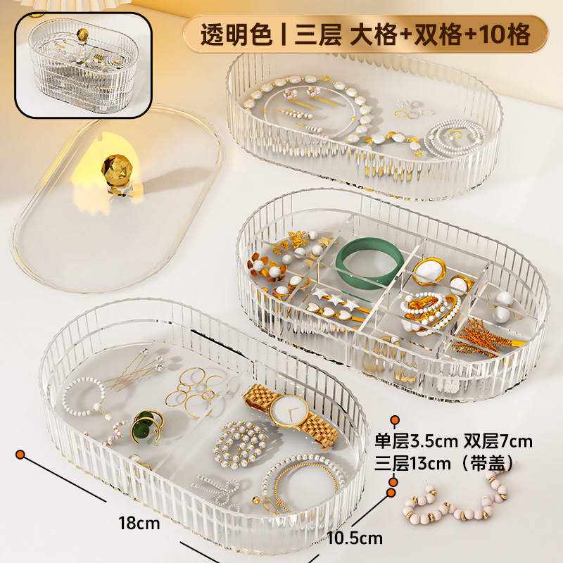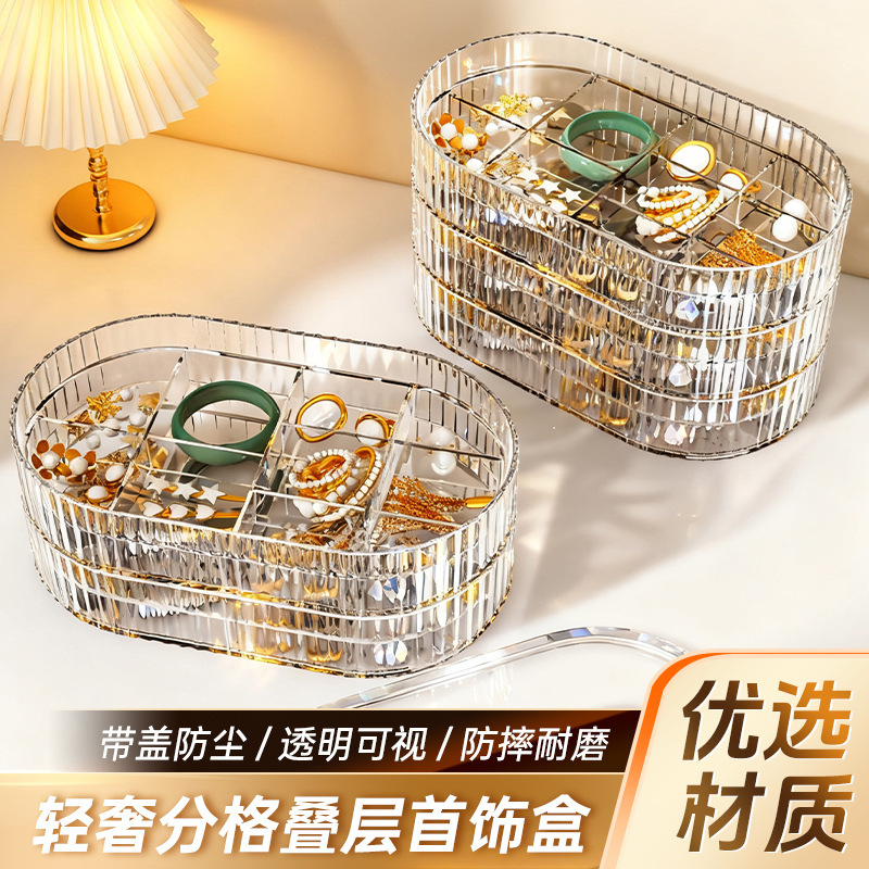 首饰收纳盒带盖子防氧化饰品收纳盒多层大容量透明塑料展示盒