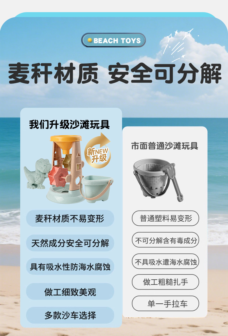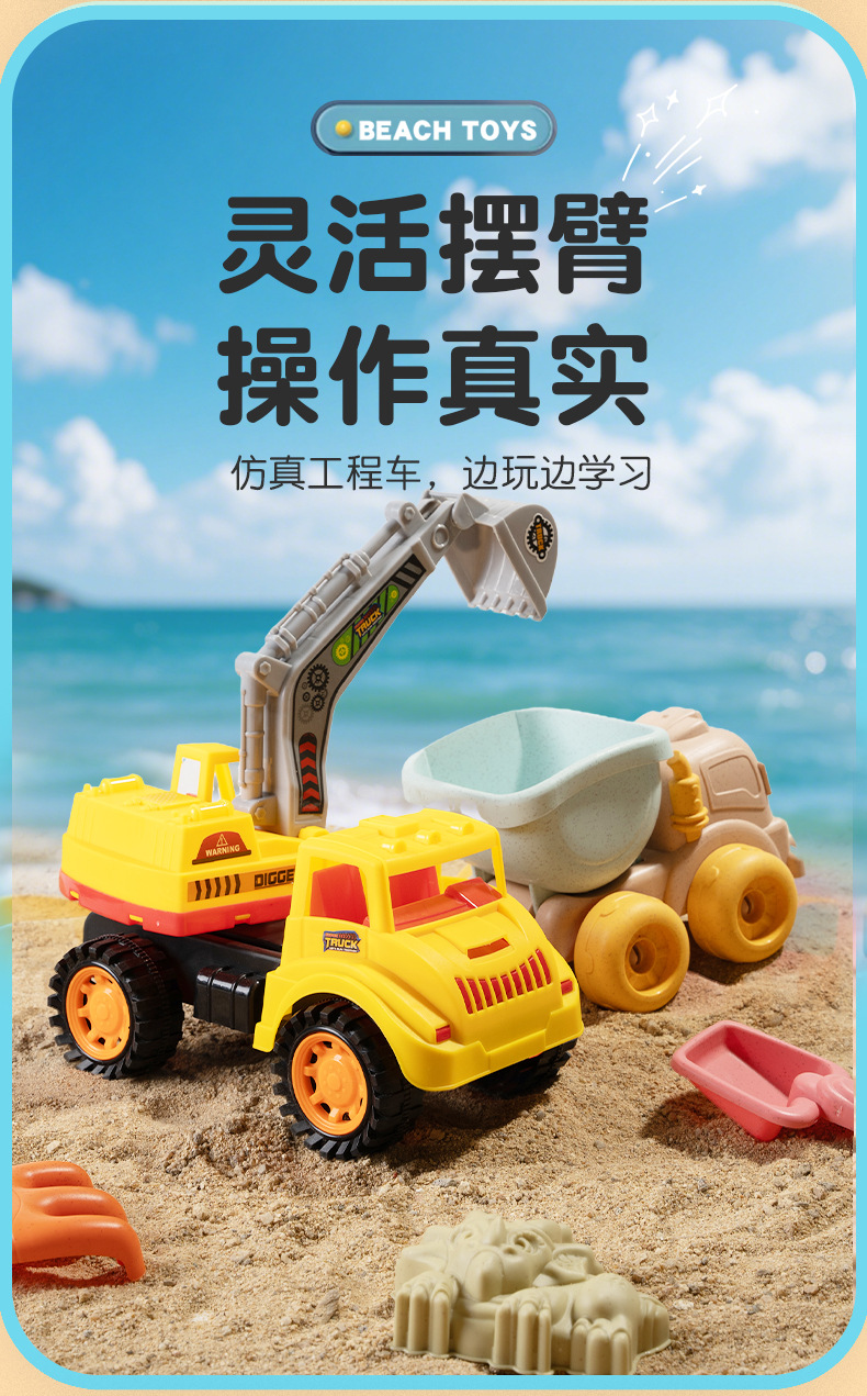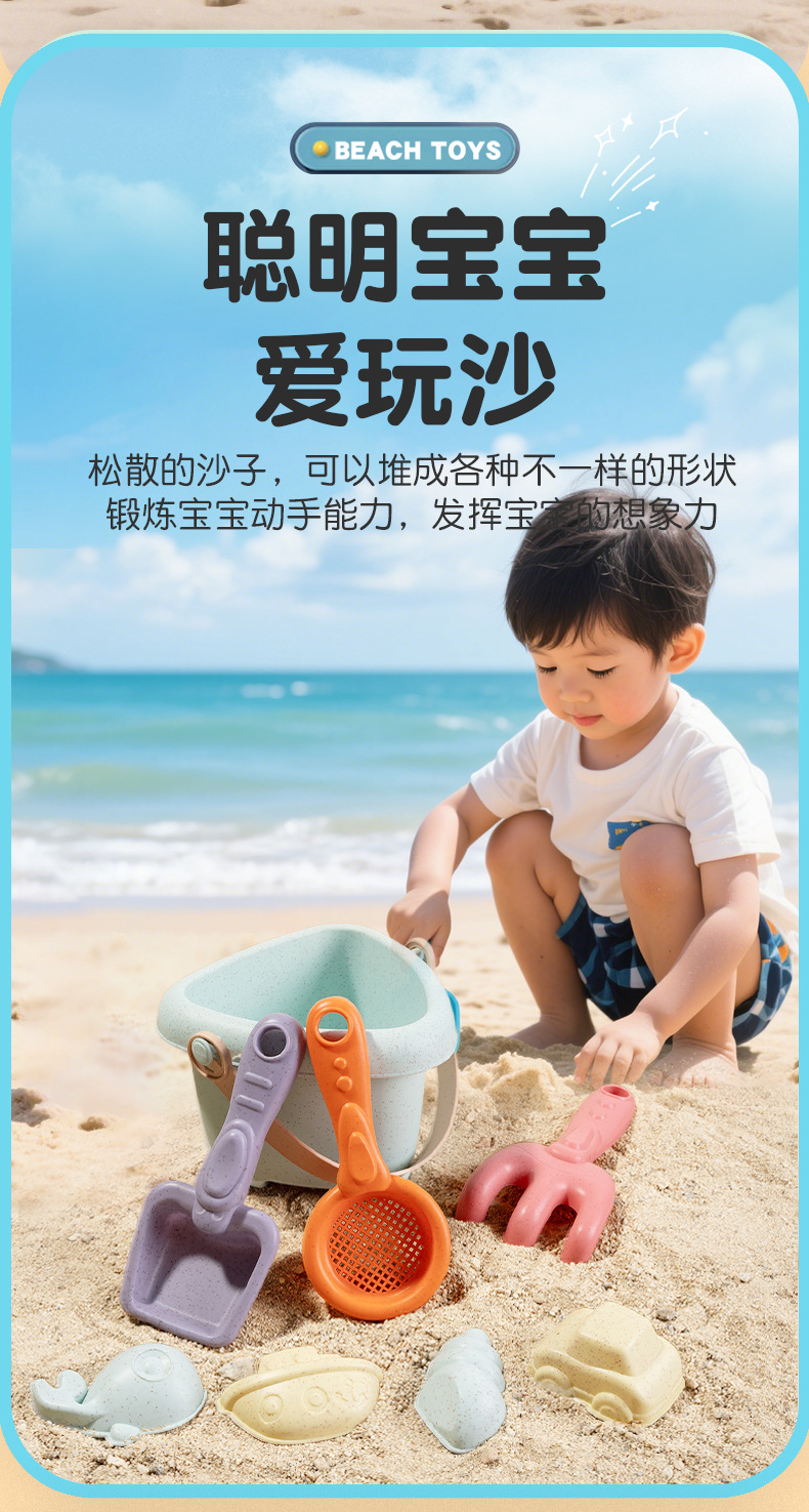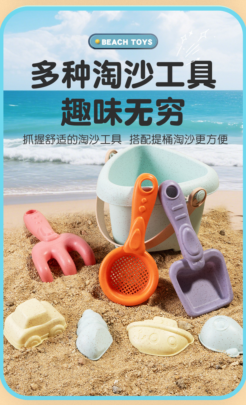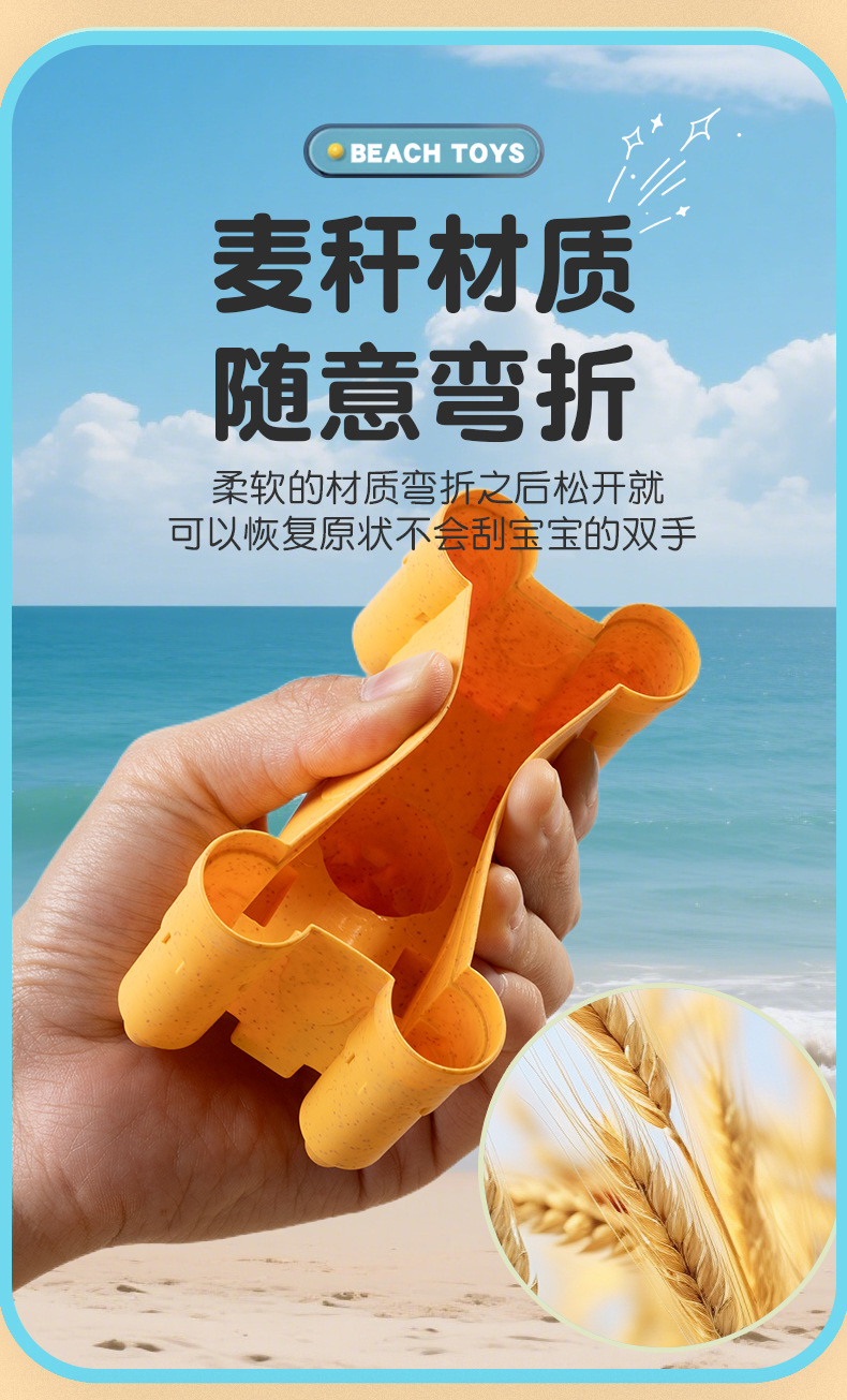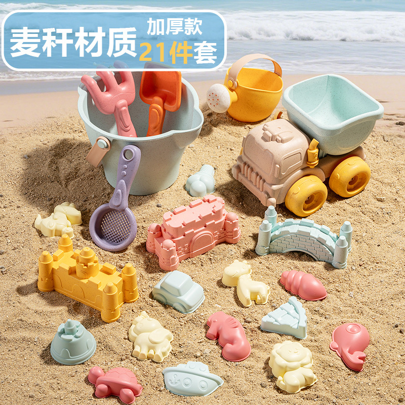 儿童沙滩玩具车宝宝戏水挖沙土工具套装沙漏铲子桶玩沙子麦秆材质