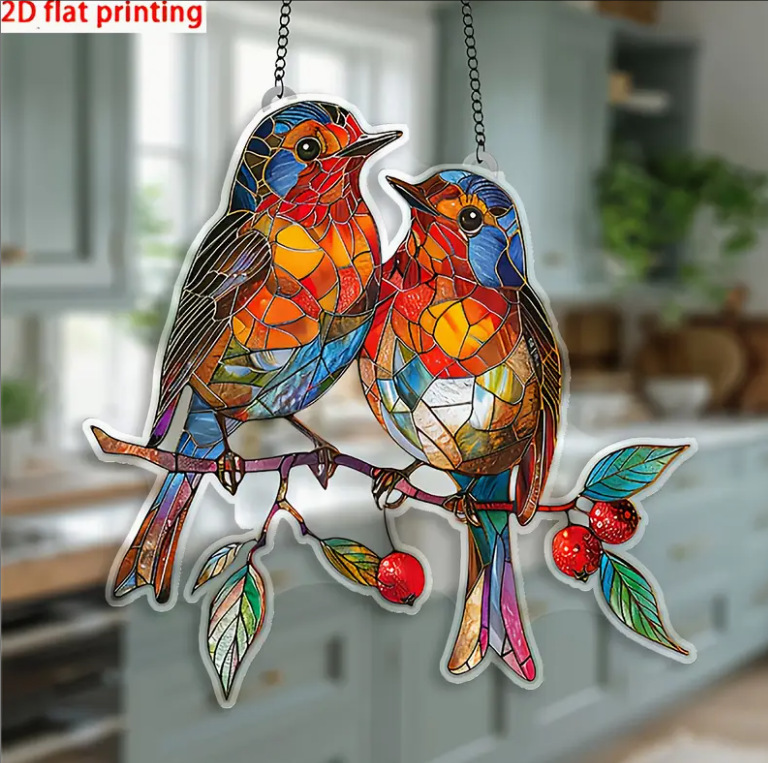 跨境热销漂亮的小鸟亚克力客厅庭院挂件节日场景装饰挂件礼物挂饰