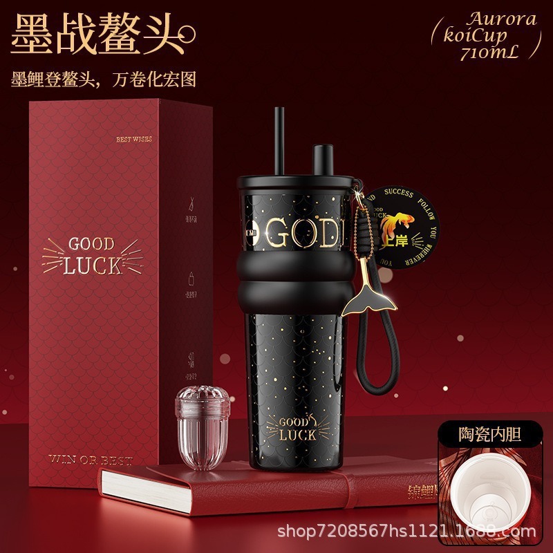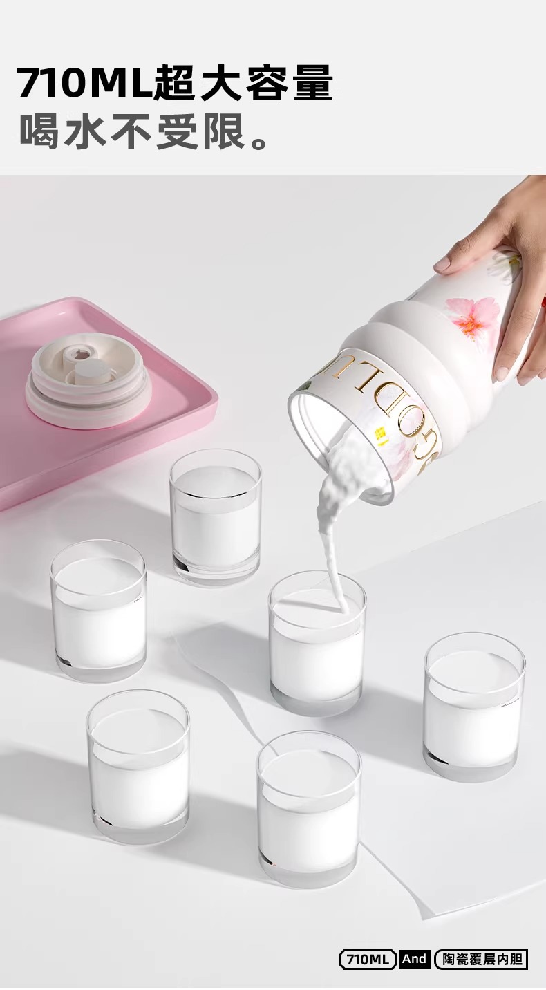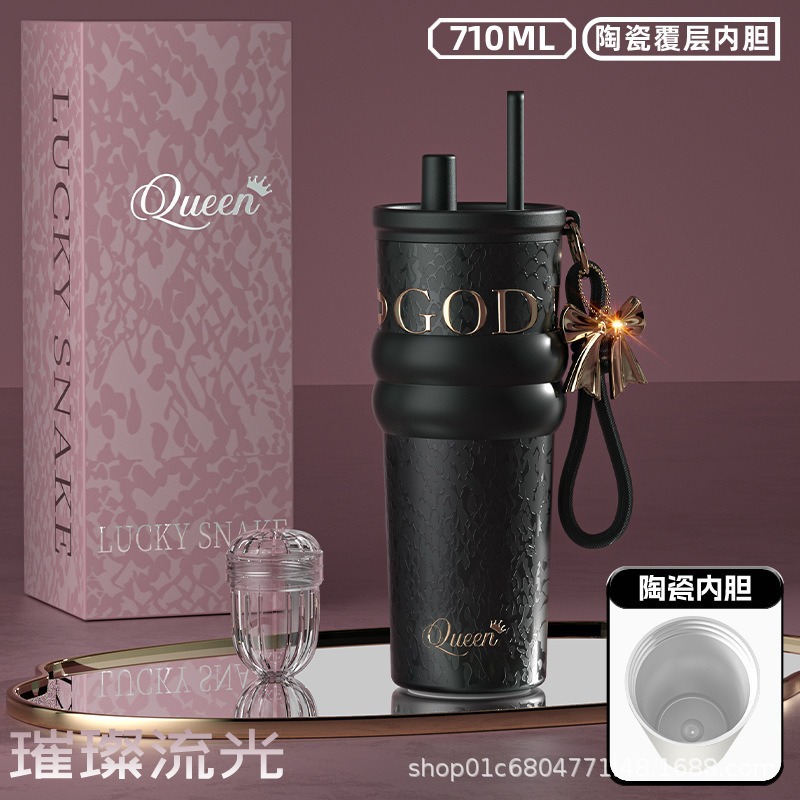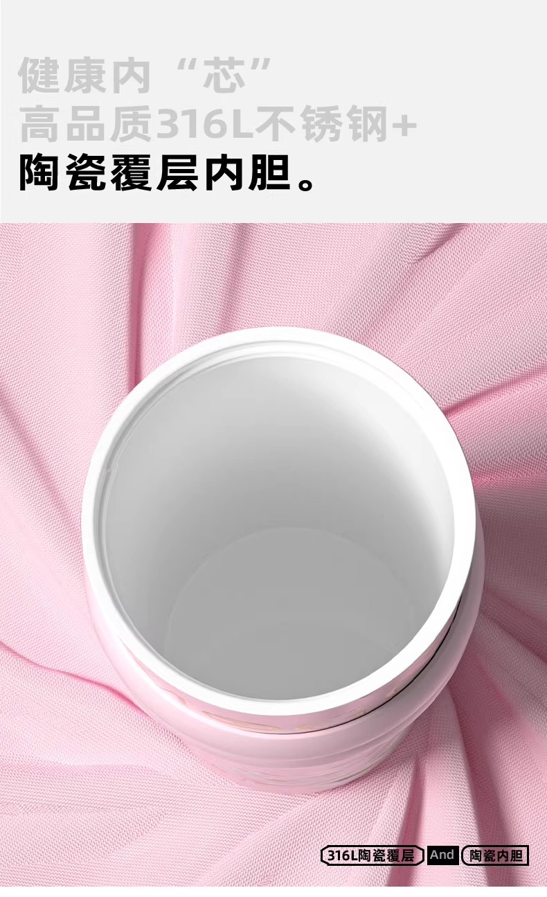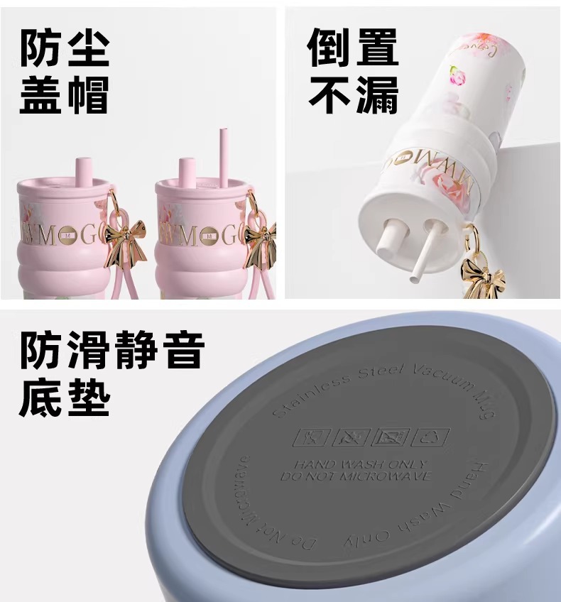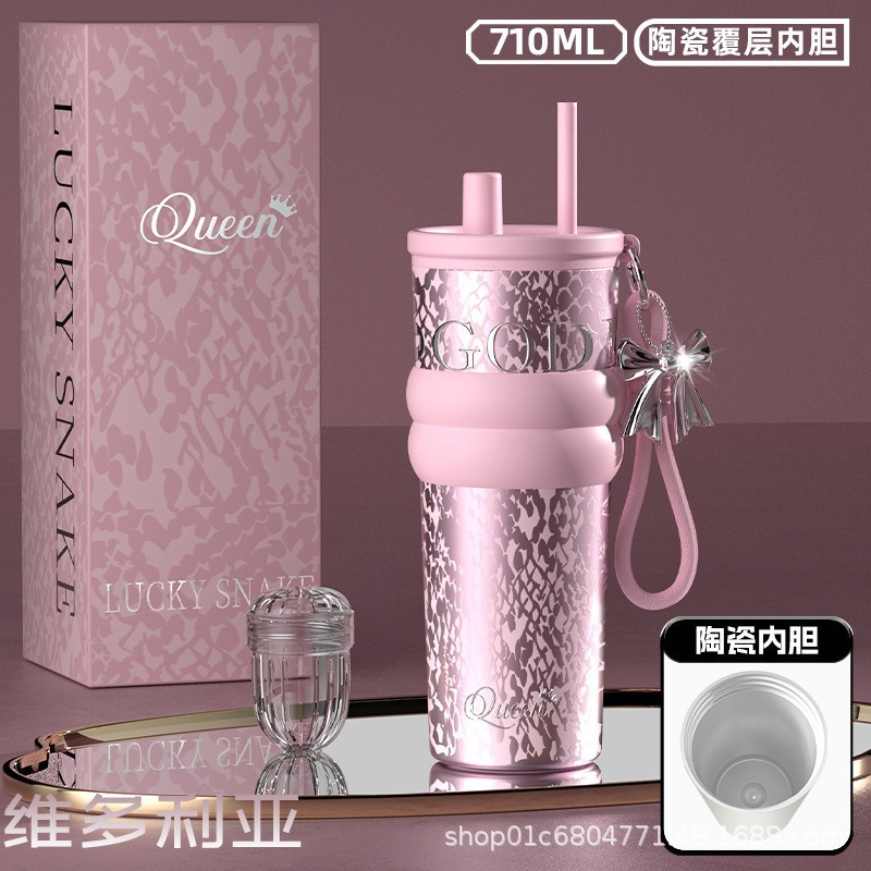 繁花高颜值吸管保温杯大容量女生外出便携杯子车载陶瓷内胆水杯