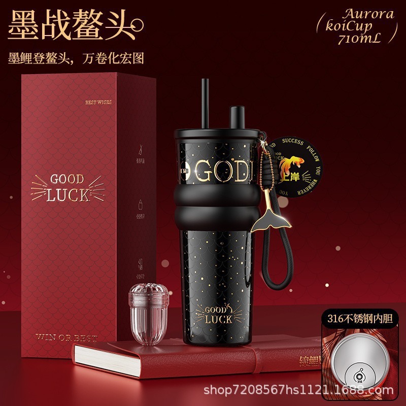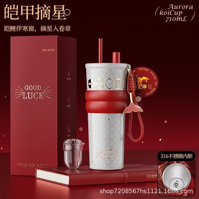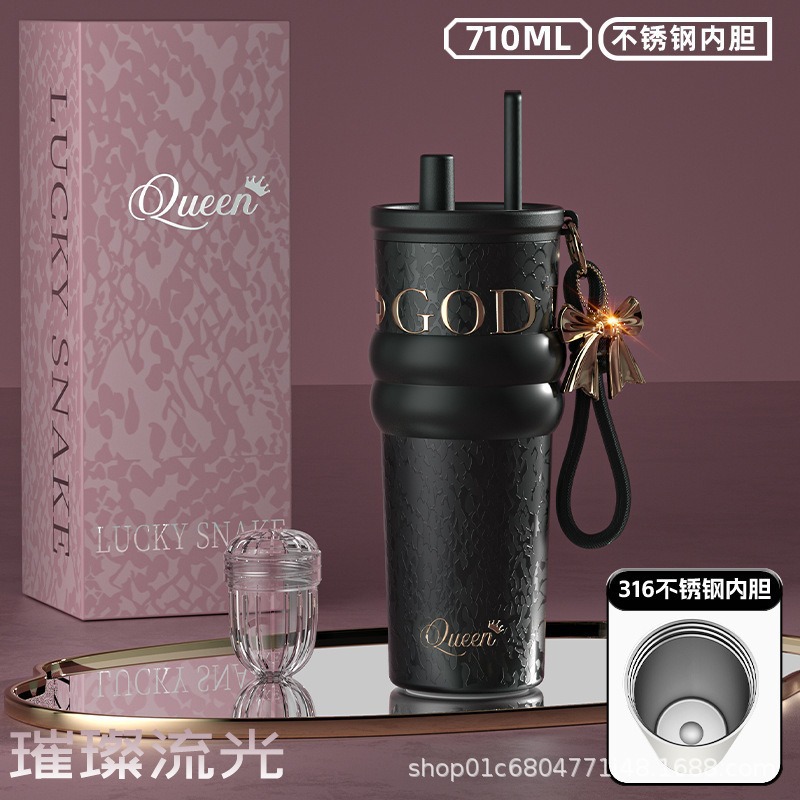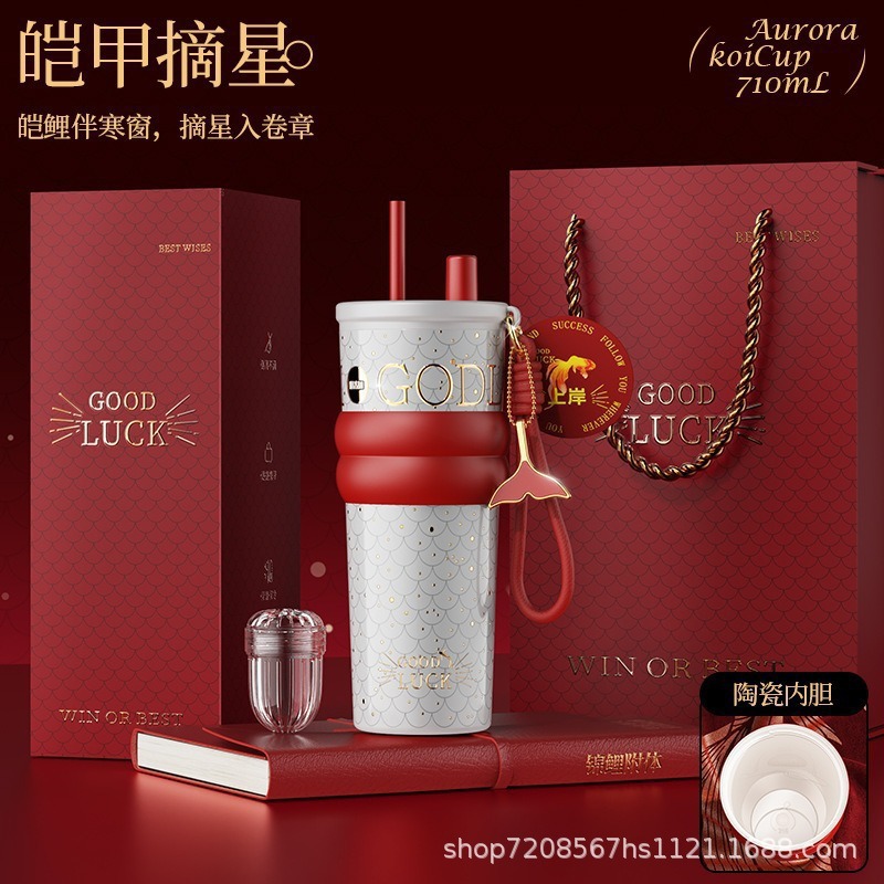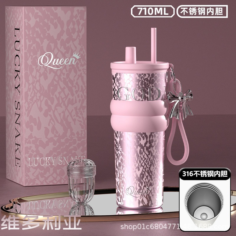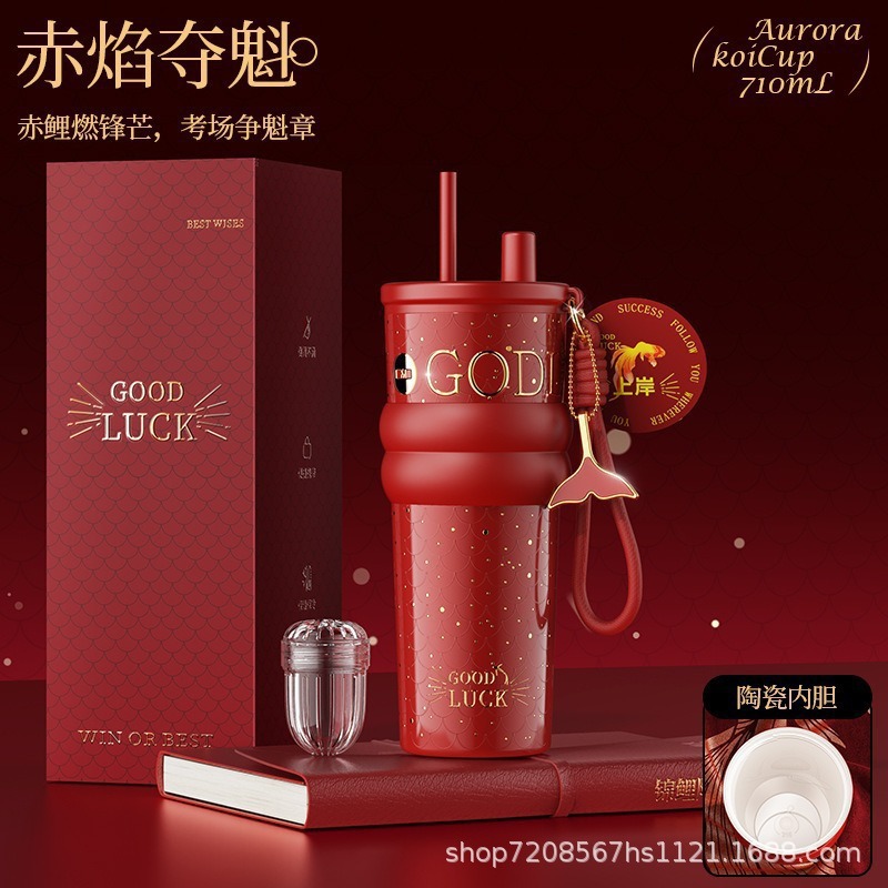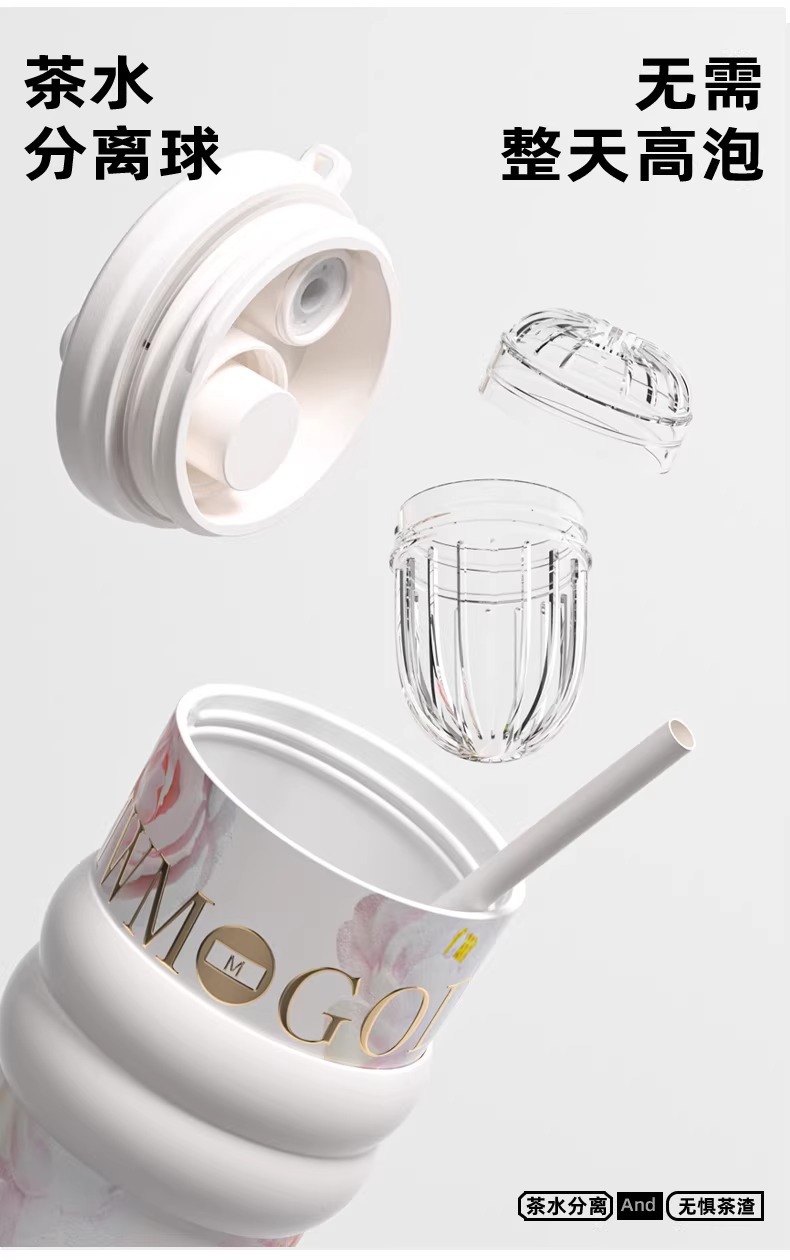 繁花高颜值吸管保温杯大容量女生外出便携杯子车载陶瓷内胆水杯