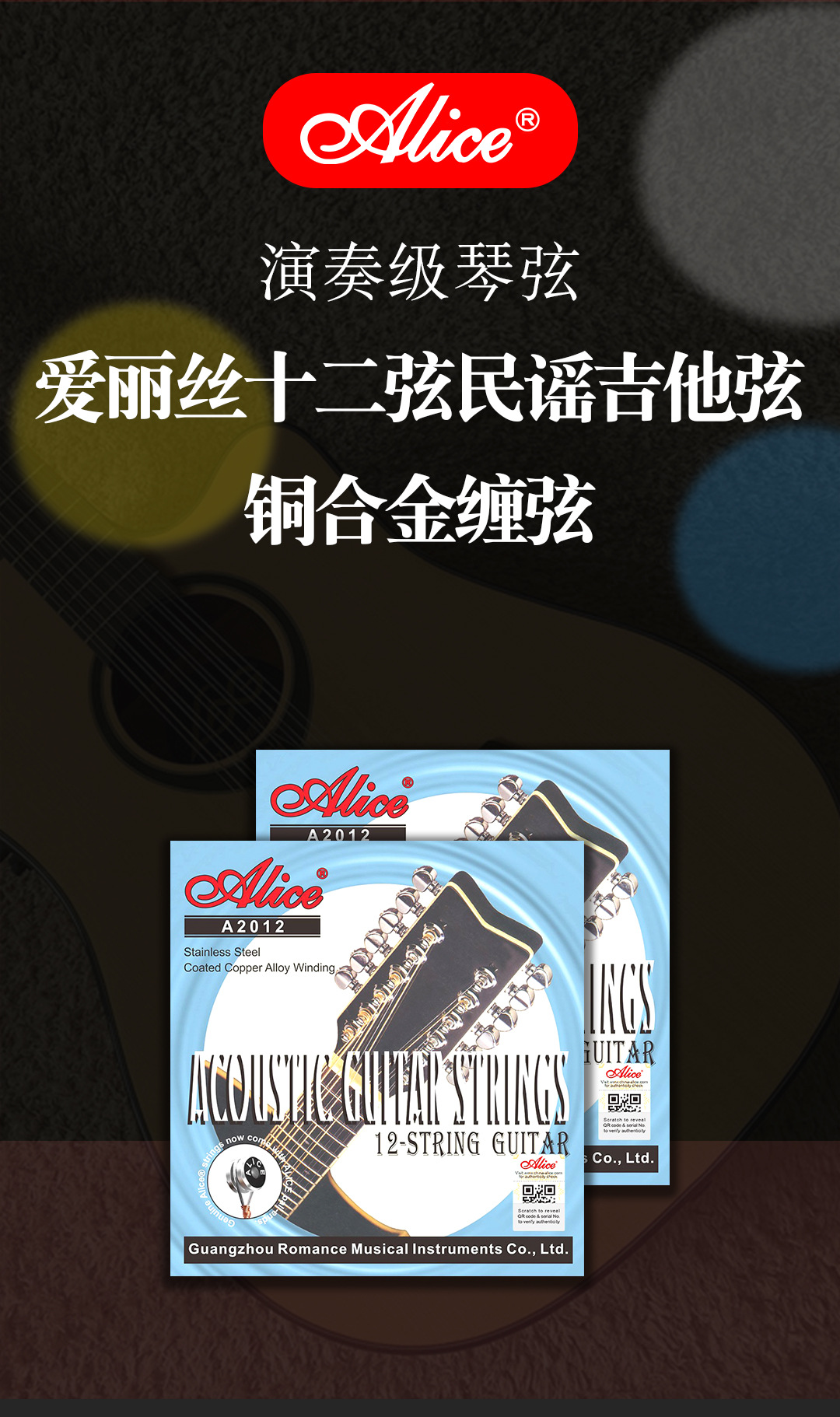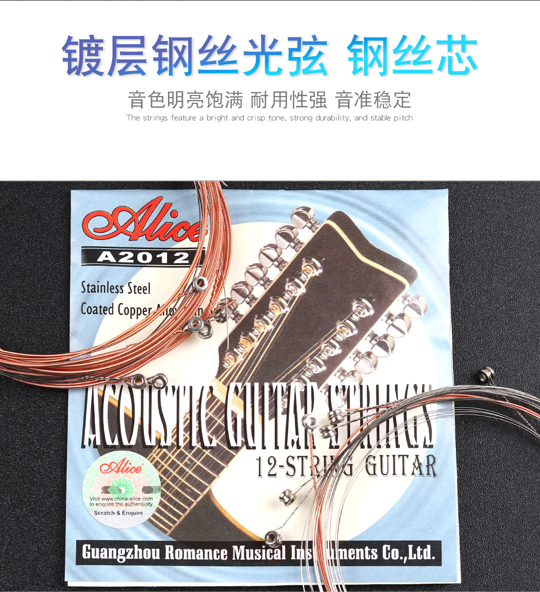 爱丽丝12弦民谣吉他木吉他弦A2012十二弦民谣吉他弦套装琴弦Alice