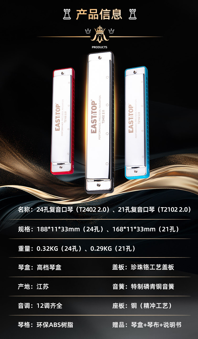东方鼎 T2402 2.0 新款嵌入式复音口琴 圆润轻薄 礼品 电商