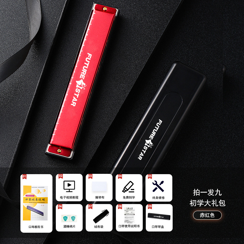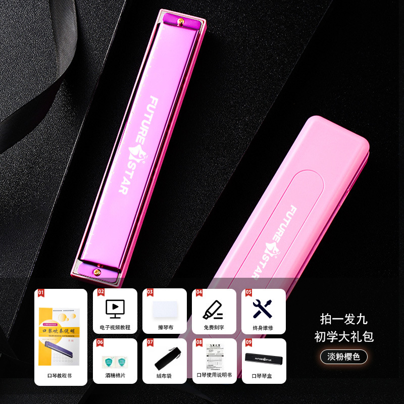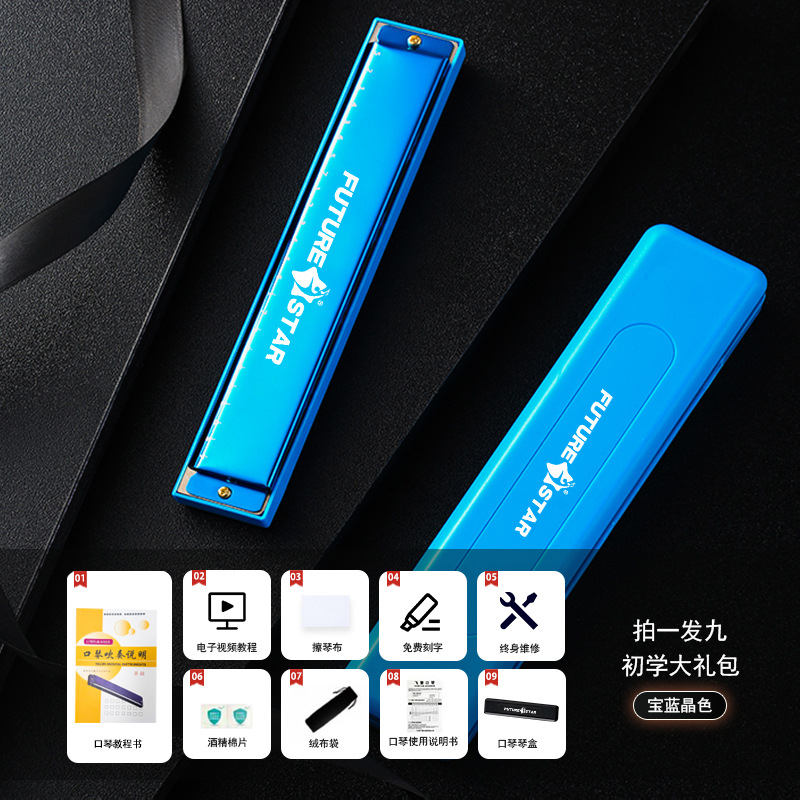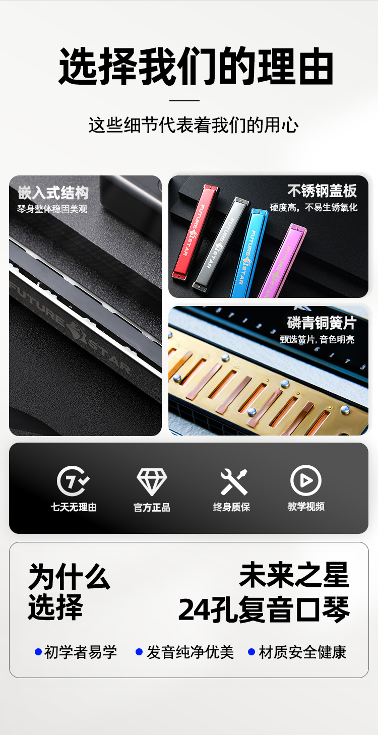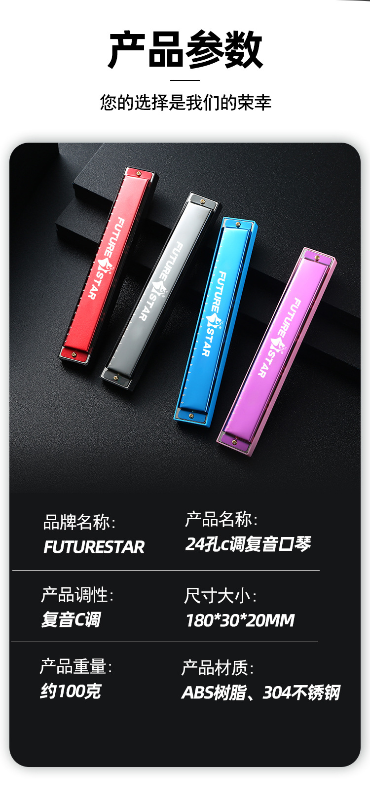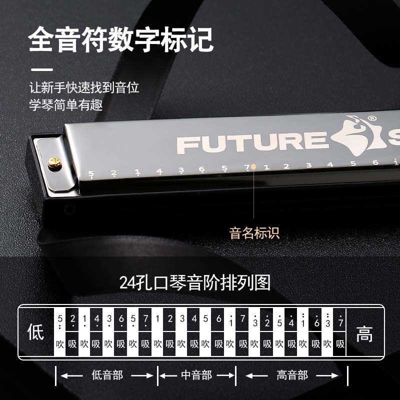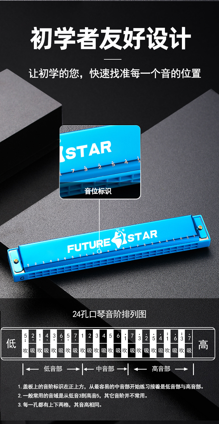 批发未来星24孔钛金口琴专业演奏初学者入门学生儿童乐器口琴