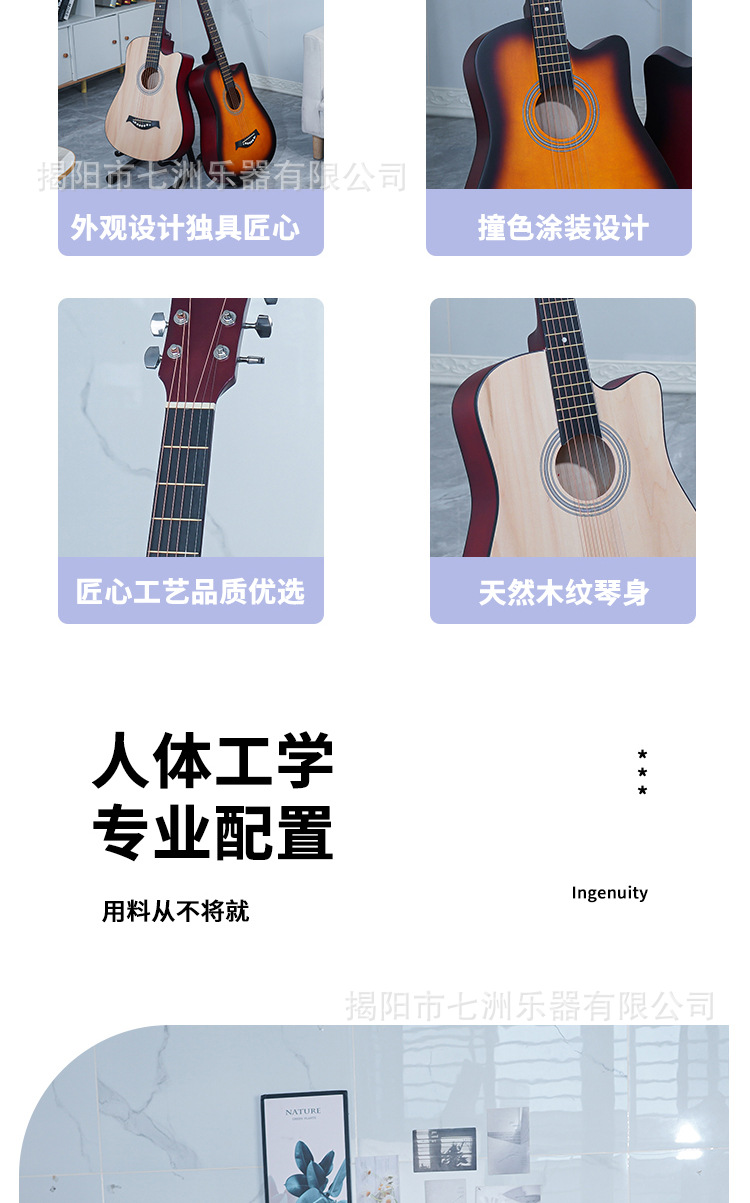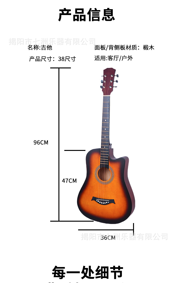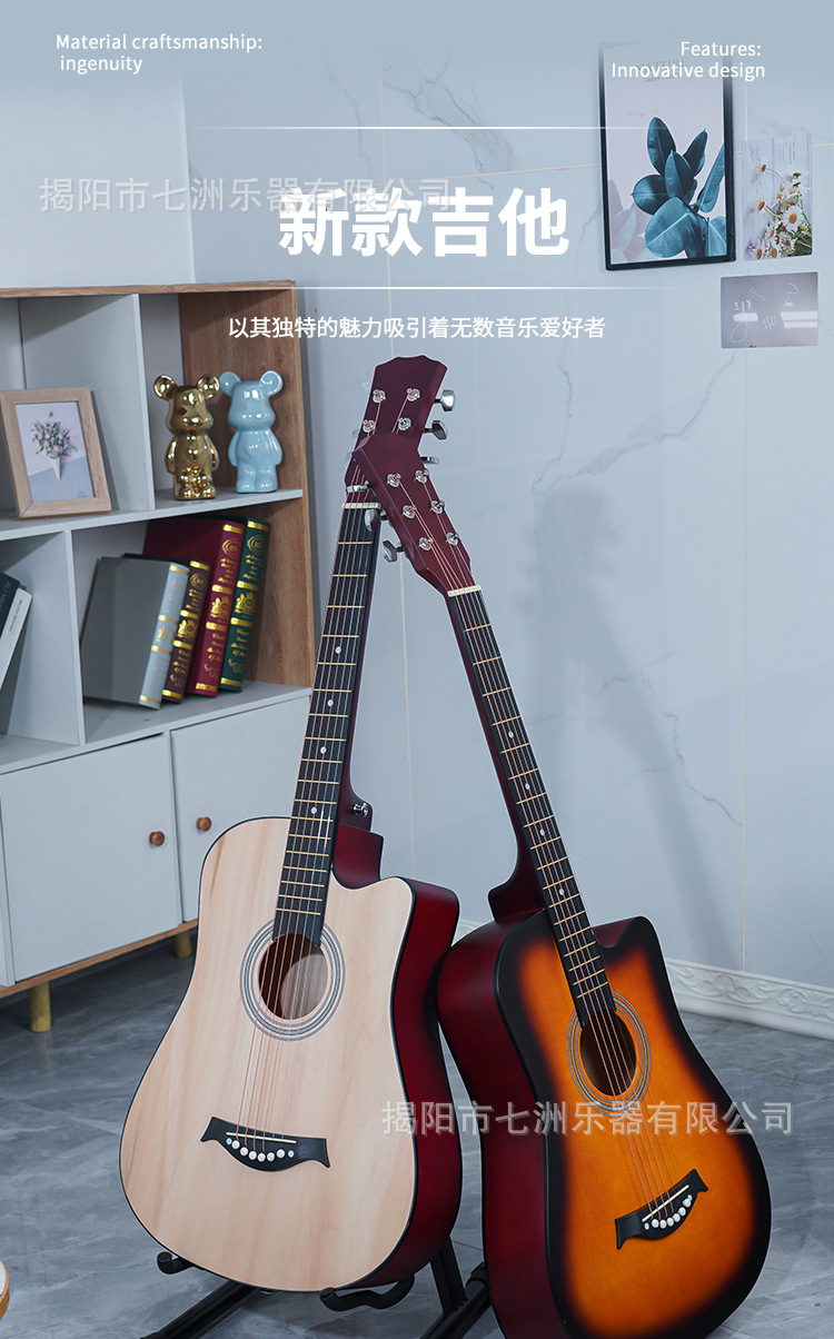 吉他批发38寸大量现货民谣吉他初学者缺角练习琴入门普及练习琴