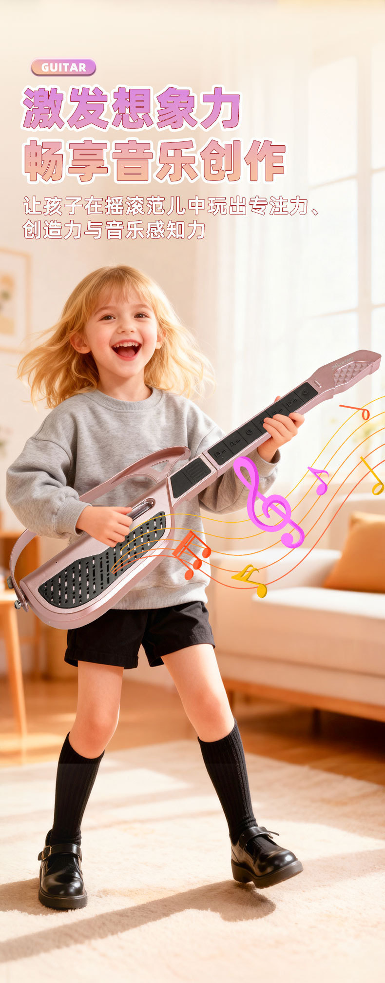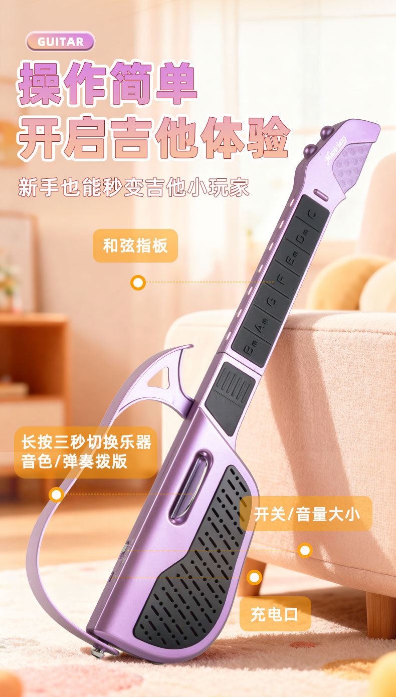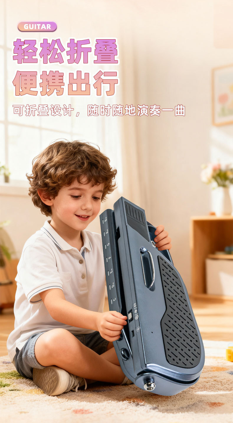 新款可折叠电子无弦吉他智能伴奏自动挡弹唱新手儿童吉他乐器玩具
