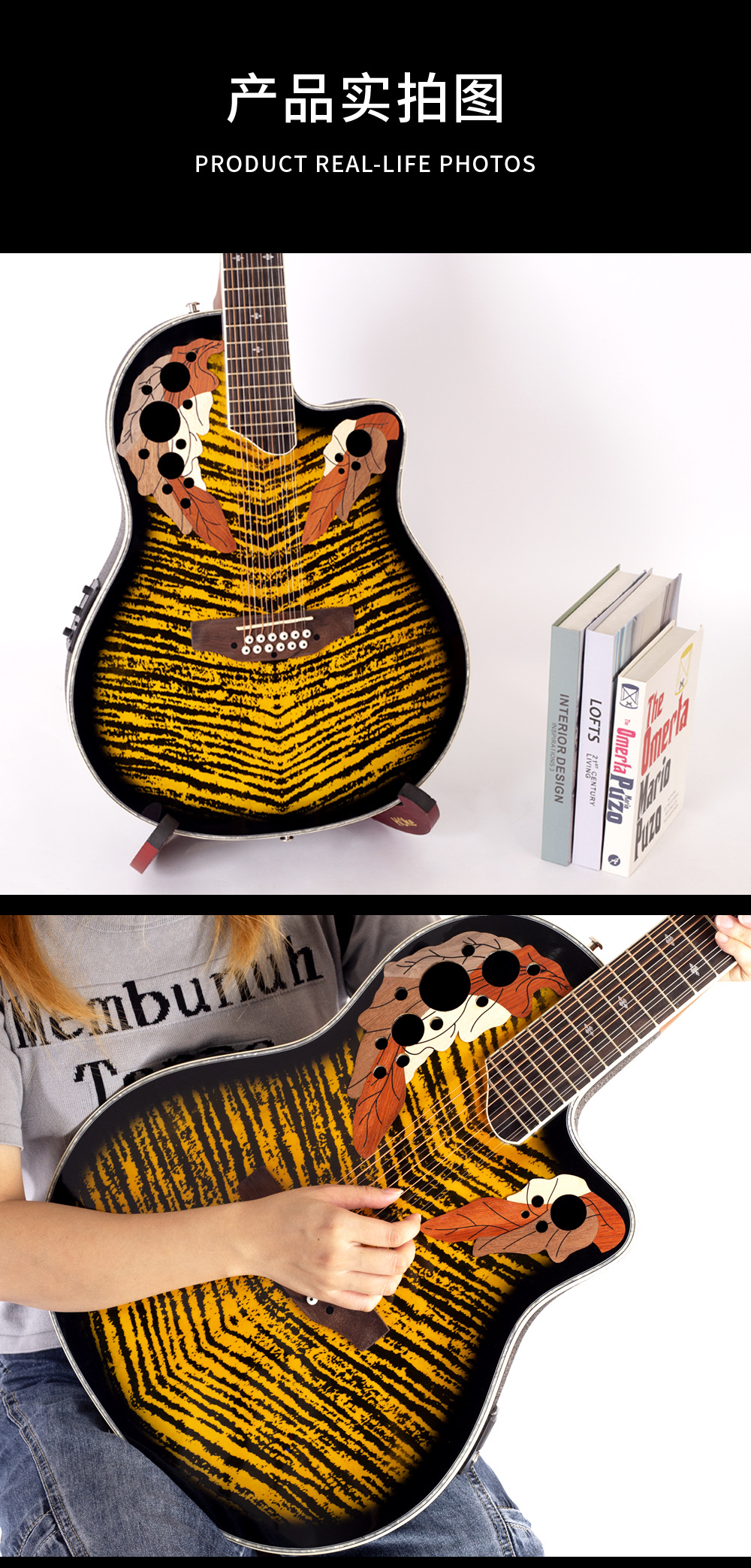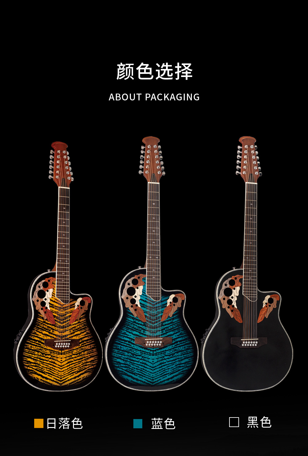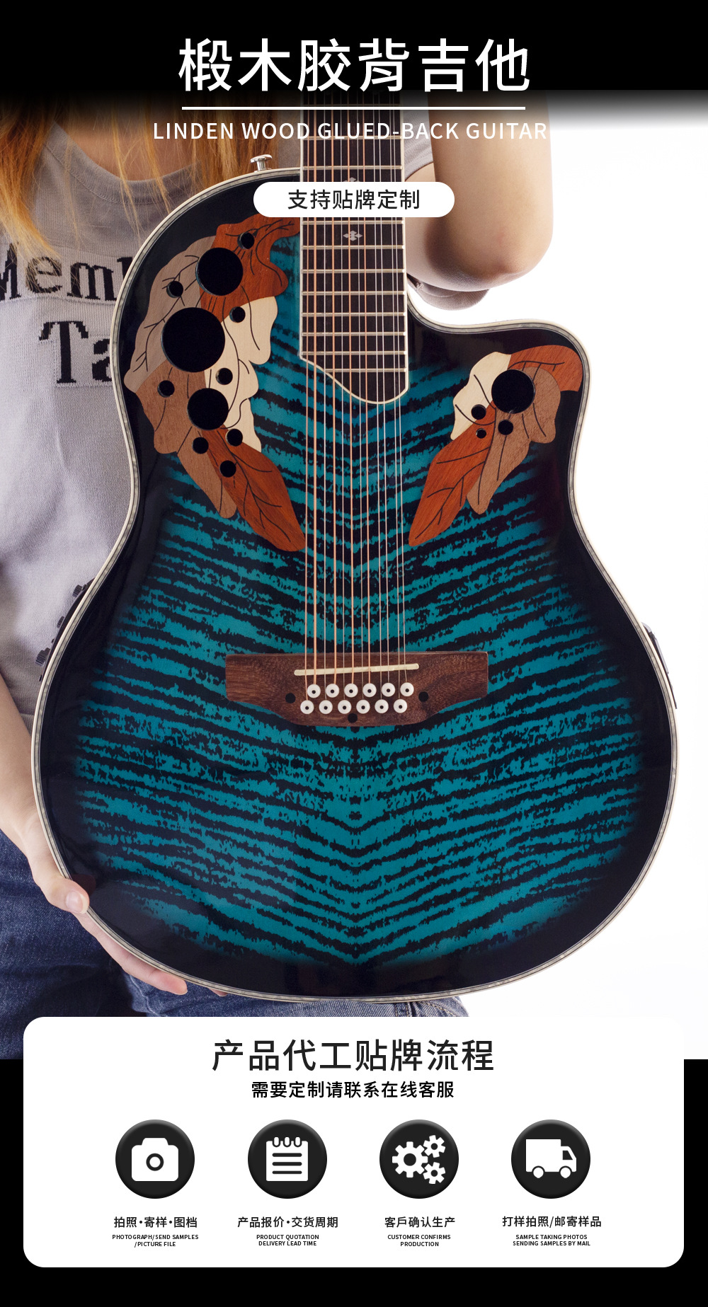 41寸12弦胶背民谣吉他云杉面板椴木面板电箱吉他 带拾音器EQ jita