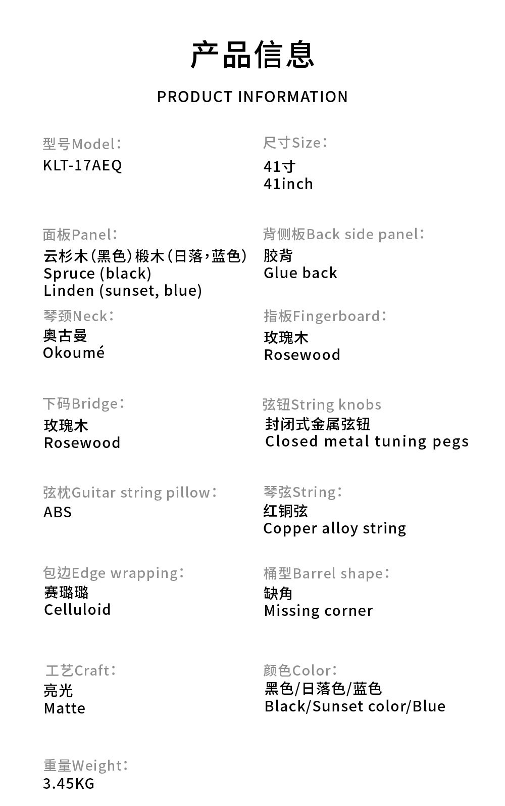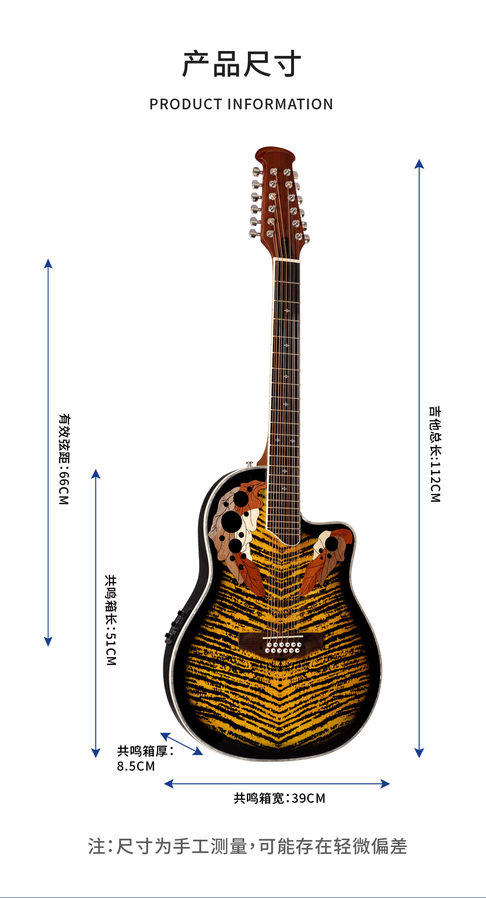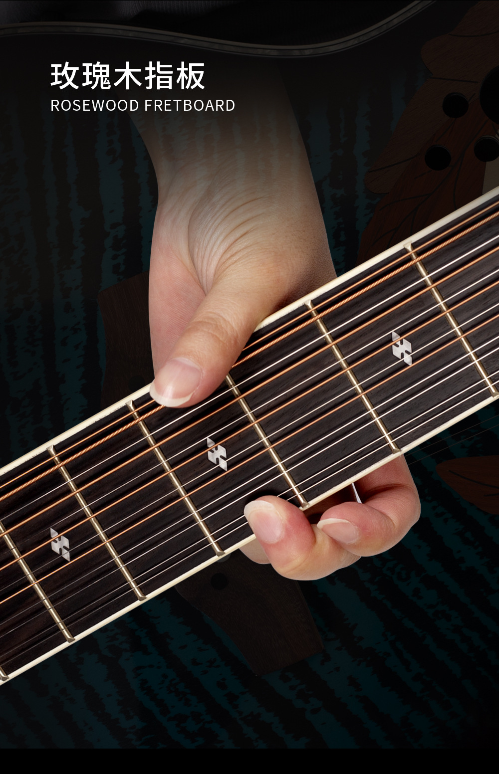 41寸12弦胶背民谣吉他云杉面板椴木面板电箱吉他 带拾音器EQ jita